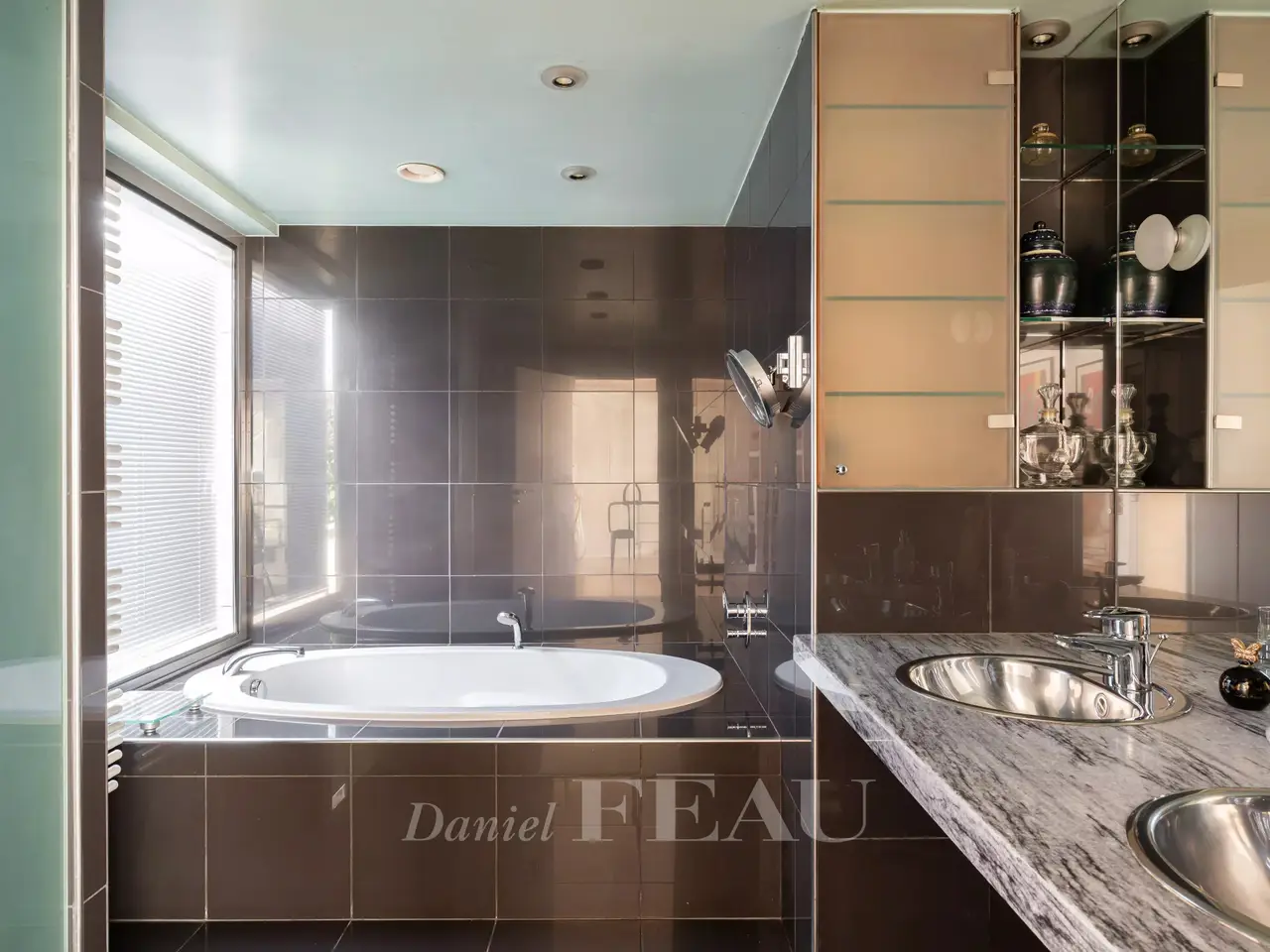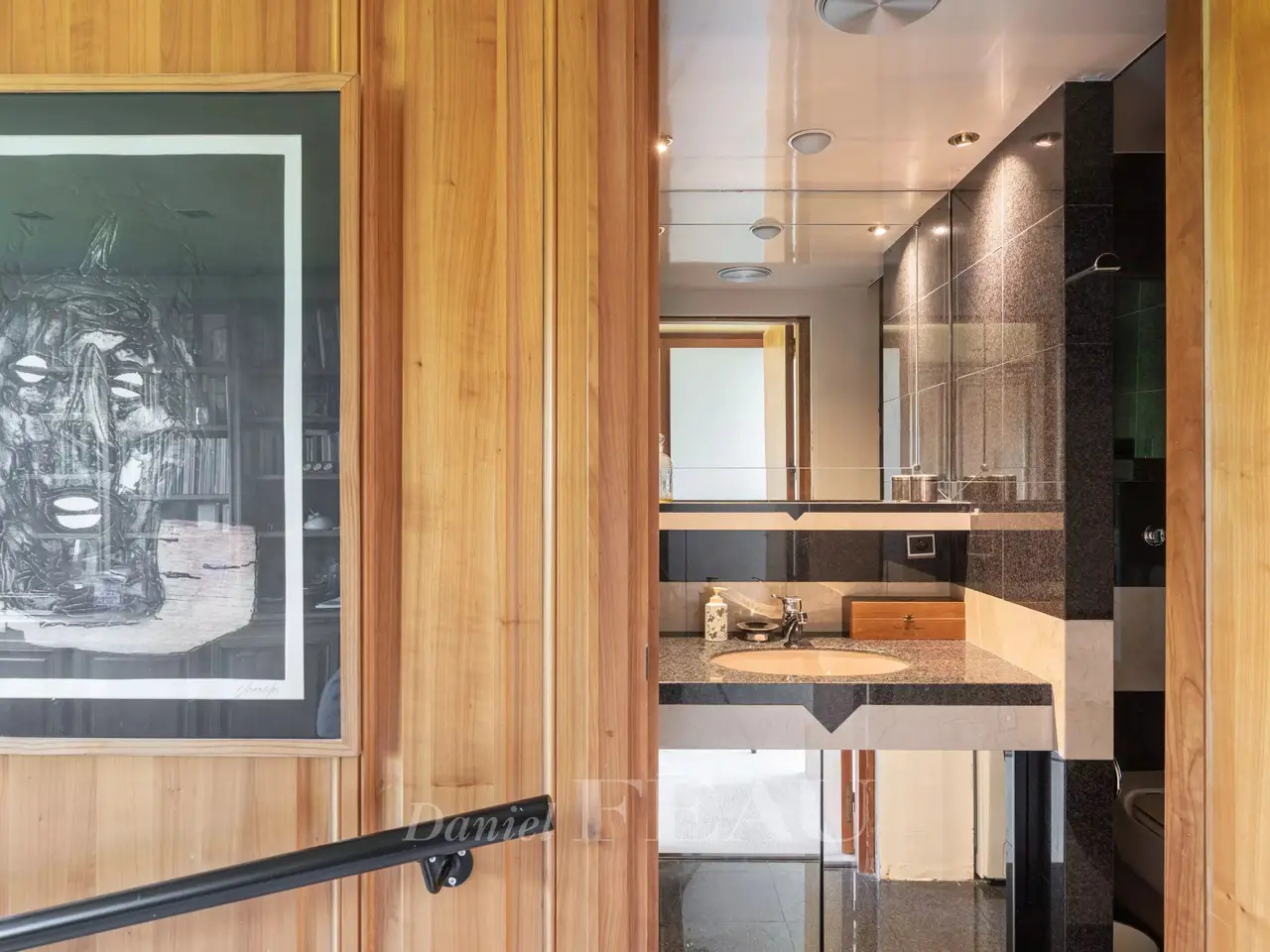 Perronet neighbourhood. This bright and peaceful apartment on the top two floors of a recent building near the shops and schools enjoys open views. It includes a living/reception room and dining room opening onto an 18 sqm terrace, a kitchen, a master suite with a bathroom and two dressing rooms, a bedroom with a shower room/wc, and a guest wc. Upstairs are a possible third bedroom with a mezzanine opening onto two 18 and 48 sqm terraces, and a bathroom/wc. With two parking spaces and two cellars. Renovation is required to exploit the full potential.