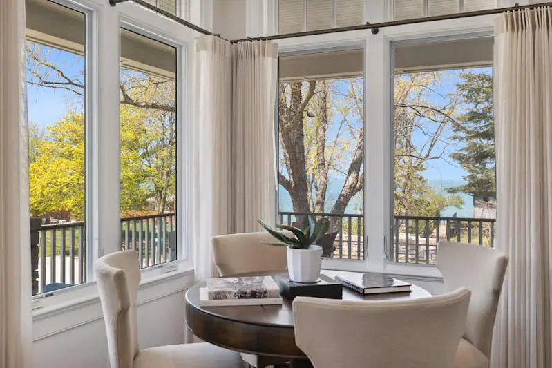 Combining luxurious living with breathtaking natural beauty nestled on the shores of Lake Michigan, this stunning estate boasts a custom built four bedroom main house and a separate three bedroom guest house, offering unparalleled comfort and privacy for you and your guests. Every inch of this immaculately appointed estate has been thoughtfully curated, expertly designed and constructed to the highest standards of luxury and sophistication. This world-class home spans more than 10,000 square feet. The custom design and attention to detail are evident throughout; high ceilings, elegant finishes, and an abundance of natural light that pours in through large windows, providing dramatic views of the lake. The custom Boilini pool, gardens, and guest house add to the charm of this elegant Grand Beach estate. The main house boasts four generous bedrooms, each offering a private sanctuary for rest and rejuvenation, a full private gym, a lakeside office, and two gorgeously appointed laundry rooms. The master suite is a true oasis, complete with a luxurious en suite bathroom, and walk-in closet. Each room of this special home shines in unparalleled Lake Michigan sunsets. The heart of the home is a chef's dream kitchen, featuring top-of-the-line appliances, a spacious center island, and ample counter and storage space. Whether you're preparing a casual meal or hosting a lavish dinner party, this kitchen will exceed your expectations. Adjacent to the kitchen is a sophisticated dining area, perfect for enjoying intimate meals with family and friends. The adjoining living room offers a cozy fireplace and comfortable seating, creating an inviting space to relax and unwind. The spacious office looks out to the lake, and is beautifully appointed with built-ins throughout. The outdoor space is equally impressive, with custom-designed Boilini pool that serves as the centerpiece of the meticulously landscaped grounds. Dive into the refreshing waters or simply lounge poolside, enjoying the warm sun and gentle breezes. Entertain guests with ease hosting unforgettable gatherings against the backdrop of the tranquil lake. The guest house is a true gem, offering three well-appointed bedrooms, two wet bars, two full baths, gaming area, and private laundry facilities. Your guests will relish in the privacy and comfort provided by this separate dwelling, creating a memorable and enjoyable experience for all. Sun Valley Falls offers more than just a home; it offers a lifestyle. Situated in the friendly Lake Michigan community of Grand Beach, just an hour outside of Chicago, this property provides an idyllic setting to embrace all that Lake Michigan living has to offer. Don't miss the opportunity to own this extraordinary estate, where luxury, comfort, and natural beauty converge. Contact us today to schedule a private viewing and experience the magic of Sun Valley Falls for yourself.