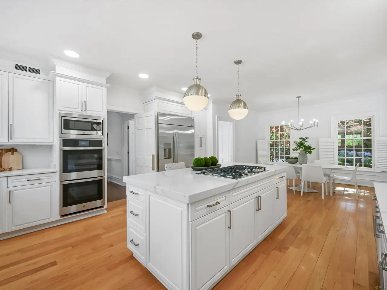 Nestled at the end of a private lane and set on 4.4 beautifully landscaped acres, this stunning brick colonial-crafted by award-winning builder Kaali-Nagy-offers nearly 7,000 square feet of luxurious living space. A dramatic three-story entryway fills the home with natural light, leading into a formal living room with a fireplace and French doors. A richly paneled office tucked just behind the living room includes built-ins, a wet bar and a second fireplace, creating the perfect work-from-home retreat. Designed for entertaining, the sprawling dining room easily accommodates large gatherings and opens onto a spacious deck overlooking spectacular grounds filled with specimen trees and a designated play area. The newly renovated chef's kitchen features quartz countertops, top-tier appliances, a large island, and a sunlit eat-in area. The adjacent family room showcases a vaulted ceiling, a floor-to-ceiling fieldstone fireplace, and French doors that open to the tranquil exterior. Upstairs, the expansive primary suite boasts its own fireplace, a brand-new spa-like bathroom with a soaking tub, oversized walk-in shower, and dual walk-in closets. Four additional en-suite bedrooms, all with brands new bathrooms, provide ample space for family and guests. A vaulted-ceiling bonus room, a cozy game room, and a second office or exercise space offer flexibility for every lifestyle. An area off the bonus room could easily be transformed into an ideal au-pair or guest suite. Located within walking distance to St. Luke's School and less than 10 minutes to the heart of town with its charming shops and restaurants, this home offers the perfect blend of privacy, tranquility, luxury, and convenience. Truly a special opportunity to own an exceptional property. Pool Design in Documents.