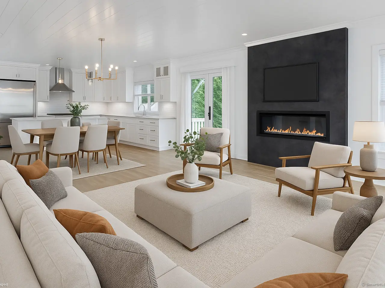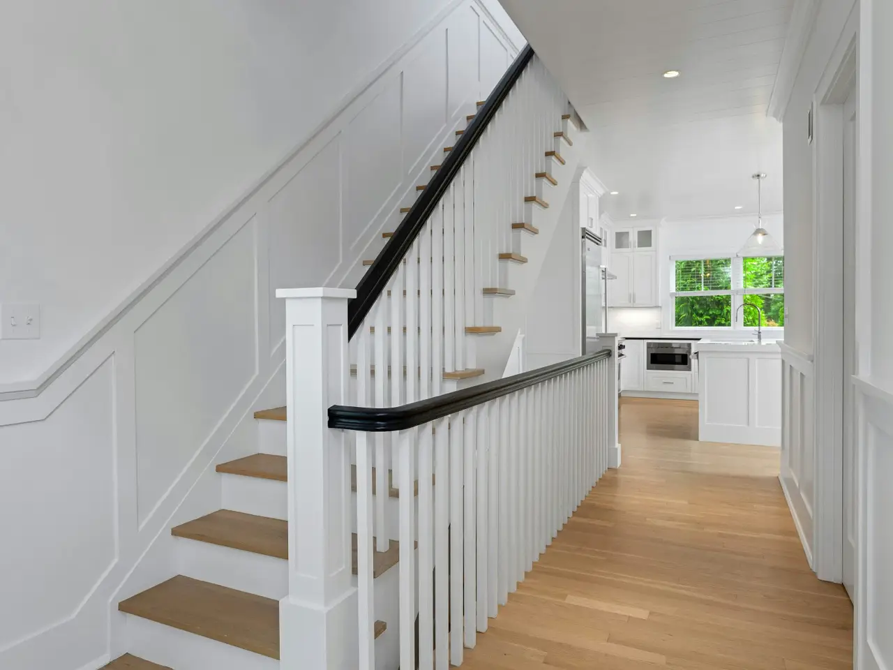 Set just blocks from grocery stores, shops, restaurants, and the train, this 5-bedroom, 4.5-bath home offers more than 4,200 sq. ft. across 4 finished levels with an elevator. The build quality shows in every detail: wide-plank hardwood floors, high ceilings, custom millwork, and oversized windows that flood each room with light. The main level centers on a bright kitchen with large island, stainless appliances, and open flow into the family room with fireplace and backyard access. Sliding barn doors open to a flexible living space, while a front office provides privacy for work or study. Upstairs, the primary suite features a walk-in closet with built-in shelving and a bath with soaking tub, along with 2 additional bedrooms, a full bath, and laundry. The 3rd floor adds a vaulted playroom and another bedroom with bath. The lower level includes a 5th bedroom, full bath, and a tiled mudroom with custom built-ins. A fully fenced yard and stone patio complete this in-town property, offering both quality and proximity to everything New Canaan has to offer.