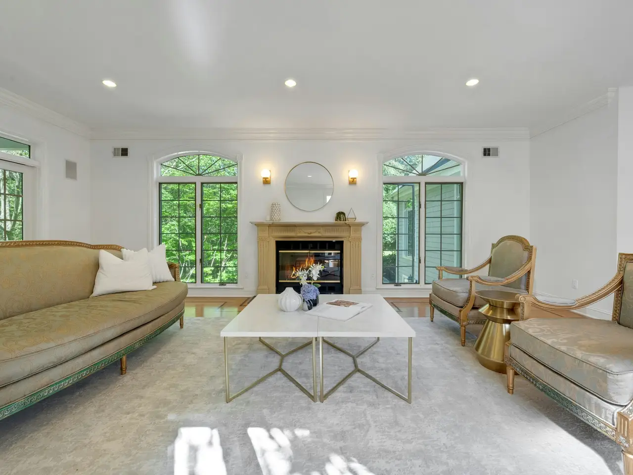 This exceptional custom-built home is ready for its next owner! Inside, freshly painted interiors highlight soaring ceilings, sun-drenched spaces, & generously proportioned rooms. The custom kitchen by Deane flows into a windowed circular breakfast nook, and connects to the cozy family room with fireplace. Formal living and dining rooms both open out to bluestone patios for seamless indoor-outdoor entertaining. A wood-paneled study, two powder rooms, laundry room, and a flexible office or first-floor bedroom complete the main level. Up the grand staircase, the oversized primary suite is a true sanctuary with dual bathrooms and three custom walk-in closets. Four additional bedrooms and three full bathrooms provide comfort and space for family or guests. The walk-out lower level has a brand-new sauna and Himalayan salt room, alongside expansive areas for a gym, playroom, or media lounge. Privately tucked on a quiet cul-de-sac just minutes from Metro-North and downtown New Canaan, 39 Running Brook Lane offers a rare combination of luxury, convenience, and comfort.