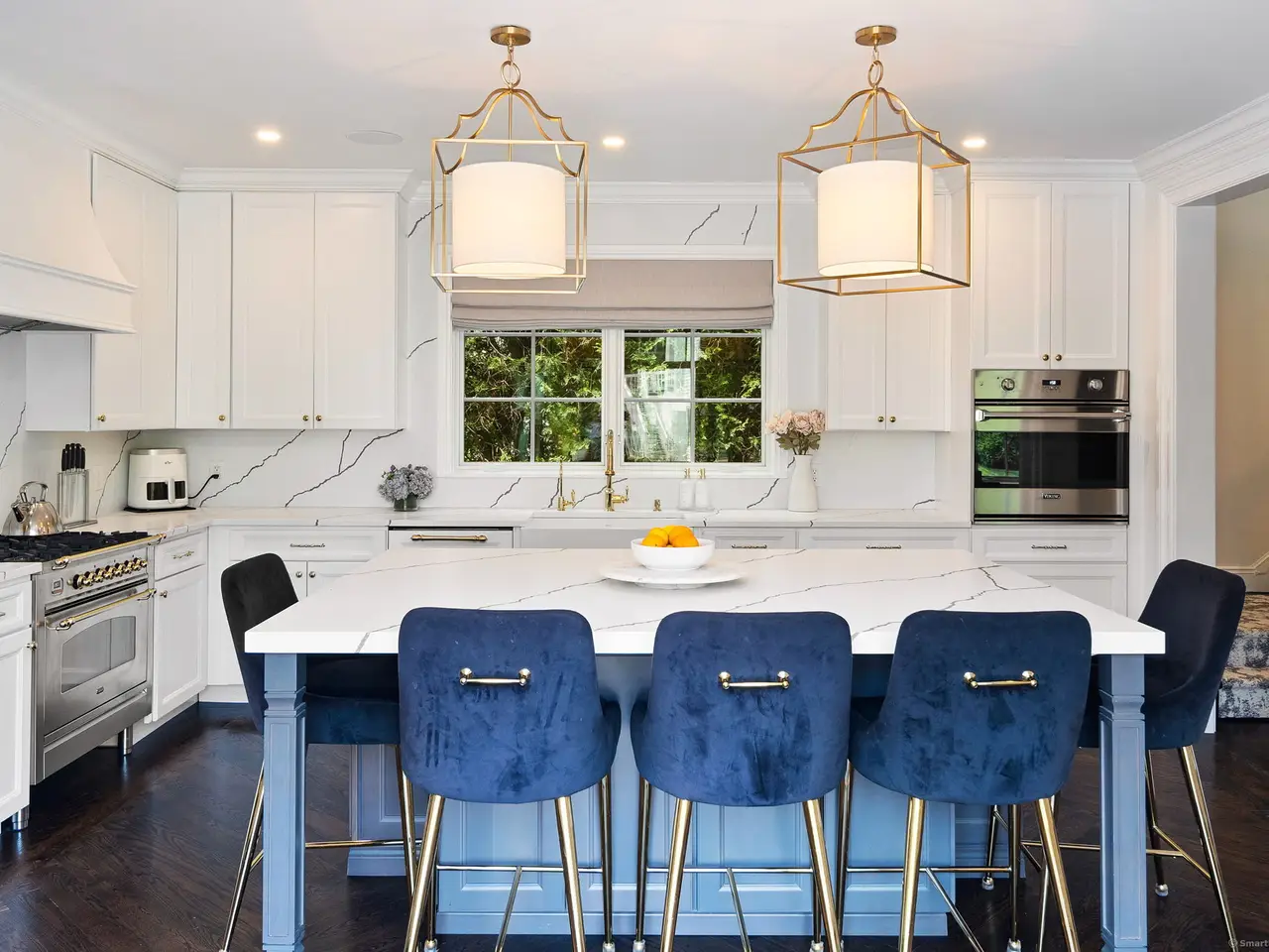 Luxury In-Town Living! Discover timeless elegance and modern ease in this beautiful, fully-renovated Colonial home, just steps from the heart of downtown New Canaan. With six bedrooms and five baths (three full and two half baths) across three impeccably finished levels, this home offers the perfect blend of comfort, style, and sophistication. Renovations by SOHO Group Architectural Design, completed in 2022. The Gourmet Kitchen features an oversized quartzite island and top-tier appliances, flowing effortlessly into a welcoming family room. A grand dining room and elegant living room with a charming fireplace provide the ideal setting for both everyday living and memorable entertaining- infused with warmth, character, and classic appeal. Full architectural plans available upon request. Possible pool site/back garden area, needs Town approval. Five bedrooms on second floor, one bedroom on main floor, currently used as an office.