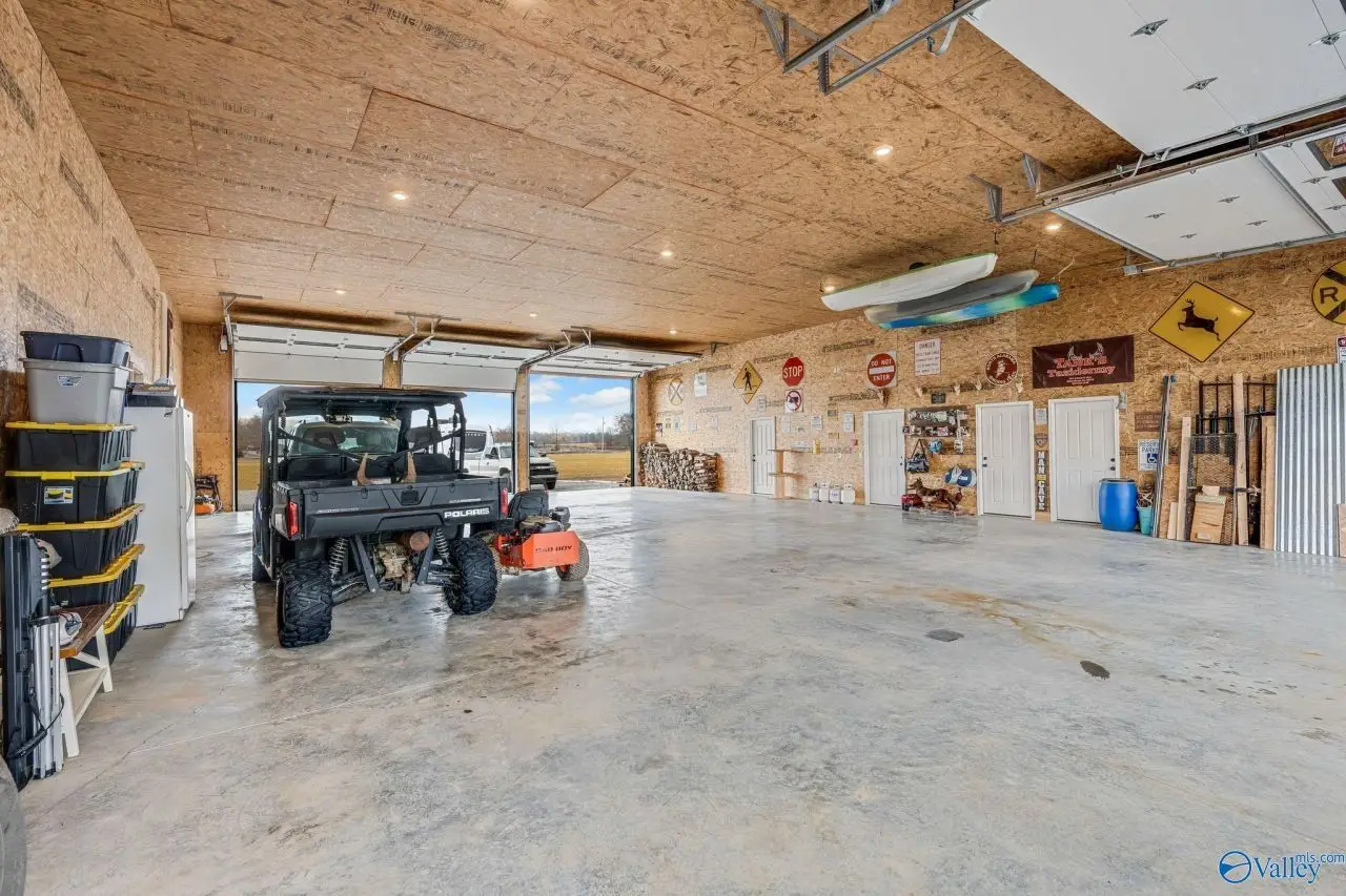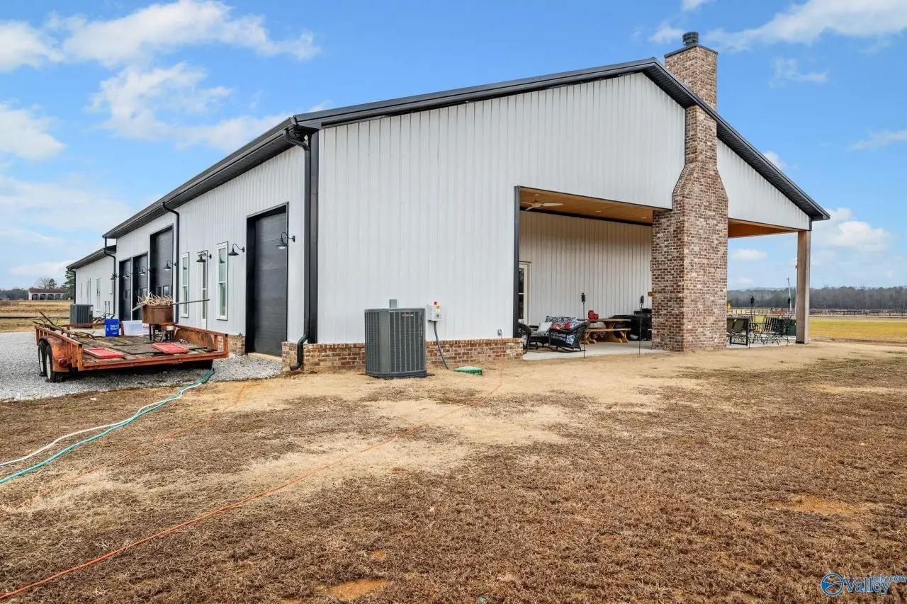 This stunning custom-built barndominium offers the perfect blend of rustic charm and modern luxury. Featuring 4 bedrooms, 5 baths, and a versatile floor plan, this home boasts custom woodwork throughout, a spacious master suite with a large walk-in closet and bathroom, and an office. The open-concept living area centers around a double-sided fireplace and a large island, ideal for entertaining. The 2,500 sq. ft. 6-door shop includes a workshop with a garage door. Enjoy outdoor living with a cozy patio fireplace.
