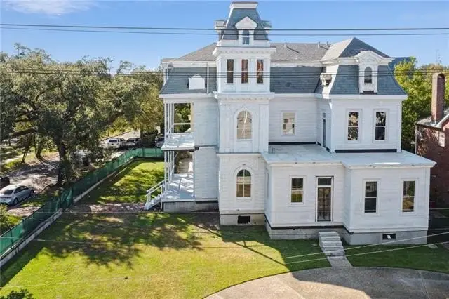 Own a piece of history on iconic St. Charles Avenue. Exterior now 70% complete. Remaining exterior elements have been mapped out for completion, with an available plan in place. Built in 1866, the Aldrich Genella House is an architectural gem. Originally a Greek Revival double gallery, the home was modified in 1878 with a third floor mansard roof and staircase tower. It is now considered one of finest residential examples of Second Empire style architecture in the South. Nestled on an oversized corner lot on St. Charles Avenue and Bourdeaux Street, with 127 feet of frontage, the gated grounds feature parking for several cars, a pool, and 200 square foot pool house. The foundation, roof and much of the exterior have been meticulously restored, including hand-crafted millwork featuring cypress & Spanish cedar. The interior, with an open/ modern floor plan, offers a blank slate for your own luxury finishes. Featuring: A jaw dropping 41ft. center hall entry, with exquisite archway moldings & medallions, a one-of-a-kind staircase, 3 flexible living areas, marble & mahogany mantels & soaring 13ft ceilings throughout. The Second floor features the primary suite, 3 additional bedrooms, a large front gallery, & a flat roof outdoor patio. The third floor is wood-cladded, with space for a den, guest room/ office plus 4th bathroom. The tower presents a very special observation room, with treetop views. A truly unique opportunity awaits you. Note: This is a renovation project.