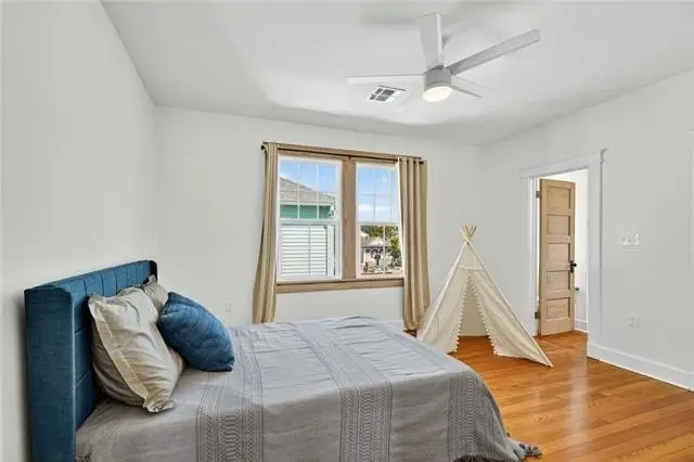Set along the picturesque Bayou St. John, this fully restored historic two story bungalow was completely renovated and expanded in 2025, seamlessly blending classic architectural character with modern design. The open-concept first floor offers two light-filled living areas and a spacious kitchen with quartz countertops, stainless steel appliances, gas range, and a large center island with deep storage drawers. A downstairs bedroom with full bath is ideal for guests or use as a den. Upstairs, three additional bedrooms each feature en suite baths and walk-in closets. The expansive primary suite boasts two large walk-in closets, a luxurious bath with soaking tub, walk-in shower, and floating double vanity, as well as a full-width balcony with sweeping bayou views. Throughout the home, antique reclaimed wood floors, solid wood doors, and detailed millwork reflect exceptional craftsmanship. Additional features include a dedicated laundry room with custom cabinetry, rear deck, rebuilt garage that doubles as an entertaining space, fully fenced backyard, Hardie Plank siding, updated mechanicals, and a three-year-old roof. Located in coveted flood zone X with affordable insurance, this property offers a vibrant lifestyle right outside your door—with weekly yoga, volleyball, farmers markets, and festivals like Bayou Boogaloo and Jazz Fest just steps away. The nearby Lafitte Greenway provides easy access to the French Quarter and beyond. A rare opportunity to own a spacious, thoughtfully designed home in a prime bayou location at an excellent value.