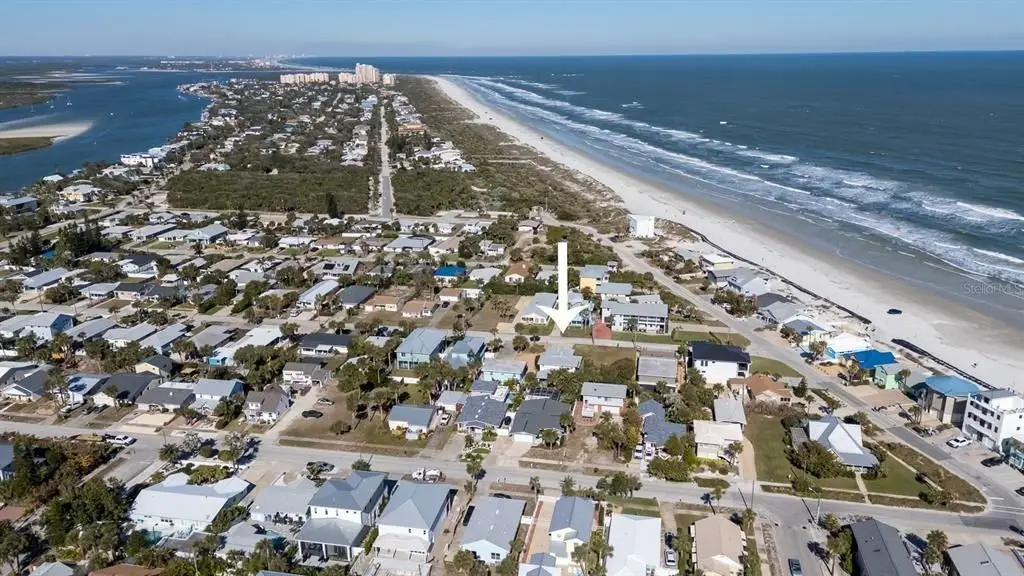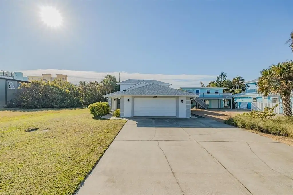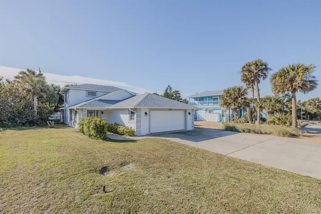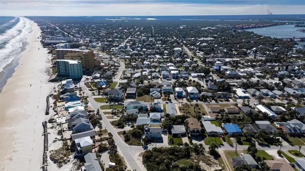 Discover coastal living at its finest in this immaculate 3BR/2.5BA home, perfectly located just 5 houses from the beach & only 8 blocks to vibrant Flagler Avenue shops & restaurants. Beautifully maintained modern home has an open floorplan with vaulted ceilings & an inviting atmosphere for entertaining or relaxing. Built in 1998, one of the spacious bedrooms is downstairs & is large enough to be a master BR. It features wood floors & a gorgeous bath with tiled shower & two vanities. This bedroom has a door to the expansive rear lanai which has a cozy wood laminate ceiling & a beautiful tiled floor. Private outdoor shower & fenced back yard add to the desirability of this fabulous home. Upstairs you'll find the master bedroom, a luxurious tiled bath and another spacious bedroom. Upgrades include newer roof & water heater in 2021, newer A/C units & both drywood & subterranean termite bonds. Current tenant will consider staying through end of July. Whether you're seeking a permanent residence or a vacation retreat, this home combines elegance, comfort & an unbeatable location!