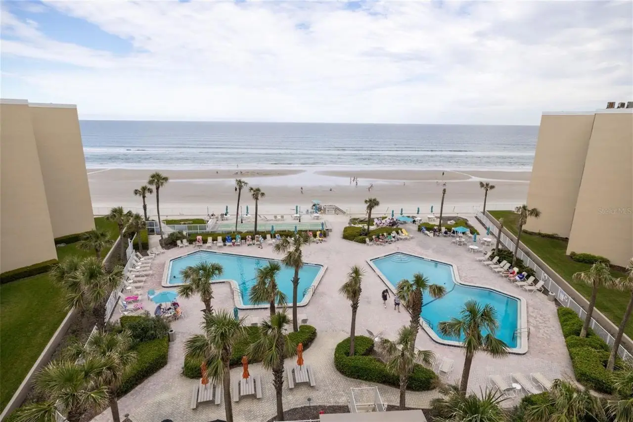 Spectacular oceanfront condo at the very popular Pelican condo situated on the top 6th floor. Beautifully remodeled & tastefully furnished in 2022, this move-in ready beach retreat features 2 bedrooms, 2 baths plus a bonus den or 3rd bedroom. Direct oceanfront balcony provides gorgeous views overlooking two pavered pools, courtyard & the sparkling Atlantic ocean! Entertaining is easy in this gourmet kitchen with breakfast bar, quartz counters, new appliances, plumbing & lighting. This light & bright condo has an open floorplan & was completely remodeled in 2022, including new hurricane rated windows & doors, new plumbing, new electrical panel & wiring, new HVAC, new washer/dryer & new tiled floors. Decorator finishes include new custom milled white washed nickel gap shiplap siding on all ceilings & accent walls, plantation shutters. Both bathrooms feature quartz countertops with vessel sinks & tiled step-in showers. The bonus room, den, 3rd BR has a pocket door & attractive trundle bed. The Pelican had major building renovations in 2022, which included concrete restoration, new balconies & railings, new windows, new roof, new deck coatings, new waterproofing and paint, and new pool furniture & seawall. This tropical paradise resort includes two oceanfront pools surrounded by beautiful pavered decks, lots of tables & chairs, 2 shuffleboard cts, 2 gas grills & a private gated walkway to the beach. Well maintained & managed, this condo can be your forever home or rental investment since they do allow weekly rentals! They are pet friendly, allowing 2 pets ups to 80 lbs total. Conveniently located close to a grocery store, The Bakers Table & Touch of Italy, Restaurants, Nautilus Fitness, salon & a short walk or bike ride to Publix, Bealls, BBQ & Off the Hook. Only a couple of miles to historic Flagler Ave. Bistros & Shops, where you can enjoy wine tastings, art shows & good music too! Watch spectacular sunrises, sunsets & space launches from this immaculate furnished condo! Just bring your bathing suit & your toothbrush & enjoy the Florida lifestyle you deserve!