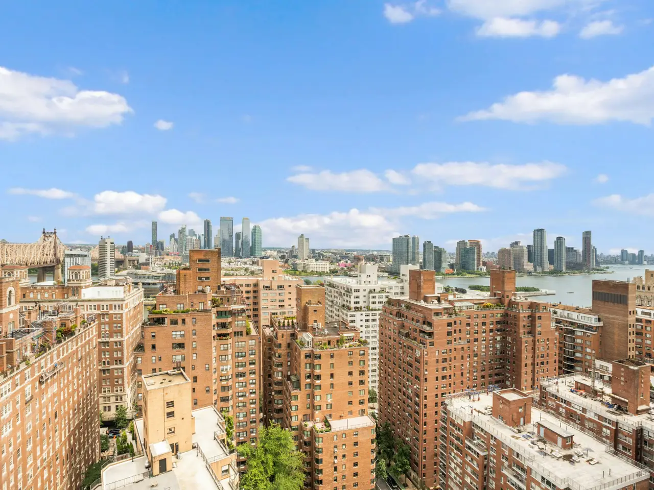 Welcome to Residence 26L at Plaza 400 - A Bright and Expansive Corner Home with City and River Views Step into this stunning, nearly 1,500 square foot two-bedroom, two-bathroom residence perched high on the 26th floor, where open skies and sweeping river and city views surround you from three exposures. A private balcony invites you to soak in the sun or unwind with a glass of wine as the skyline unfolds before you. This sun-drenched home features an expansive and flexible layout with a grand living room that easily accommodates a separate formal dining area or the opportunity to create a windowed eat-in kitchen while still maintaining a generous dining space. Perfect for entertaining or simply living in comfort and style. The king-sized bedrooms are thoughtfully split for optimal privacy and share no adjoining walls with neighboring units, offering exceptional tranquility. The primary suite boasts direct river views, a windowed en-suite bath, and a linen closet for added convenience. Storage abounds with seven oversized closets, including three walk-ins and a spacious 6" x 11" entry foyer. Lovely parquet floors run throughout the home, and a discreet service entrance adds to the functionality of this elegant layout. Plaza 400 is a prestigious, white-glove, self-managed cooperative in the heart of Sutton Place, a stroll away from the beautiful East Midtown Waterfront Esplanade . Amenities are truly top-tier: - A newly renovated Sky Top Lounge - Heated rooftop pool with panoramic views - Children's playroom on the penthouse level - Fully equipped fitness center with yoga studio - Professional-grade laundry facilities - Storage and bike rooms - Concierge, 24-hour doorman, on-site security, management and live-in super - Parking garage with discounted rates for residents Pet-friendly Plaza 400 allows pieds-à-terre, co-purchasing, guarantors, and parents buying for children. Maintenance includes all utilities, and subletting is permitted after three years of residency (for up to three out of every five years, with board approval). Up to 70% financing allowed. 2% flip tax payable by the Buyer. With its elegant circular driveway, stately lobby, and unmatched amenities, Plaza 400 is a standout in Sutton Place. Just moments from the East River Esplanade, Trader Joe's, Whole Foods, top restaurants, and multiple subway and bus lines, this home offers the very best of Manhattan living. Residence 26L is not just a home, it's a lifestyle. Come experience it for yourself.