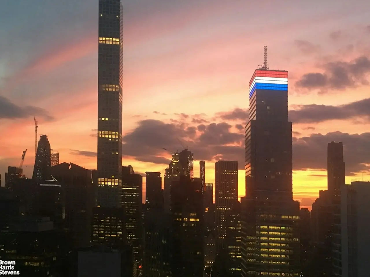 Perfection is the only way to describe this apartment! It is absolutely gorgeous and combines magnificent design with practical utility. It overlooks all of New York City from the 46th floor. One sees North past the George Washington Bridge, West over all of Central Park, East over the East River, Park and South toward the Chrysler Building and the Freedom Tower. The apartment was designed by a well known architect who created walls and woodwork to resemble the skyscrapers of New York City. When the lights are on, the glass within the wood portrays windows and one feels as if they are peering into the hidden life of the City. The beautiful plank floors and sparkling counter tops are a joy to observe. The apartment consists of a huge Living Room, Dining Room, Primary Bedroom and Den with sliding doors. When they are closed a large 2nd Bedroom is created. There are 2.5 gorgeous Bathrooms, a huge open Kitchen, a Washer/Dryer and new soundproof picture windows. The Central A/C is hidden within beautifully designed cabinets. The large Terrace faces Northeast and is quite usable. It is located on Billionaire''s Row, public transportation, wonderful shopping and luxury living. The building has 24 hour concierges and doormen. There is a 20,000 square foot Spa with classes, trainers and an indoor/outdoor salt water Pool and a 24 hour Garage. Pets and pied a terres are allowed.