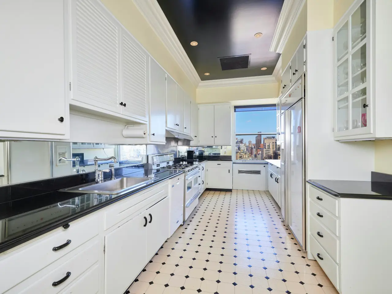 Grand, sun-flooded 3 bedroom residence with soaring 10+ foot ceilings and panoramic skyline views of Park Avenue and beyond -- reaching all the way to the East River. This elegant home is abound with classic pre-war details featuring: crown, dental and chair rail moldings, beautiful herringbone floors, oversized windows and copious closet space. One enters from the semi-private elevator landing into a stately formal entry gallery where a paneled archway leads to the 27-foot, expansive corner living room, with multiple seating areas and a marble-mantled gas fireplace. The traditional formal dining room is accessed from the living room through pocket doors, making this sublime home perfect for large or intimate entertaining. Off the dining room is a spacious windowed kitchen with glass-front cabinets and granite countertops replete with a sizeable walk-in pantry. On the far side of the gallery is the well-appointed library lined with custom bookcases, built-ins and a charming dry bar. The shared en-suite bath connects to the spacious second bedroom with light-filled Eastern views. A long, private hallway lined with mirrored floor-to-ceiling wardrobes accesses the enormous corner primary bedroom with walk-in closet and a luxurious en-suite bath. There is central air in the public rooms and a basement storage unit is included. Can be combined with neighboring apartment 16AE to create a full floor residence. Built in 1917 by renowned architect J.E.R. Carpenter, 550 Park Avenue is one of the City's premier, full-service co-ops in close proximity to Central Park and the best shops and restaurants. Washer/Dryer and pets allowed. Up to 50% financing is permitted and a 3% flip tax is paid by the purchaser.