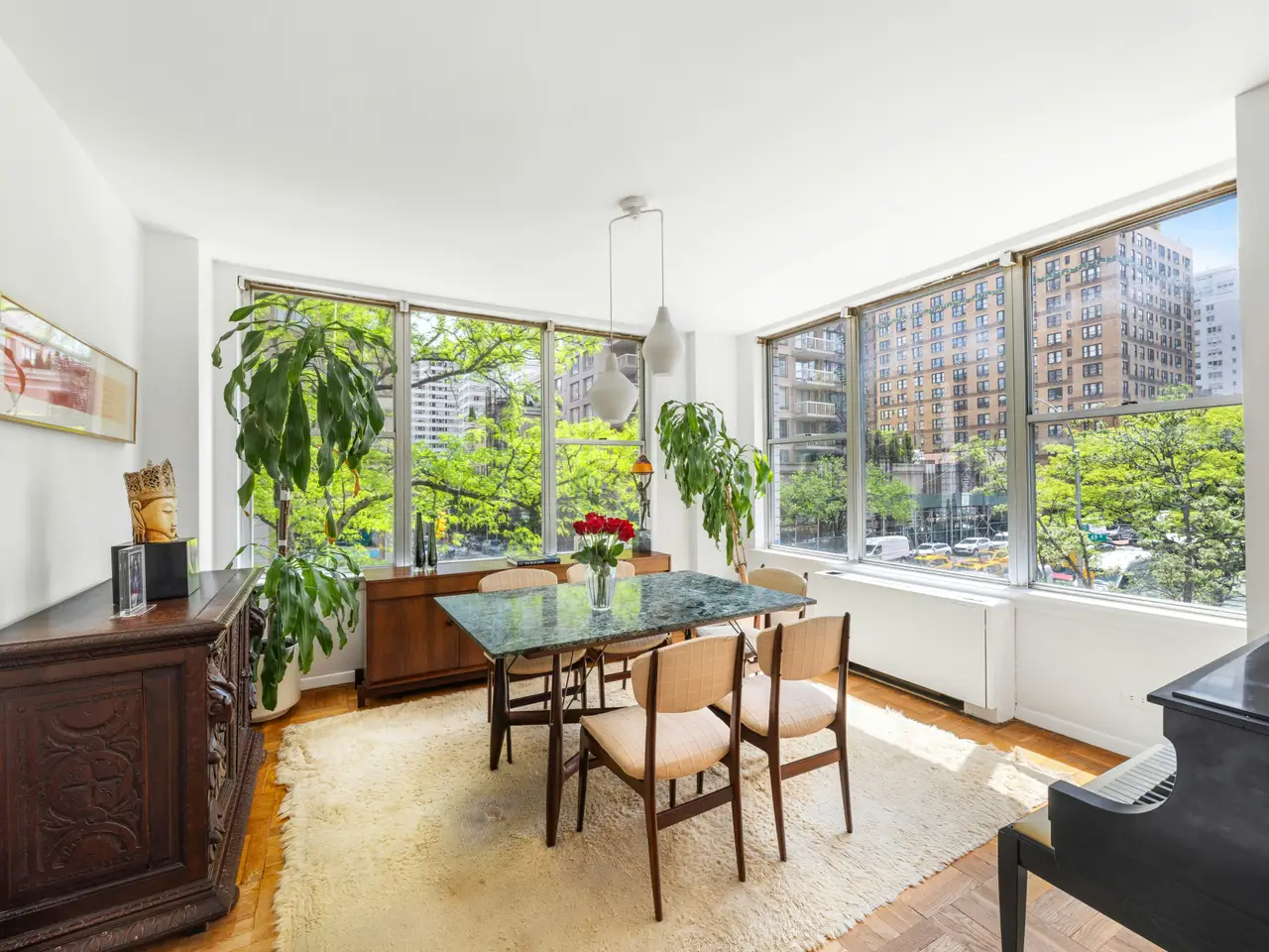 Spacious 2 bedroom/2 bathroom with oversized windows and the prettiest tree top views in the heart of the Upper East Side. This corner unit is one of the most coveted lines in the building since it offers a desirable split bedroom layout and a separate windowed dining area that can easily be converted to a library/den. Other details include sunny southern exposures, an abundance of closets and a windowed kitchen. Built in 1961, 169 East 69th Street is a full-service building with a 24-hour doorman and a gym, playroom, bike room and on-site laundry room. This desirable location is only 4 blocks from Central Park and close to many of the Upper East Side's finest restaurants and shops as well as the new Whole Foods, Ouri's Market and all major transportation including the 6 & Q subway lines. Please note, dogs aren't allowed, the building permits up to 50% financing and pied-a-terres are permitted on a case by case basis. Maintenance includes utilities and there's a 2% Flip Tax paid by seller.