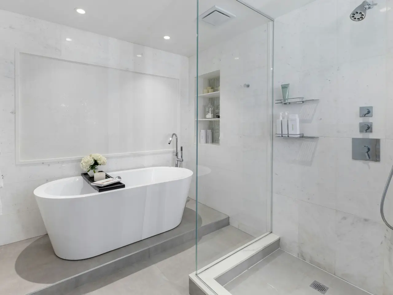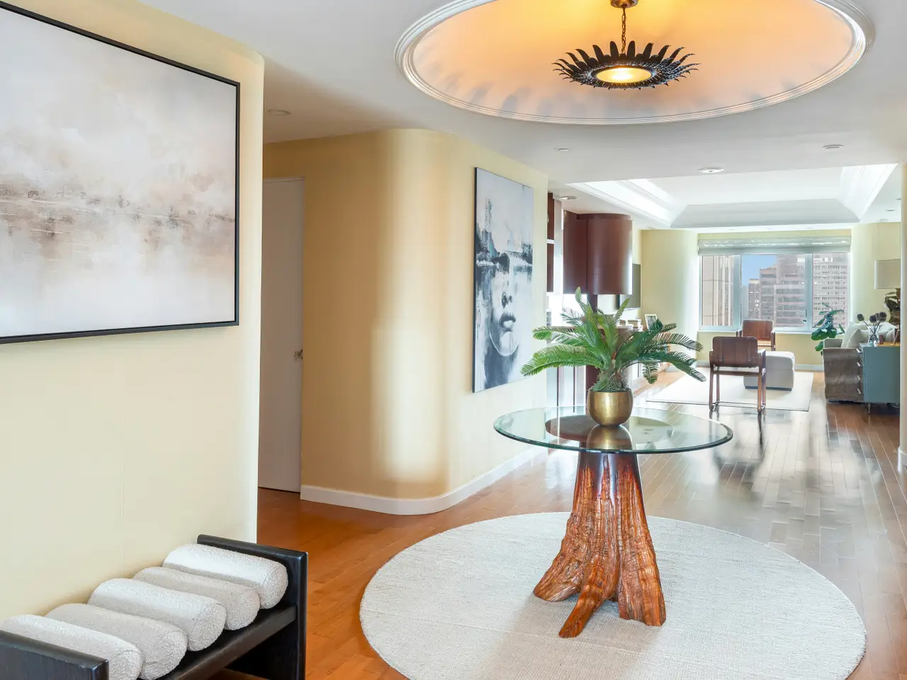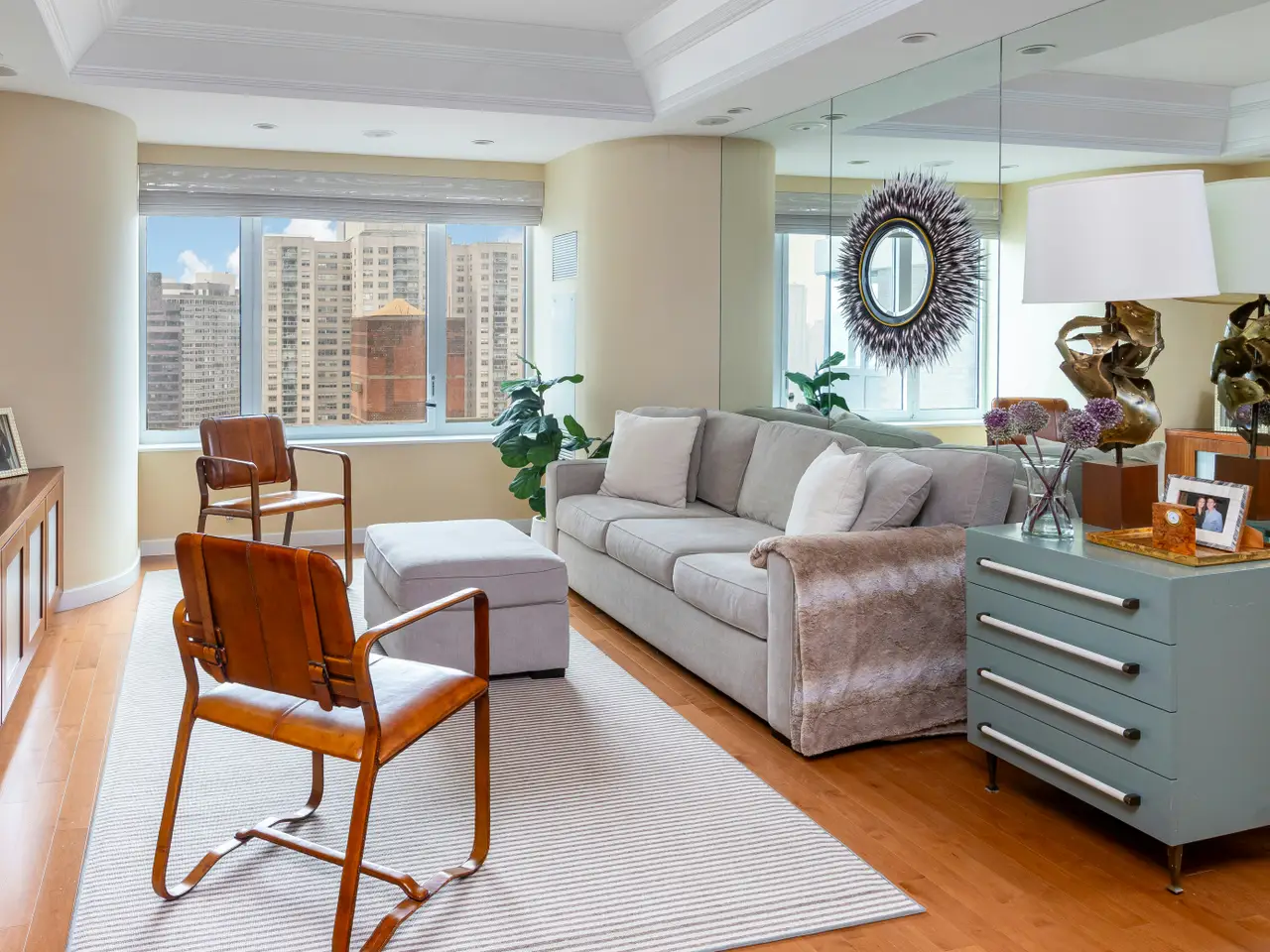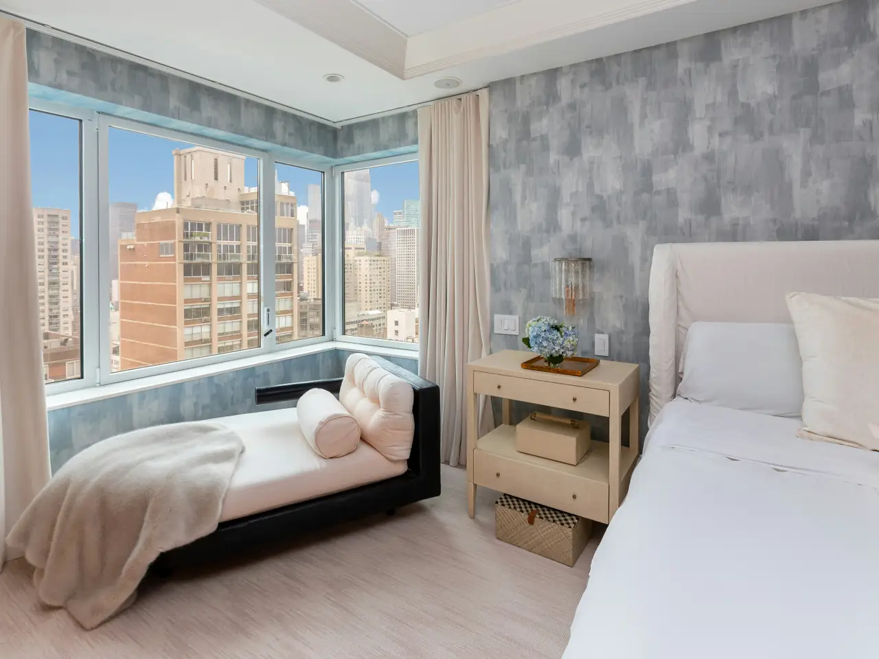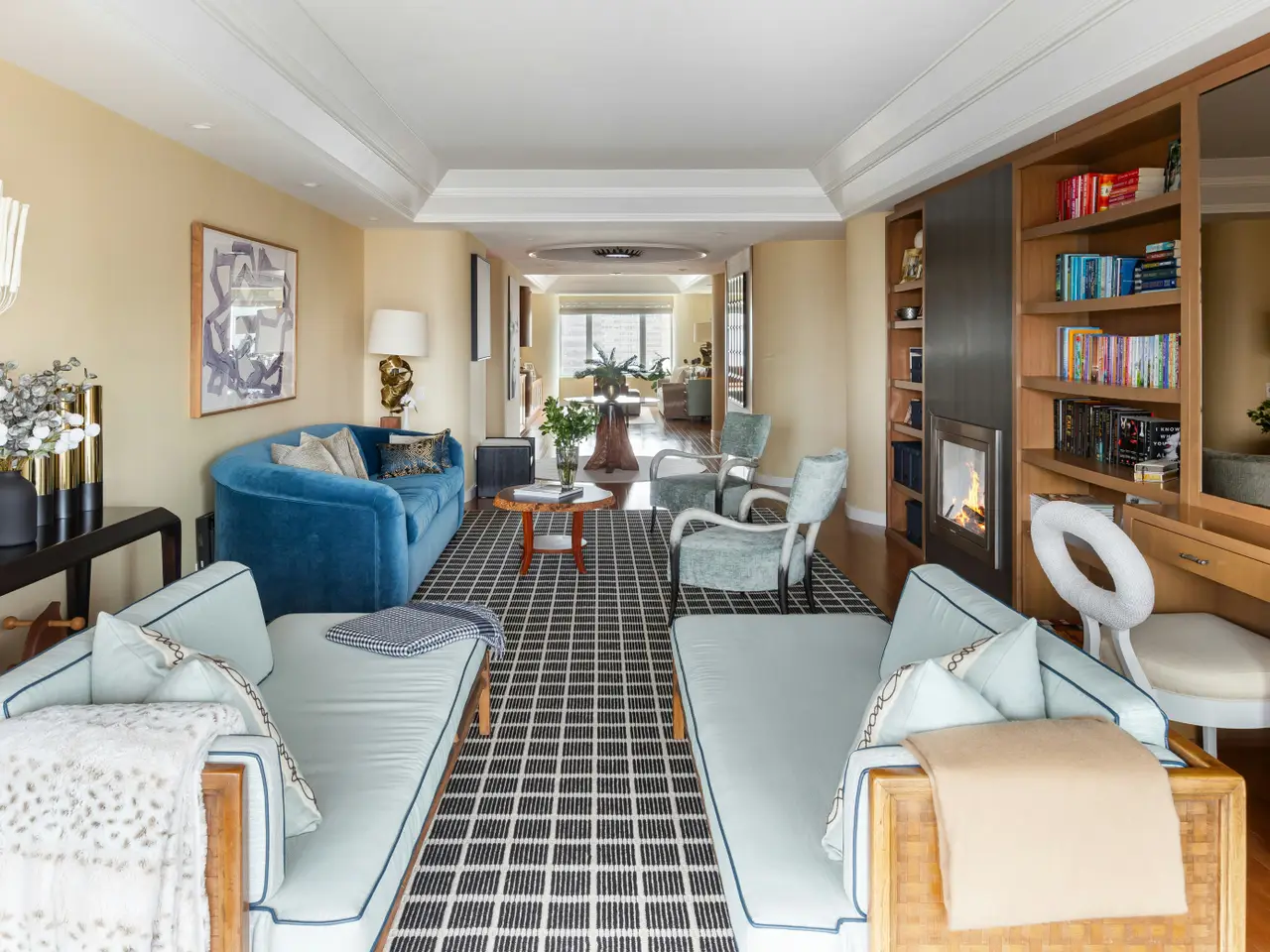 Triple Mint Stunning Home at the Sovereign Highly desirable A line on the 30th floor with glorious open city and bridge views on offering for the first time after a careful and meticulous renovation. This spacious and elegant home offers 65 feet of north to south vast entertaining and living space, 2-3 sizable bedrooms, 3 full baths plus powder room and a gorgeous custom kitchen. A private stone paved balcony offers room to lounge, host an al fresco meal and soak in the views with cinematic vistas of the cityscape and 59th Street Bridge. A semi-private landing leads to the most captivating entry- a dramatic central foyer and gallery with cove ceiling and beautiful lighting- providing a focal point of the incredibly vast living room and balcony to the north- and family room / den to the south. With many options for formal and relaxed living - there's a delightful sense of spaciousness, scale and flow. A fabulous onyx powder room is ideally positioned for guest use. The 24 foot formal living room is grandly proportioned and offers multiple seating areas- handsome walnut millwork, decorative fireplace, and a functional and chic built-in desk and directly opening onto the balcony for a lovely opportunity to mingle indoor and outdoor living. To the south is an ample family or media room for more casual living, banquet sized formal dining, or space to relax or entertain. Cleverly opened to the stunning chef's kitchen- you and your guests will feel invited into the action- yet with the ideal separation of space for practical function. The custom windowed kitchen features solid walnut cabinetry, Quartz countertops, a top of the line Wolf range top that vents externally, as well as a Wolf wall oven and convection microwave. In addition, a Subzero refrigerator, Miele dishwasher, and best of all a Miele stacked & vented washer/dryer. Copious storage and pantry space - sun filled thanks to its large south facing window and a cheerful place to prepare lavish meals. The formal dining room offers more custom millwork for dinnerware storage, a custom banquette and provides space for gracious formal or casual dining. This room is often and easily turned into a third bedroom in this line thanks to its adjacent renovated pristine full bathroom. The bedroom wing provides the most generous and luxurious of primary bedroom suites with lovely sun-filled views, significant custom wardrobe storage including a walk-in closet, and a spa worthy expanded en-suite bathroom with double vanity- discreet water closet- oversized step-in shower and soaking tub- tastefully and smartly appointed in Bianco marble slabs and tile work. Radiant floors keep toes warm on chilly mornings, complemented by a classic towel warmer. The second bedroom is also king-sized and offers custom closets, interesting and bright open views, and a renovated en-suite bathroom of Carrera marble. No walls are shared between bedrooms for extra privacy. Important upgrades in this showpiece home include new walnut flooring in all public rooms, new double insulated sound proof windows and new HVAC system to ensure year-round comfort. Recessed lighting on dimmers throughout the entire home and custom window treatments .This serene home is blissfully quiet throughout at all times of day. The Sovereign is one of the most beloved full service residences on the East Side providing a large and helpful staff, driveway for ease of access, in-building garage with direct access from the lobby, on-site management, private storage, health club, bike room, gardens, resident manager, porters and handymen. 65% financing is permitted, up to two dogs are permitted with board approval, sublets allowed with Board approval for 1-2 year terms, up to 8 years total.