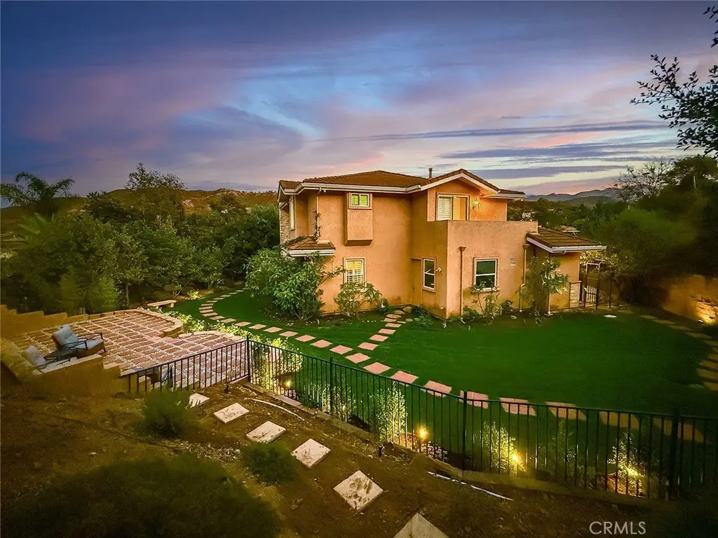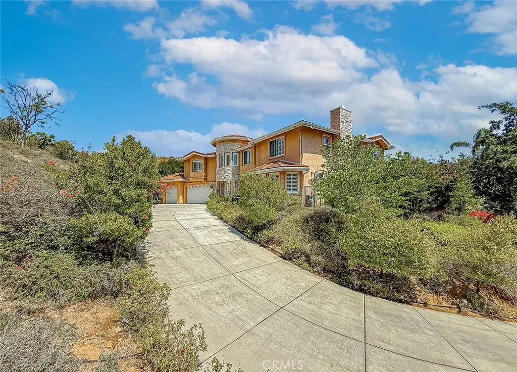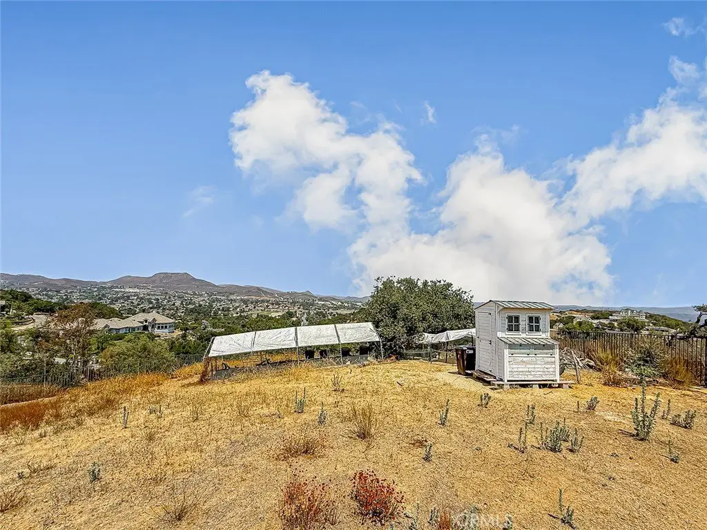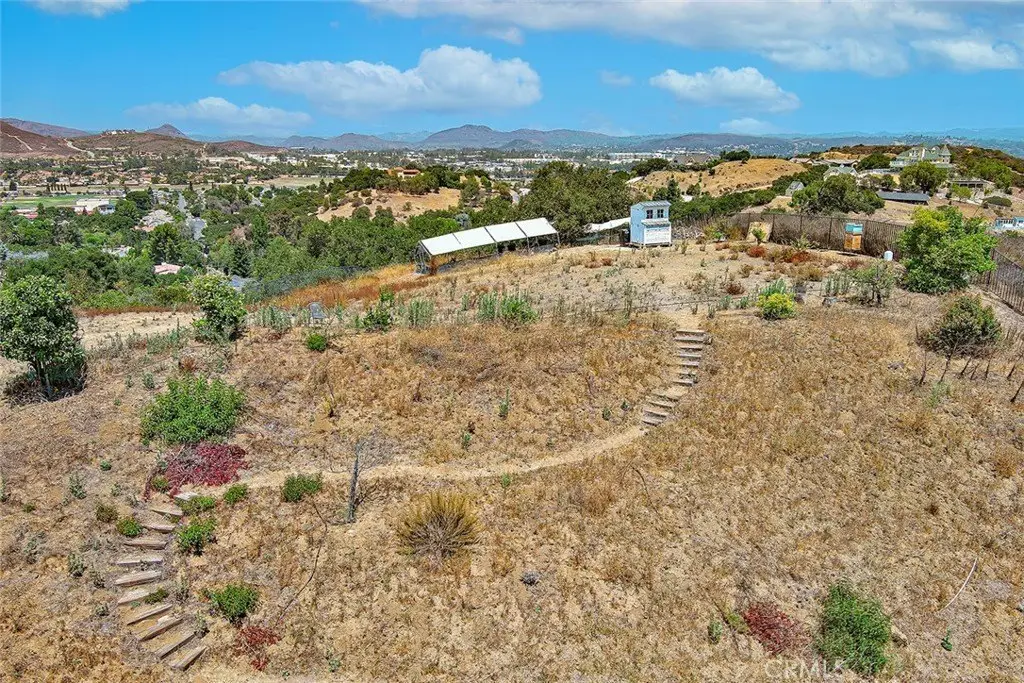 Welcome to the exclusive gated enclave of Lynn Oaks Estates. This stunning residence is perched atop a long private driveway and offers breathtaking surroundings on approximately 1.5 acres. This one-of-a-kind property includes a working beehive for fresh honey, a charming chicken coop, and potential building opportunity, with the possibility of a separate access driveway via a neighboring easement with breathtaking 360-degree view—enjoy sunrise to sunset views of the surrounding mountains, rolling hills, and city lights. Behind elegant double entry doors adorned with leaded glass insets, you're greeted by a showstopping circular wrought-iron staircase, setting the tone for the sophistication throughout. The formal living room boasts dramatic cathedral ceilings, a custom fireplace, and ornate iron-accented windows that flood the space with natural light. An arched passageway leads to the formal dining room, perfect for hosting elegant dinners. Adjacent, the butler’s pantry flows seamlessly into the heart of the home—an expansive gourmet kitchen equipped with stainless steel appliances, a large walk-in pantry, and a generous center island, all open to a spacious dining area and inviting family room complete with fireplace, wet bar, and plantation shutters. Downstairs also includes a versatile office/gym, a guest bedroom, and two baths, offering comfort and functionality for family and guests. Upstairs, the massive primary suite serves as a private sanctuary featuring a balcony with a view of the backyard, an ensuite bath with dual vanities, a soaking tub overlooking the backyard, a separate shower, and a private water closet. Additional bedrooms include one with a private ensuite and two sharing a Jack-and-Jill bath, all designed with comfort and style in mind. Step outside to a newly sodded backyard, perfect for entertaining with an elevated platform ideal for al fresco dining. Venture up the tiered slope via a scenic staircase that leads to a breathtaking 360-degree vista—enjoy sunrise to sunset views of the surrounding mountains, rolling hills, and sparkling city lights. Don’t miss your chance to own a truly unique property offering land, and limitless lifestyle potential in one of the area’s most desirable gated communities.
