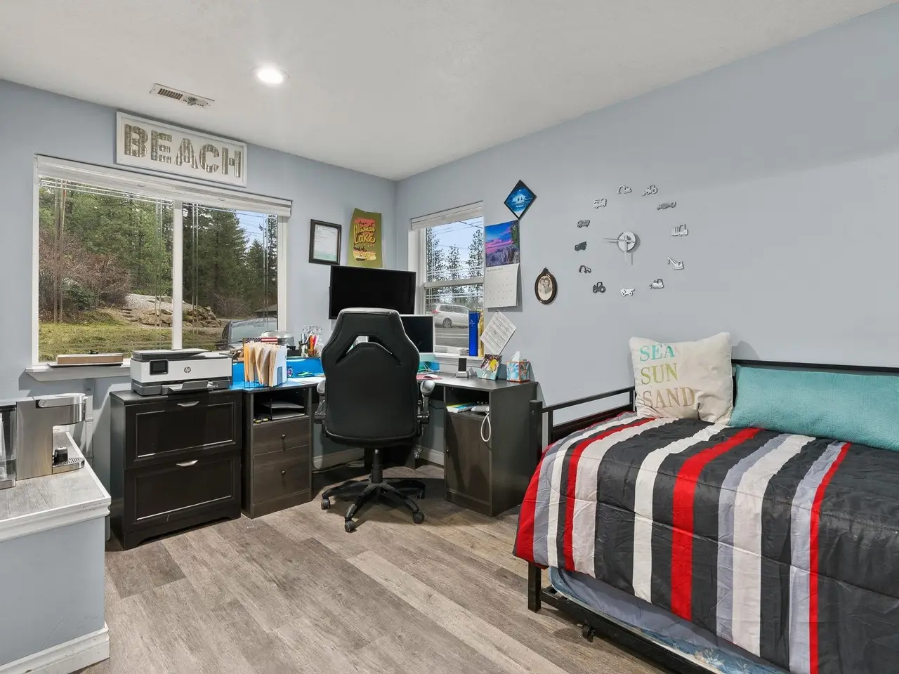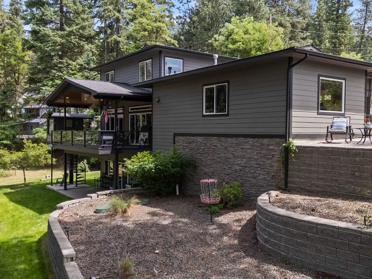 Welcome to your year-round lake living dream! This stunning 5-bed, 4-bath, 3-story retreat on 0.42 acres steps from Newman Lake blends comfort, luxury, and outdoor adventure. Enjoy sweeping water views, privacy, and direct lake access. Inside, find modern finishes, stainless appliances, large pantry, gas fireplace, and spacious bedrooms. A small bonus basement room is ideal for a gym, office, or media space. Updated bathrooms add fresh functionality. The expansive deck, plumbed for gas, includes a charming treehouse with power, magnetic walls, and a spiral staircase to the yard. Outdoor features include a heated driveway, Centurion generator, hot tub wiring, outdoor shower, horseshoe pit, and access to a private community beach with fire pit and boat slip. Oversized garage and furnace/storage room provide ample space. Walk or ride to the public boat launch or Silverbeard's Marina for pizza, wine, beer, and water rentals. This is more than a house, it's a lifestyle. Live the lake life you've always dreamed of!