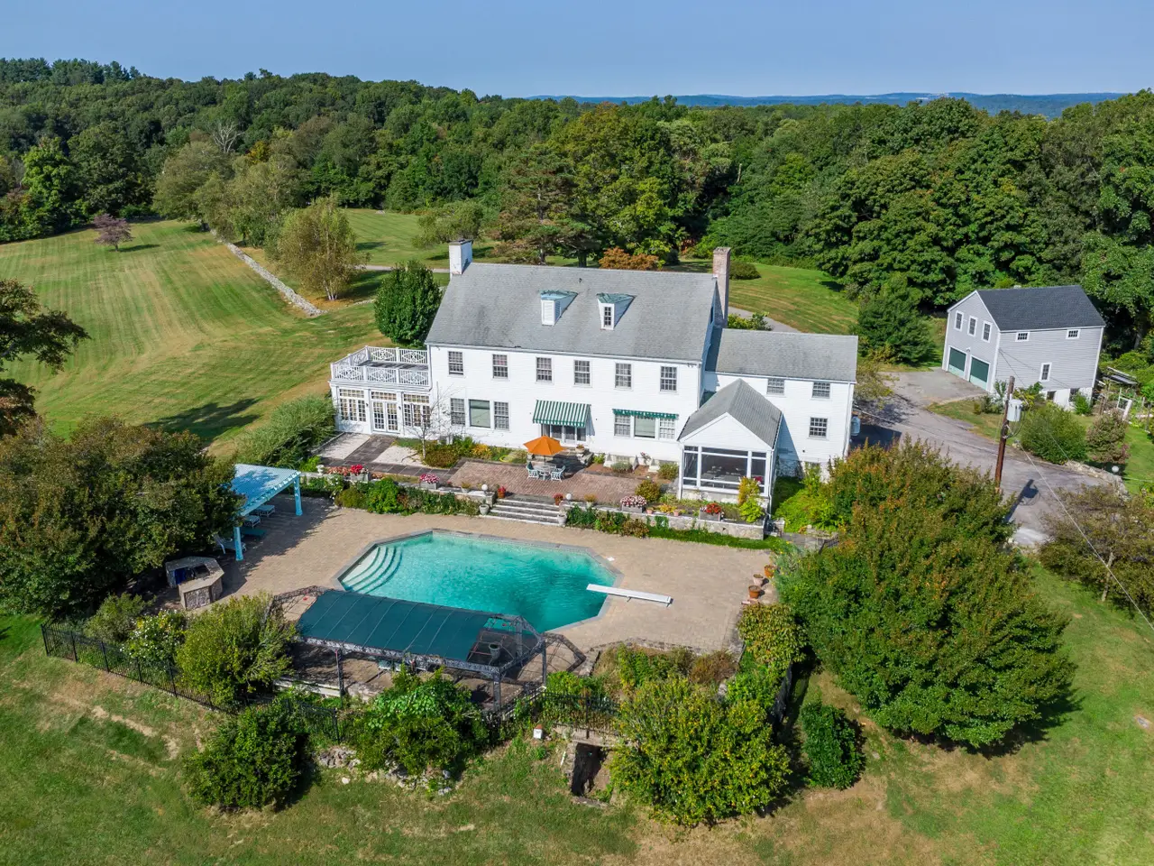 Welcome to 49 Great Ring Road-an iconic estate with breathtaking views and a classic 1940 built home full of charm and elegance. Step into the front-to-back foyer and take in the sight lines to the expansive stone patio and sparkling pool. At the heart of the home is the great room, featuring a soaring ceiling and a grand fireplace-perfect for gatherings. The custom cherry sunroom is a showstopper with wide plank chestnut floors, coffered ceiling, and French doors leading outside. Host memorable dinners in the banquet-sized dining room with built-ins and a cozy fireplace. The updated kitchen features granite counters, a breakfast bar, large pantry, and adjacent laundry area. A delightful breakfast room and an oversized screened-in porch complete the space. The primary suite is a two-room retreat with two fireplaces, ample closets, dual baths, and a balcony overlooking the grounds. Upstairs, you'll find three additional ensuite bedrooms, plus two more bedrooms with a shared full bath. The finished lower level includes a custom bar and a parlor with fireplace. Potential in-law suite over the kitchen with a full bath. A detached two-car garage includes guest quarters. Additional land available-an extraordinary opportunity. The right side of the house features air conditioning via a split system, while the left side (as you face the home) does not have A/C but could be easily updated. The guest house will require a new kitchen. There is also space above the kitchen that could serve as an in-law suite or playroom. Please refer to the floor plans for a better understanding of the layout-this exceptional home offers an abundance of flexible and beautifully designed space.