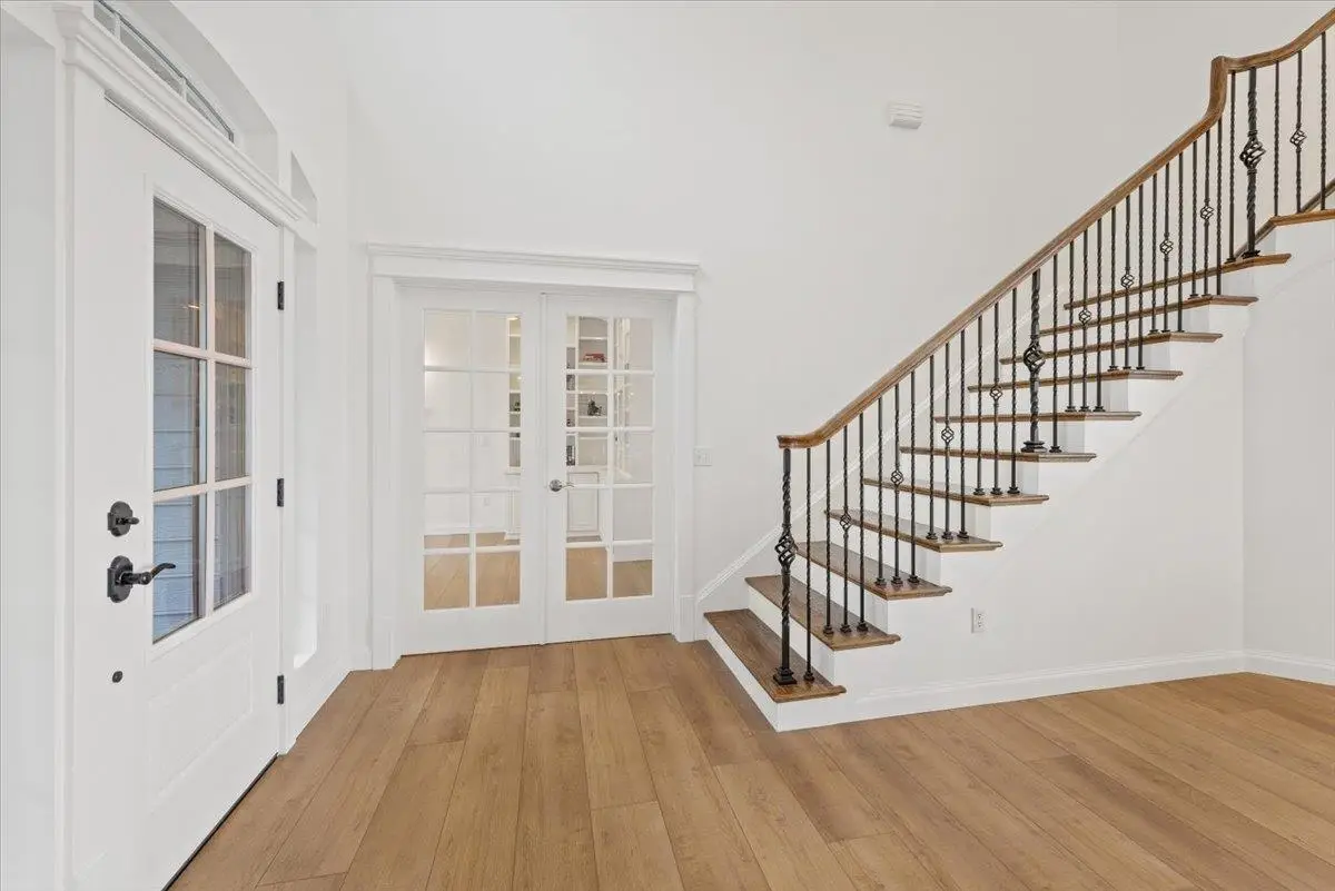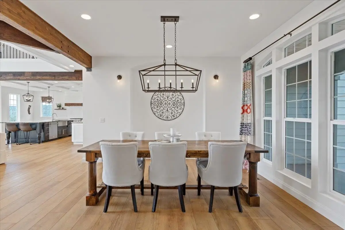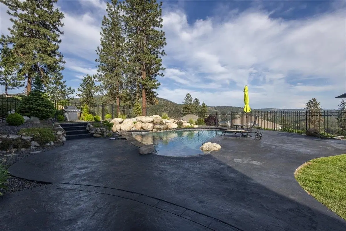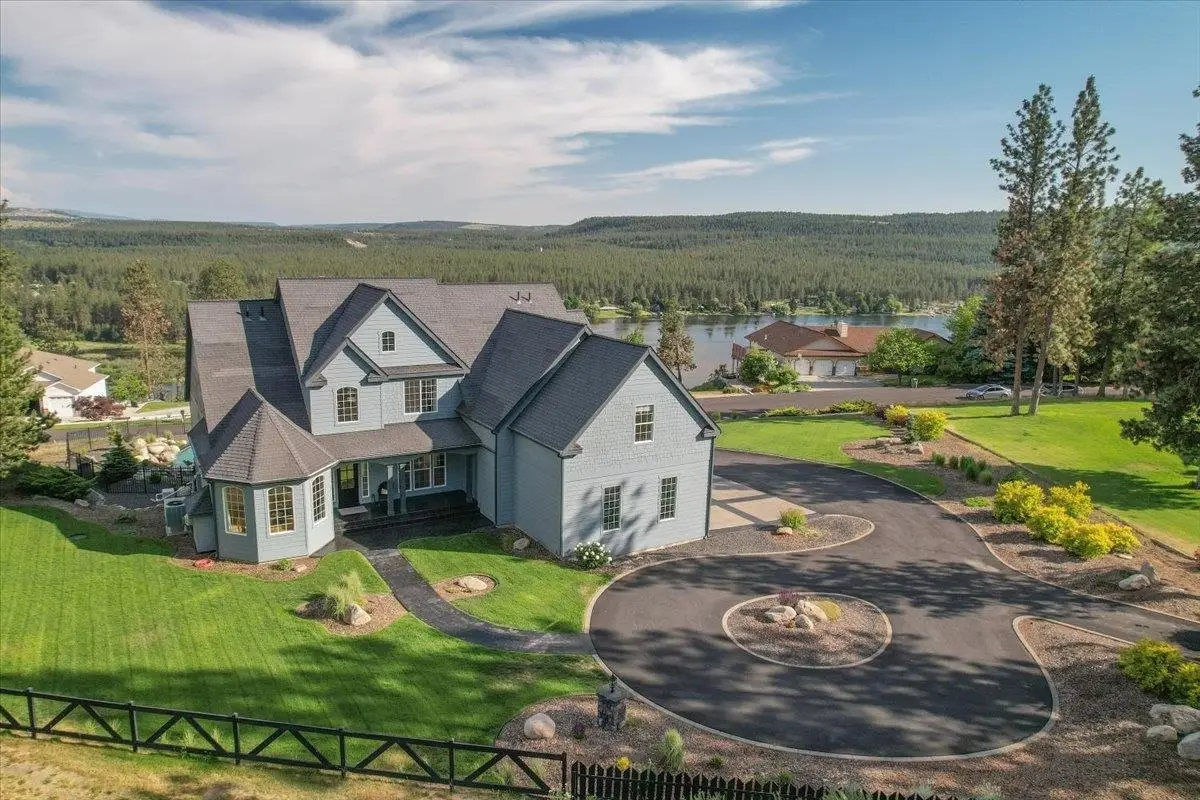 Custom built two-story with daylight walkout basement modern farmhouse style home on 1+ acre lot with an incredible lake view! There is so much to love in this home that has an open floor plan, floor to ceiling windows and newer LVP plank flooring. Solid alder wood doors. Spacious kitchen with granite counters, built-in gas range, new dishwasher and a huge island. Main floor primary suite with a walk-in closet and full bath. Formal dining room plus an office/library. Second floor features 3 bedrooms and 2 bathrooms along with a bonus play room over the garage. Lower level family room has a wet bar, workout room, plus a home theater room along with a 5th bedroom and bathroom. Wait there's more! A salt-water pool with a waterfall feature. 3-car oversized garage and plenty of driveway parking. Newer HVAC system (01/2025). HardiePlank siding & shake accent. All in a gated neighborhood with amazing views of Lake Spokane that's conveniently located to shopping, dining & an easy commute to Spokane.