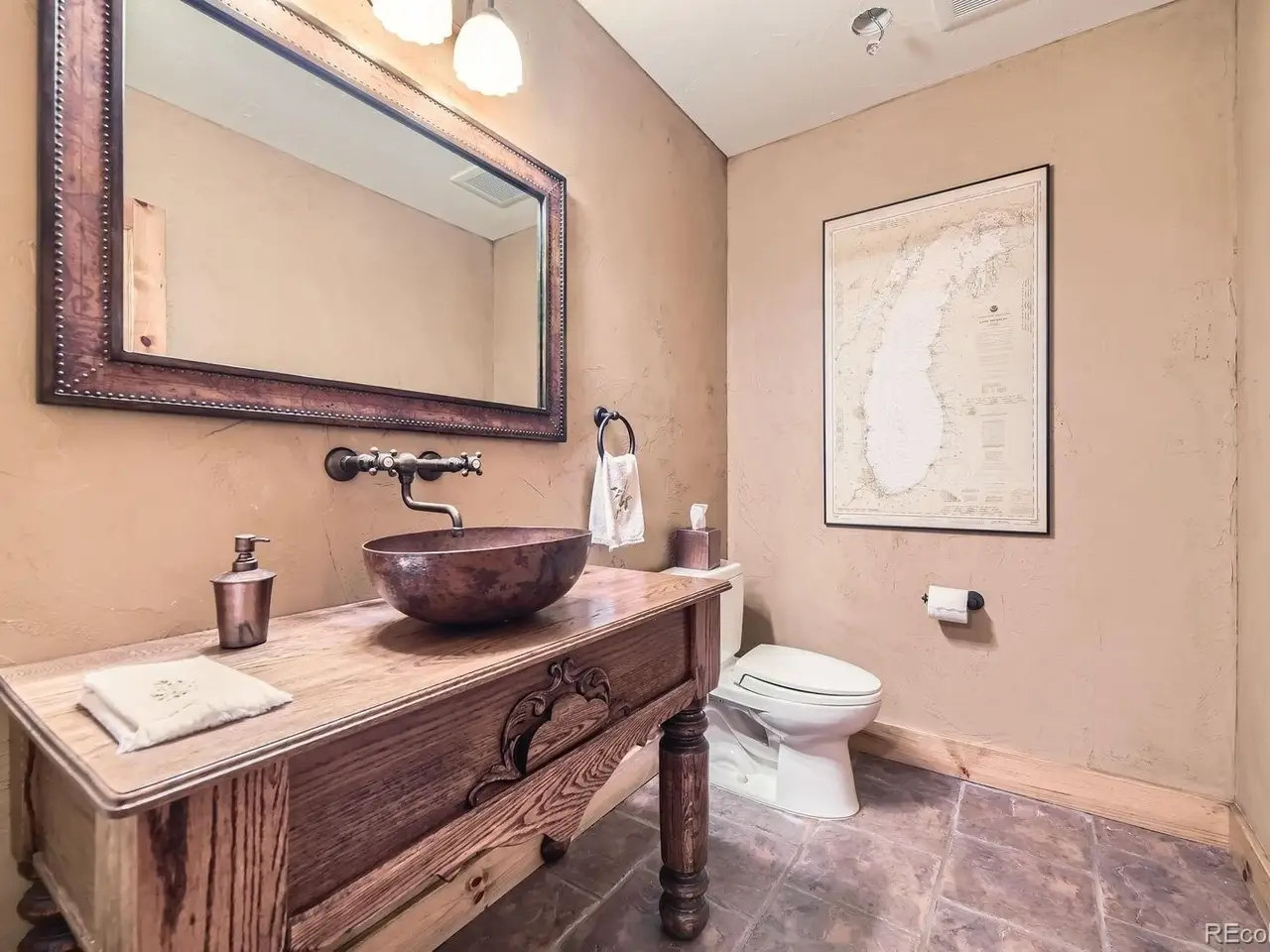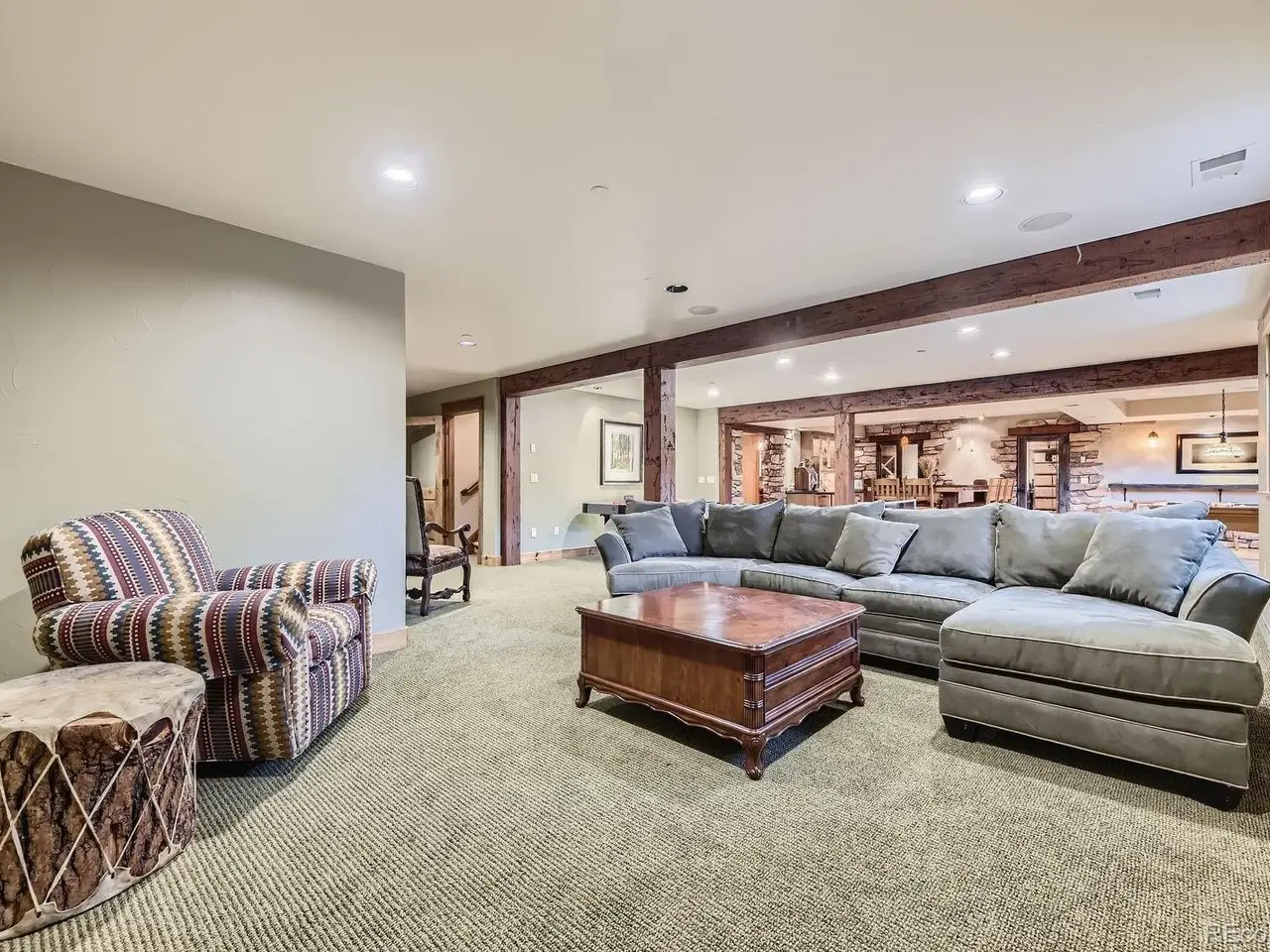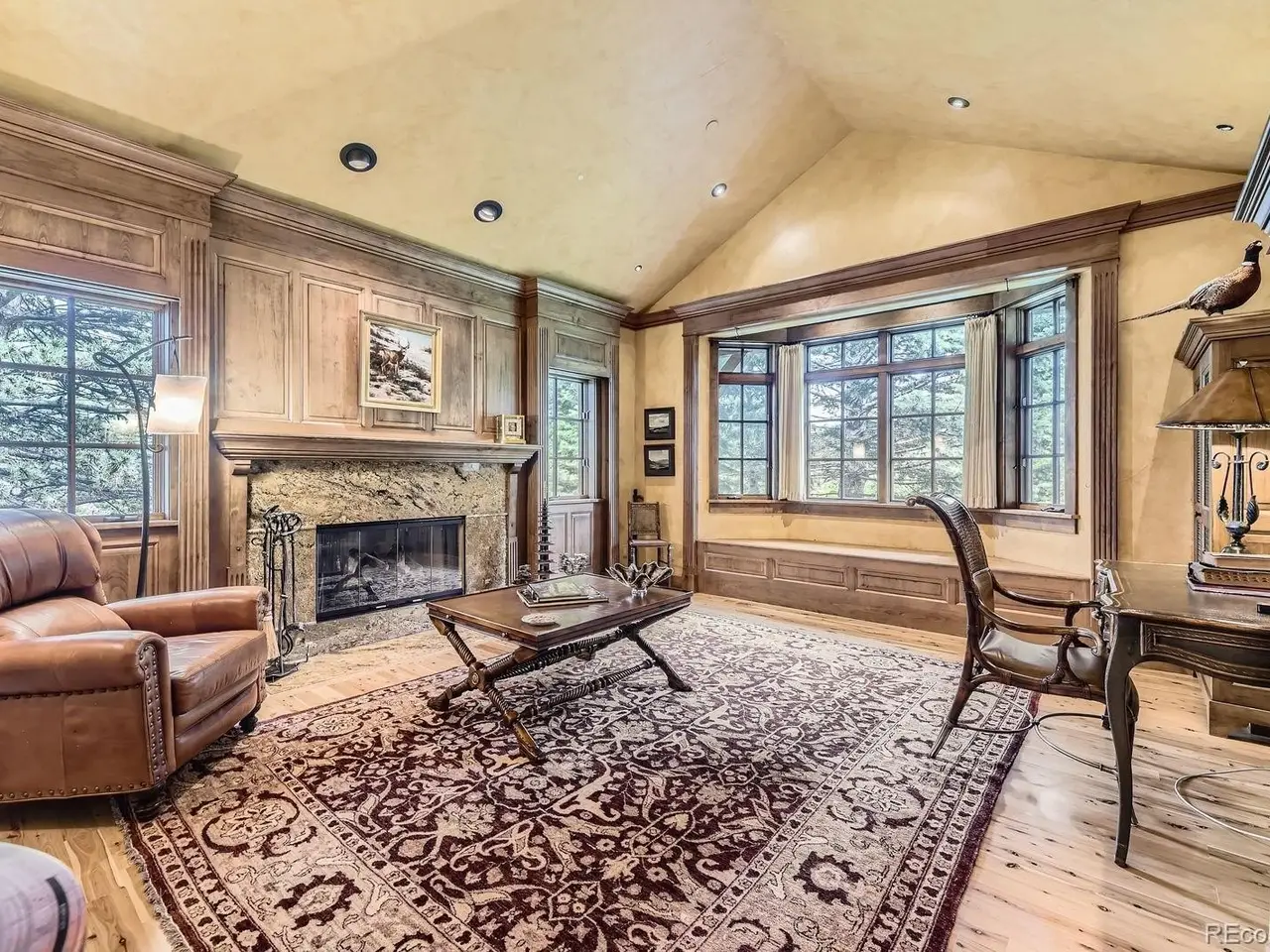 Dramatic stone fireplace