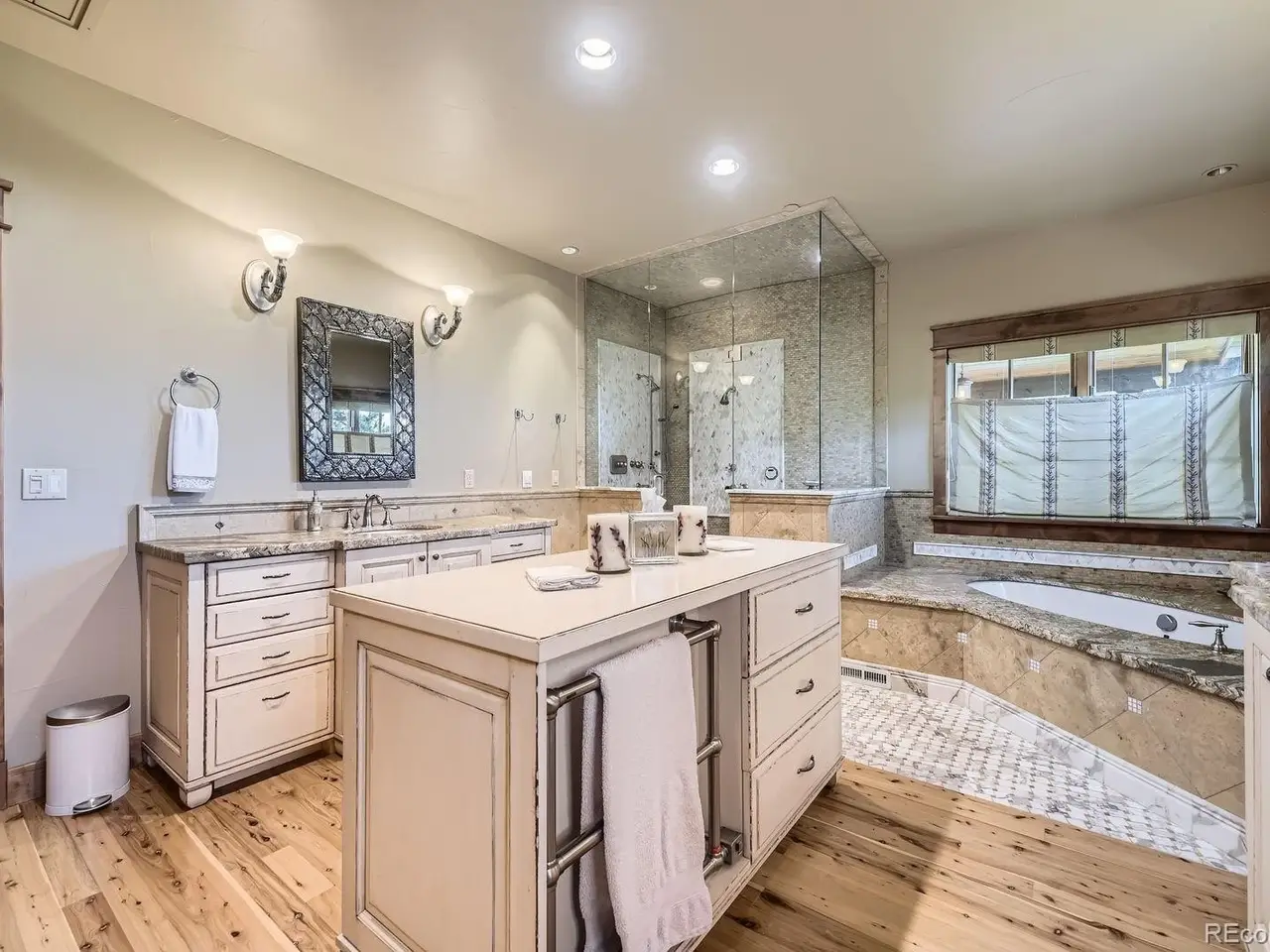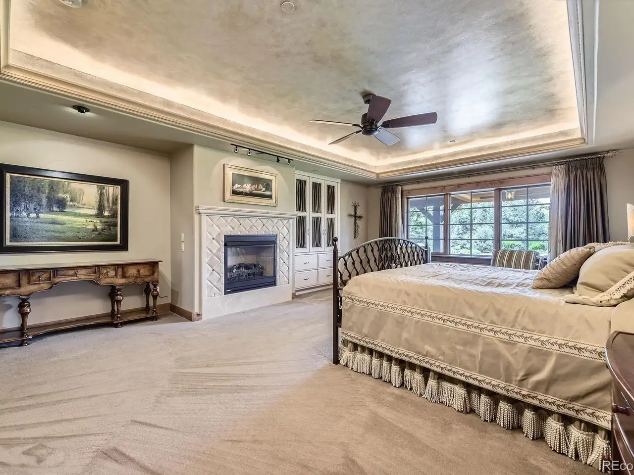 Spa-like primary suite with fireplace