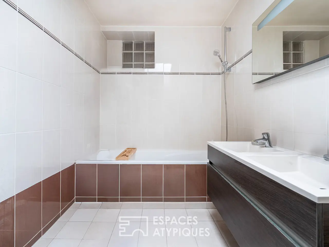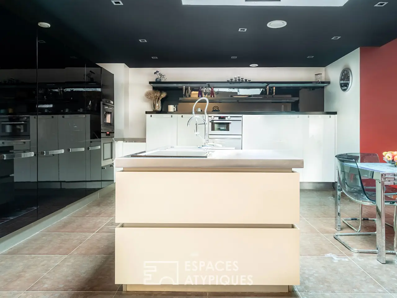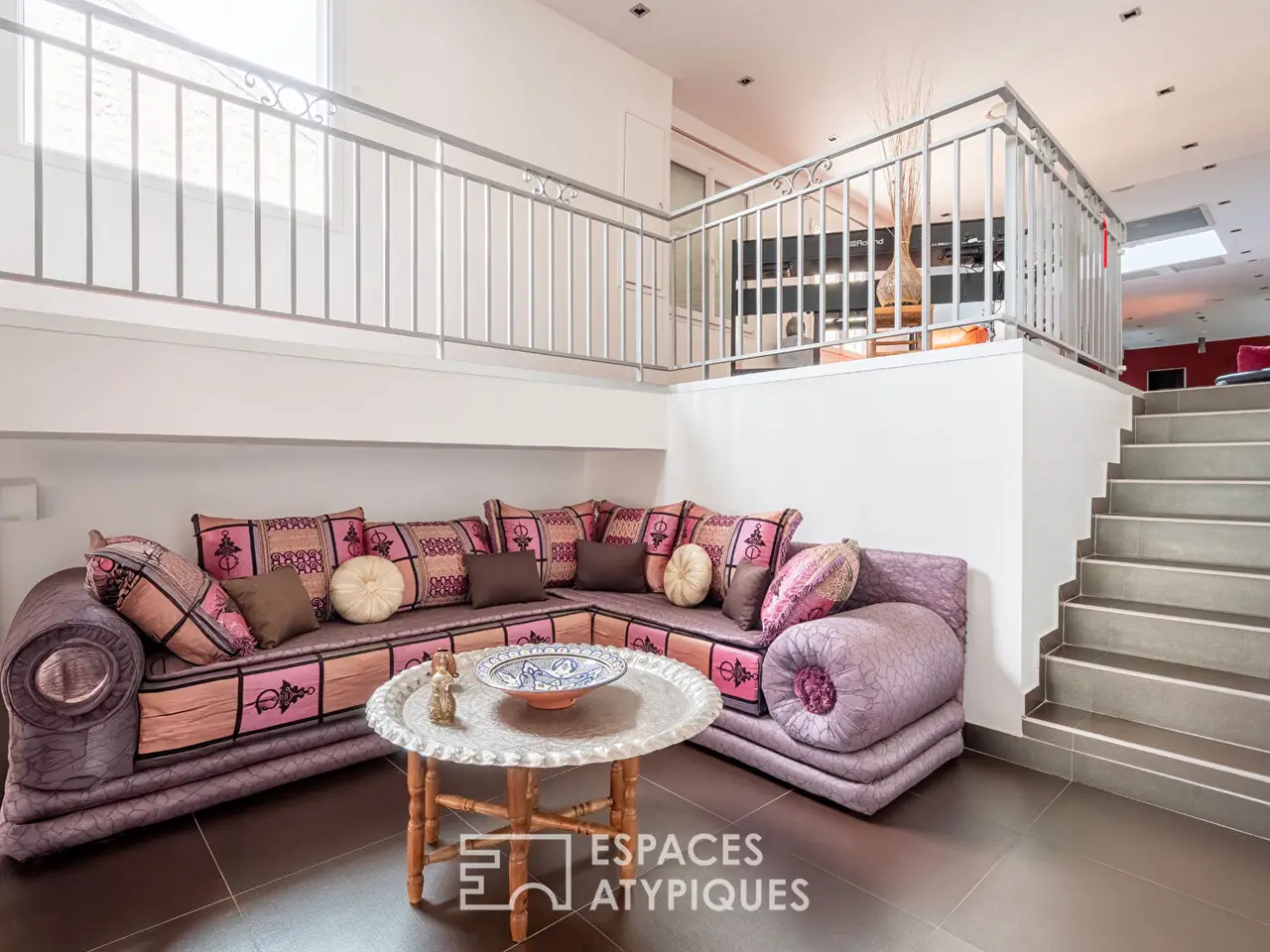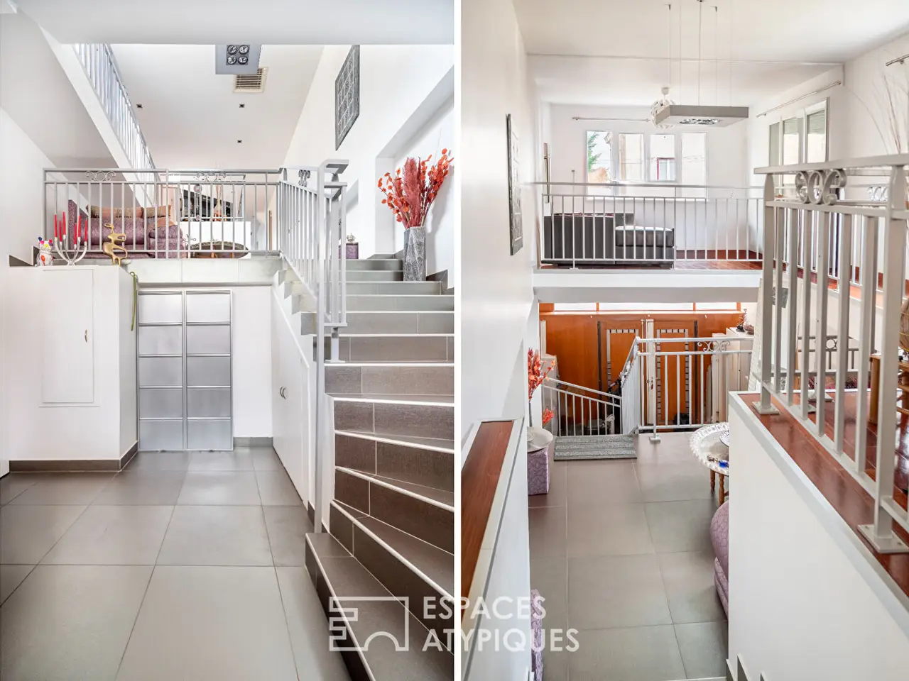 Located in the sought-after Viselets district of Nogent-sur-Marne, resulting from the renovation of a former printing house, this contemporary 214 sqm loft seduces with its bold architecture and spectacular volumes. In a small co-ownership of 4 lots, behind a discreet facade, the tone is set: space, light, and comfort dominate, announcing a place designed to combine design, conviviality, and serenity.The vast reception hall, rare for a loft, reveals generous volumes and fluid circulation. A true backbone of the place, it connects the different spaces by an elegant central staircase that highlights the high ceilings and the verticality typical of this type of habitat.A first landing, bright and soothing, serves as a reception lounge or reading corner and can easily become an intimate reception area.One level higher, the light intensifies thanks to a superb skylight in the roof, providing zenithal brightness throughout the day. This natural addition enhances the interior architecture and guides you to the heart of the loft.The main living area then opens up in all its splendor: a vast volume combining the living room, dining room, and contemporary fitted kitchen. The magnificent central island, a true pivot of the space, brings family and friends together around a modern shared space. The pellet stove, both efficient and aesthetic, creates a warm and friendly atmosphere.On this same level, a modular space offers the possibility of easily creating a third bedroom or a separate office as needed. The loft also includes two superb master suites, designed to offer everyone comfort and privacy. The first has its own shower room, while the second comes with a spacious bathroom and toilet. Between the two, a large shared dressing room creates an elegant and functional link, ideal for an organized and refined daily life.A laundry room, hidden behind a sliding door, ensures practical organization of daily life, while a separate toilet completes this floor with elegance and functionality.An interior driveway allows you to park a vehicle in complete peace of mind.Located on a quiet street, close to schools, shops and only a ten-minute walk from the RER A of Nogent-sur-Marne, this property benefits from a privileged living environment, rare in the heart of the city.A successful combination of spectacular volumes, quality materials and a soothing atmosphere, this loft perfectly embodies the spirit of atypical real estate in Nogent-sur-Marne.A unique place, designed to create a real crush.RER A Nogent-sur-Marne: 10 minutes on footSchools: 2 minutes on footShops: 5 minutes on footREF. 13185Additional information* 4 rooms* 2 bedrooms* 1 bathroom* 1 bathroom* Parking : 1 parking space* 4 co-ownership lots* Property tax : 3 700 €* Proceeding : NonEnergy Performance CertificatePrimary energy consumptione : 291 kWh/m2.yearHigh performance housing*A*B*C*D*291kWh/m2.year9*kg CO2/m2.yearE*F*GExtremely poor housing performance* Of which greenhouse gas emissionsb : 9 kg CO2/m2.yearLow CO2 emissions*A*9kg CO2/m2.yearB*C*D*E*F*GVery high CO2 emissionsEstimated average annual energy costs for standard use, indexed to specific years 2021, 2022, 2023 : between 4880 € and 6660 € Subscription IncludedAgency feesThe fees include VAT and are payable by the vendorMediatorMediation Franchise-Consommateurswww.mediation-franchise.com29 Boulevard de Courcelles 75008 Paris