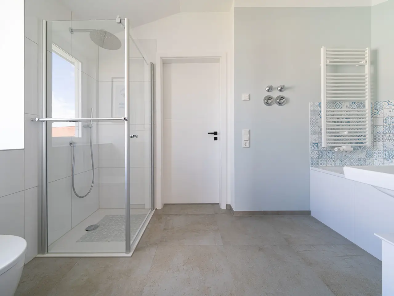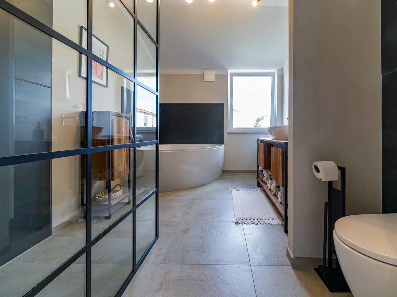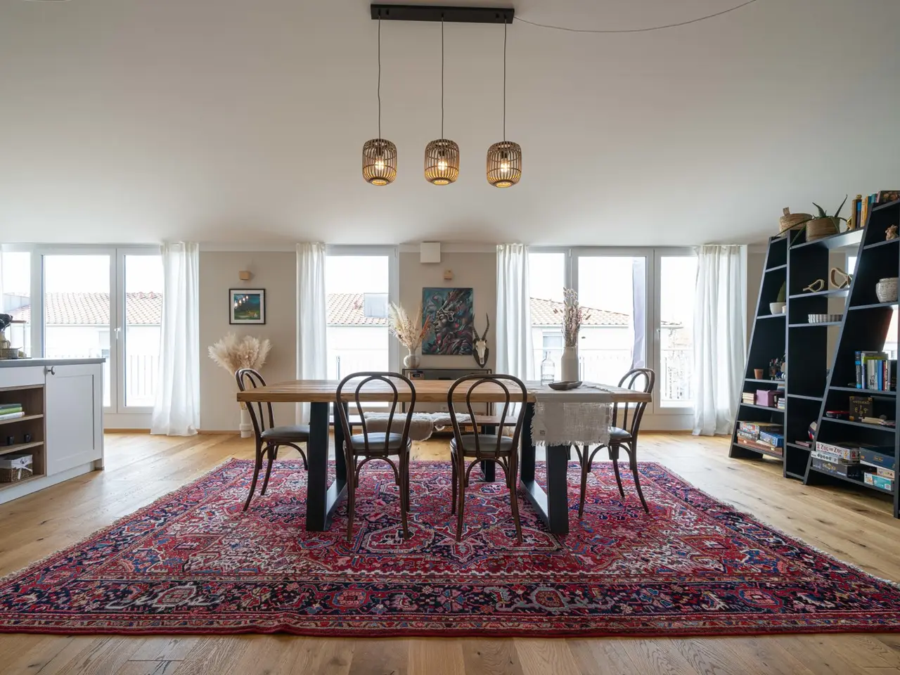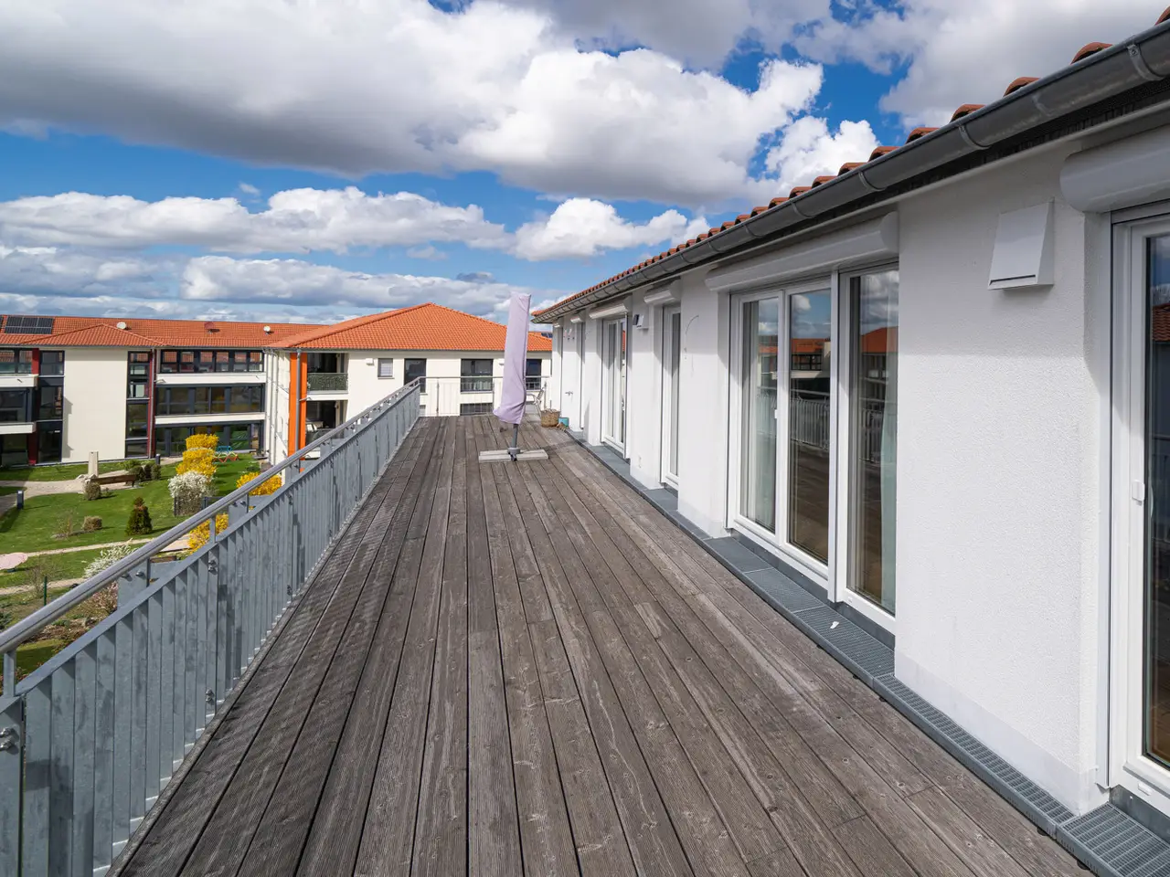 An absolute rarity in Nördlingen: A large, as-new, modern, elegant and barrier-free penthouse close to the city center. The exclusive, luxurious penthouse with a living space of approx. 208 m² is located in a building that was completed in 2016. The apartment itself was only renovated and furnished by the owner in 2021 and is therefore in a very new condition. Contrary to the original plans, the quality of the fixtures and fittings has been upgraded, is luxurious and thus offers the highest level of living comfort. The penthouse is equipped with an elevator that arrives directly on the floor (exclusive access). The rooms are flooded with light and have a ceiling height of up to 3.60 meters. The high-quality parquet floors and underfloor heating ensure a pleasant living atmosphere, while the central ventilation system with heat recovery ensures energy efficiency and a good indoor climate. A highlight of the penthouse is the roof terrace measuring over 50 m². It faces east/south-east and is equipped with a water connection and outdoor lighting. The open-plan living/dining area with kitchen offers plenty of space on approx. 83 m² and has a modern design. The high-quality carpenter's kitchen is equipped with Siemens appliances and leaves nothing to be desired. The Quooker bubbler tap provides boiling and sparkling water directly from the kitchen tap. The apartment has 3 (or 4) bedrooms, depending on your personal layout. The bathrooms are equipped to a high standard and offer a special feel-good experience. There are two daylight bathrooms, a corner bath and a large walk-in shower in the master bathroom and an oval bath and large shower in the second bathroom. Both bathrooms and the guest WC also have stylish washbasins and a WC. Two dressing rooms have been individually fitted with matching built-in wardrobes. There is also an office (or utility room, depending on usage preferences), a pantry/storage room and a checkroom area in the separate entrance hall. The apartment is barrier-free and offers maximum living comfort. The energy efficiency class A speaks for itself: a combined heat and power unit and an additional gas-fired low-temperature condensing boiler of the latest design to cover peak loads supply the house with energy. All windows are triple-glazed and generously proportioned. They are shaded by electrically operated shutters and blinds. The apartment has two underground parking spaces and a large cellar room. The elevator takes you from the underground garage to the floor of your apartment. The location of the penthouse is close to the city center and offers good connections to public transport and shopping facilities. The purchase price includes two underground parking spaces, a high-quality, modern, as-new fitted kitchen and built-in wardrobes in two dressing rooms. Overall, the luxurious penthouse offers maximum living comfort in a generous amount of space. The quality of the fittings and the location make the penthouse an extremely attractive property. Don't miss out on this rare offer. We look forward to receiving your inquiry and will be happy to advise you on financing options for this exclusive property.