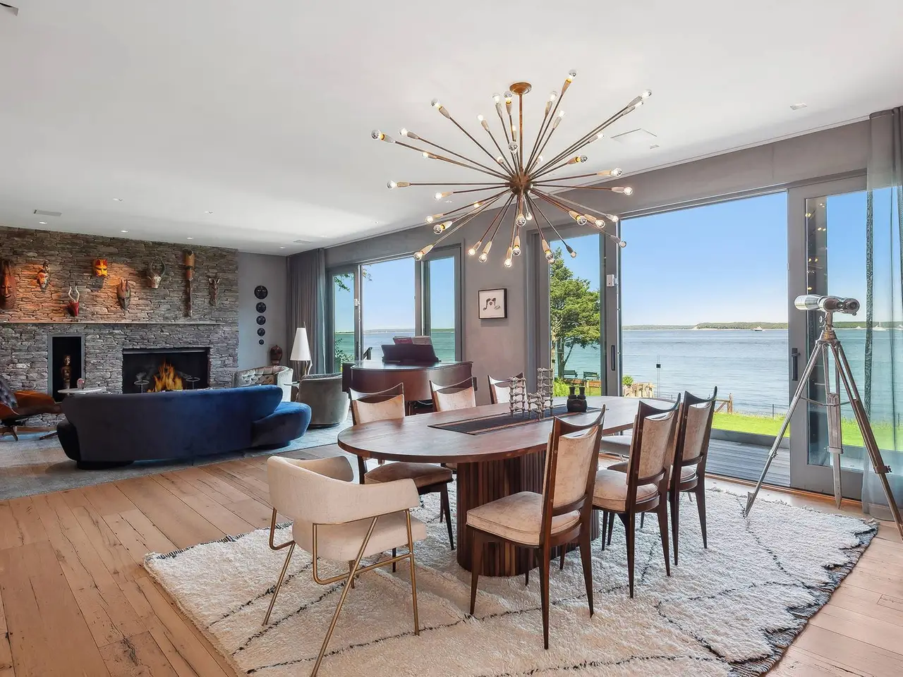 Experience the epitome of luxury in this newly renovated, modern waterfront property in Sag Harbor. This exceptional home offers breathtaking, unobstructed views of Sag Harbor Bay from every room thanks to walls of glass and an open-concept design. Relax in style on multiple private decks, around a saltwater infinity pool, or in the outdoor living room with a fireplace as you watch the yachts sail by. Inside, indulge in the gourmet kitchen, boasting top-of-the-line amenities that seamlessly flow into a cozy lounge area with unparalleled vistas. This designer masterpiece features five bedrooms, each with stunning water views, and 5.5 baths. The flexible layout allows for potential expansion, making room for a fifth bedroom or overflow space. Enjoy added luxuries like a gym, a roof deck, a finished loft play area with kitchenette, a media room, a steam shower, and wet bars. Custom tile work, radiant heated floors, a two-car garage with an electric vehicle charging station, and much more complete this unique home. Nestled in the private enclave of Bay Haven in North Haven, this jewel of a property is a rare find that combines sophisticated design with the serene beauty of its waterfront location. A boater's paradise awaits your arrival for your summer vacation!!