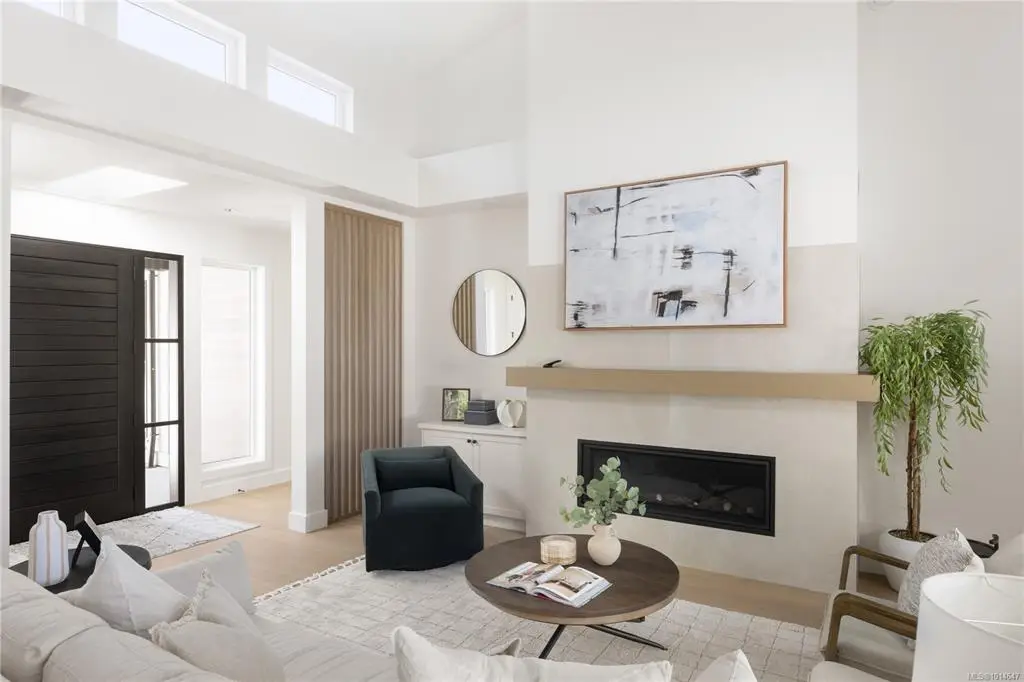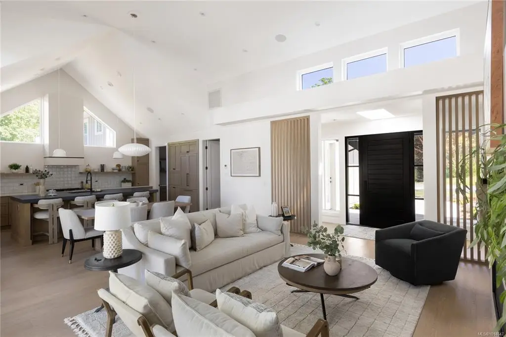 Stunning 4-bed, 3-bath rancher situated on a scenic 0.25-acre lot with exceptional sun exposure in the desirable Pat Bay neighbourhood. This immaculate single-level home offers a spacious open-concept layout with the finest finishes. The modern Cape Cod design is complemented by large windows, 16ft vaulted ceilings, and wide-plank hardwood floors throughout. The gourmet kitchen features shaker cabinetry, soft-close doors, premium appliances, quartz countertops, an oversized island, and a walk-in pantry. Retreat to the luxurious master suite with a 5-piece ensuite and walk-in closet. Outside, enjoy an expansive west facing patio space, ideal for entertaining or relaxing in the tranquil surroundings. Additional conveniences include an oversized double-car garage, radiant in-floor heating, a heat pump with A/C, and a partially covered rear patio to further enhance the appeal. Built without compromise.