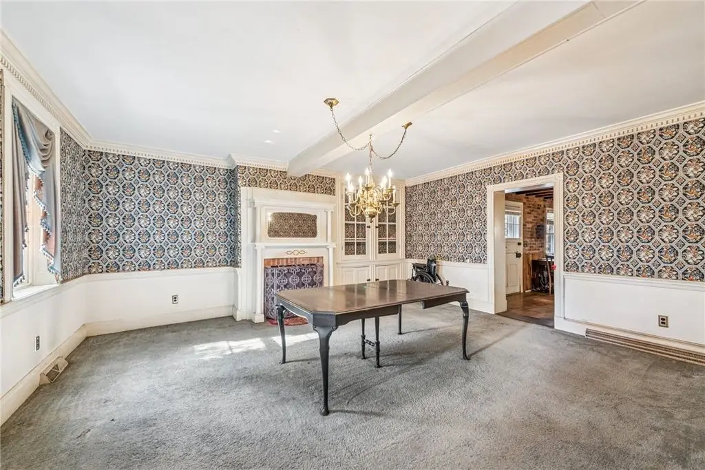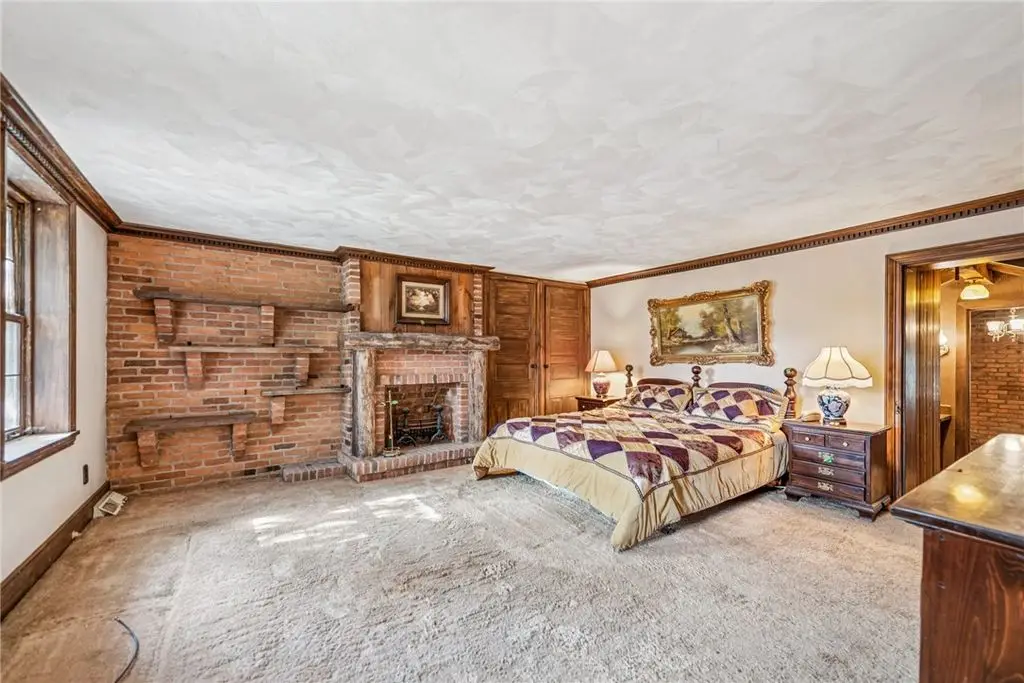One-of-a-kind property in North Strabane. This home is a recognized historic landmark that sits on 13 lush acres of land. Imagine the possibilities: you can remodel and renovate the current home, build your own estate or develop the entire property. This land is exceptional, wooded with soaring views, private, and bordering a beautiful horse farm. The all-brick rustic home boasts spacious rooms and high ceilings, gorgeous woodwork and six fireplaces. Large addition off family room is perfect for entertaining, with a built-in bar and space for games and gathering. Basement is partially finished with ample storage. Charming back patio looks out to big, beautiful, private yard. Minutes from Route 19 and I-79. Oil and gas rights are not conveying with the property.