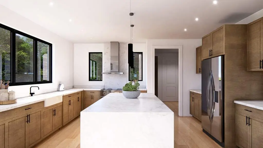 • Open family room kitchen layout