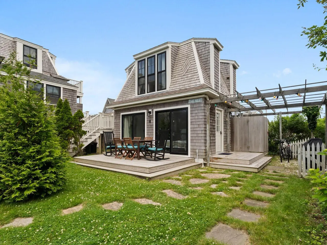 With a striking presence overlooking Nantucket Sound and just moments from the vibrant pulse of downtown, this distinctive compound is infused with a laid-back West Coast spirit while honoring the vintage charm of Oak Bluffs. Airy and effortlessly elegant, the four-bedroom main house has been masterfully updated, introducing refined, contemporary comforts, designed for every season. Tucked to the rear of the property, a private guest house-affectionately known as The Nest-has undergone a similar transformation and offers a private escape. Adjacent to the main home, the charming bunk house completes the ensemble, perfectly complementing this unique and inviting expansive compound. Though the wraparound porch invites you to linger with its endless ocean views, the nearby beaches, boutique shops, acclaimed restaurants, and the contagious energy of Circuit Avenue and the Harbor are all steps away, offering something for everyone to enjoy. For those seeking flexibility, the home's established rental history further highlights the desirability of both the property and its coveted location. An exciting opportunity to own in one of Oak Bluff's iconic settings! The Nest is a 616-square-foot guest house with a private deck, an outdoor shower, and a parking area. The living space is located on the first floor and has a full bath. The upstairs bedroom, with a private balcony, overlooks Farm Pond to Nantucket Sound. The Lilac House - this fun bunk house, perfect for the younger generation, is open-concept, has a full bath, front deck with waterviews, and a private outdoor shower and deck.