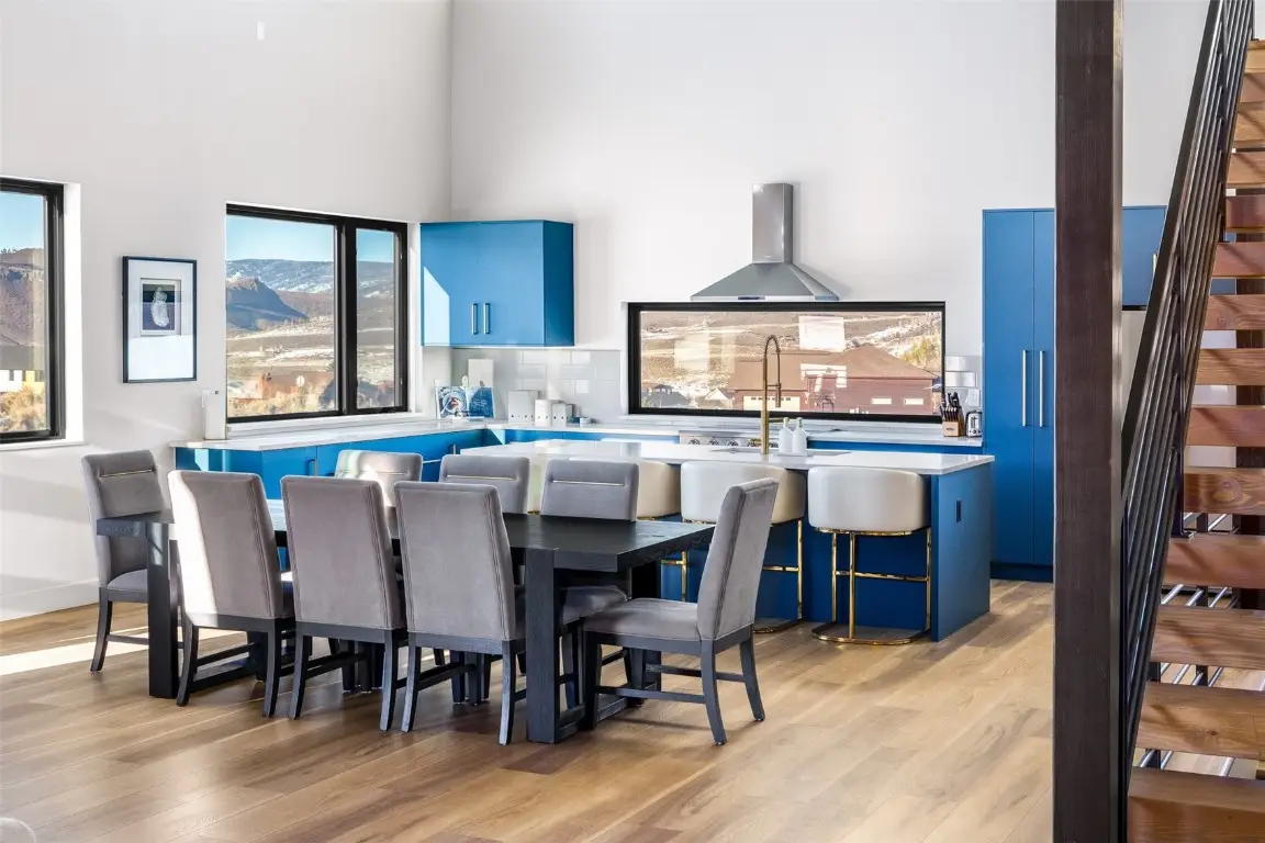 Welcome to 2355 Stageline Avenue, where luxury meets nature in this stunning mountain retreat. Offering 4,300+ sq. ft of living space, this home is designed for comfort, elegance, and breathtaking views. Step inside to vaulted ceilings that create an immediate sense of grandeur. The open-concept layout is perfect for entertaining, while floor-to-ceiling windows flood the space with natural light and panoramic mountain views. The primary suite is a true sanctuary, located on the top level for the ultimate in privacy and serenity. Boasting 8 large windows, this stunning retreat offers unobstructed views of Stagecoach Reservoir, ensuring you wake up to awe-inspiring scenery every day. The suite features motorized blackout shades for ultimate comfort and an opulent en-suite bathroom complete with an oversized soaking tub, LED mirrors, dual sinks, and a spacious walk-in closet. A versatile loft/flex space adjacent to the suite provides additional room for an office, reading nook, or yoga space. The heart of the home is the chef’s kitchen, boasting 26-ft cathedral ceilings, London blue cabinetry with gold finishes, THOR appliances, Calacatta Idillio Quartz countertops, and a subway tile backsplash. The built-in Sonos system ensures seamless sound throughout. Premium finishes include solid core driftwood-stained doors, Revere pewter trim, and custom baseboards. The fully finished basement offers a second living area, and a large 5th bedroom that could also be used as a rec room or bunk room, a large mechanical room with almost 500 sq. ft. of storage, and a walkout patio leading to a flat backyard. The exterior blends wood, metal, and black roofing for a modern, rustic appeal. Located 1.4 miles from Stagecoach Reservoir. Adjacent to nearly 2 acres of HOA-protected green space, with scenic walking trails just steps away. With its unparalleled craftsmanship, luxurious finishes, and spectacular surroundings, this home is a rare opportunity to own a piece of Colorado paradise.