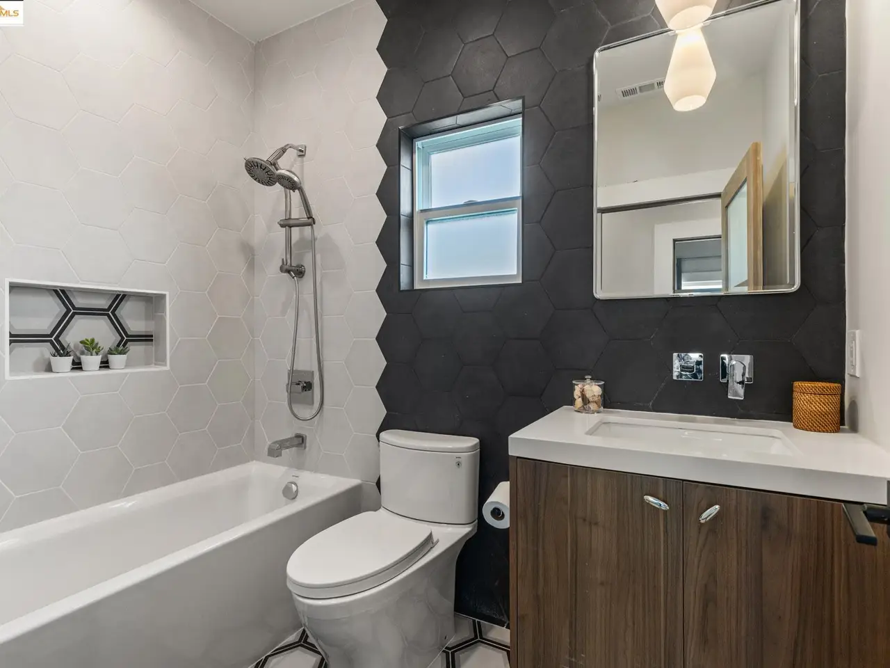 Welcome to this reimagined and remodeled home where stunning curb appeal meets sleek, high-end interiors. Modern landscaping, crisp white trim, bold black windows, and blooming bougainvillea set the stage. Inside, wide-plank wood floors, curated lighting, and designer finishes flow throughout. A sun-filled den and main-level bedroom and bath lead to a dramatic great room with soaring ceilings. The chef's kitchen features a central island for gathering, high end appliances, walk-in pantry, and two bifold doors which completely opens up the home to the landscaped backyard. Upstairs, you will find three bedrooms including a luxurious primary suite with balcony, walk-in closet, and spa bath with a huge designer soaking tub. Conveniently located close-by is a gracious bedroom, fun bath and another oversized en-suite room. A flexible alcove is ideal for a home-gym, office, play space or reading nook. Grand laundry room with so much storage! Detached storage shed and bike shed, EV charger, Nest thermostat and newer systems throughout. Fabulous North Oakland neighborhood with so much to offer: Bushrod and Dover Parks minutes away, trendy Temescal and Rockridge shops/restaurants, Whole Foods and BART! What more could you ask for!