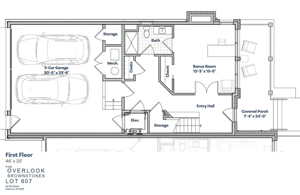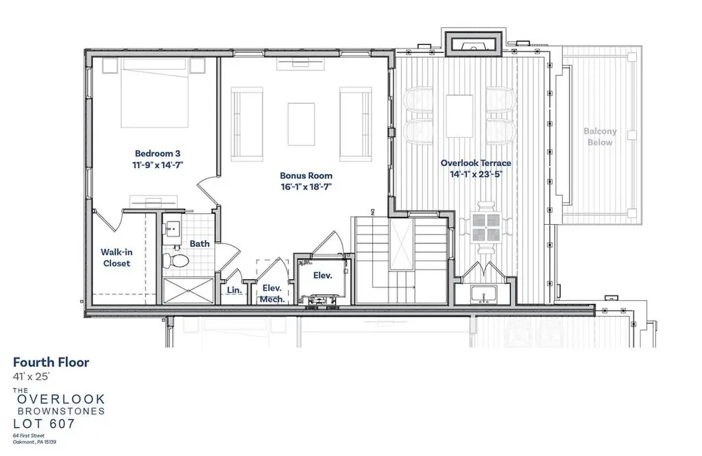 Welcome to the Overlook Brownstones, modern city-style vertical residences within The River's Edge of Oakmont community. This brand-new residence stands tall along the Allegheny River with water views from the multi-level balconies and large top-level terrace with fireplace. As a corner unit, many tall windows make it bright and airy. Interior features include an in-home elevator, open floorplan with 10-ft ceilings on main level, 3C/B?B=4-bedroom suites and bonus room. Finished to drywall stage > buyers can make interior selections and customize to their liking. The riverfront clubhouse for residents includes a fitness center, infinity pool, great room/party room, and fire-pit. Low-maintenance community C/B?B=no more cutting your grass! Paved walking trail along the water. Close to the shop and restaurants of the Oakmont business district. 30 minutes or less to Downtown, Oakland or Bakery Square.