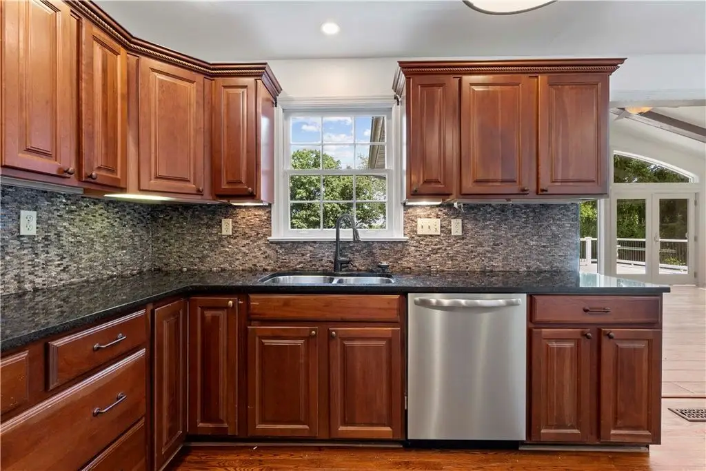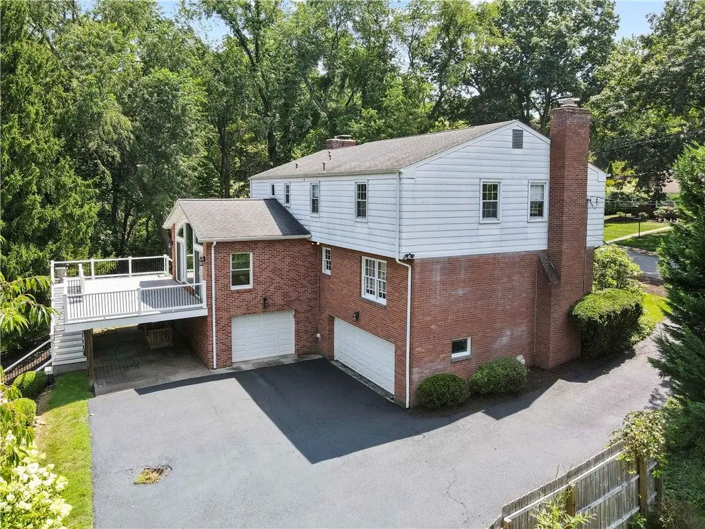 Spacious five-bedroom Brick Colonial backing to a Nature Preserve. Welcome to this beautiful American Dream Home! Two-story colonial on a desirable lot. From the entry with a wood & painted spindle staircase you'll find a gracious place to welcome your guests with a convenient powder room & guest closet. Gleaming hardwood floor throughout the home. The exciting family room features a distinctive wood burning fireplace, beamed ceilings that expands to a larger room with vaulted ceilings & dramatic window wall overlooking the private tiered yard & expansive deck, for outdoor enjoyment with a view of Falling Springs Park. Kitchen boasts granite counters, wood cabinets & stainless steel appliances, make it a functional works space for the home cook. Formal Dining Room adjoins the living room with a gas fireplace & large picture window. Upstairs finds the primary suite & four sizable bedrooms & hall bath. Finished lower level with wet bar & full bath, perfect for playroom or home office. 3 car garage!