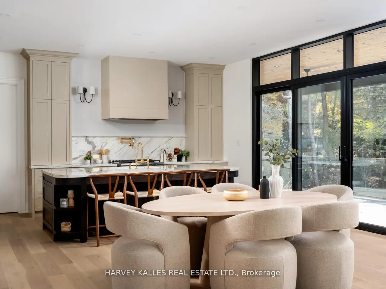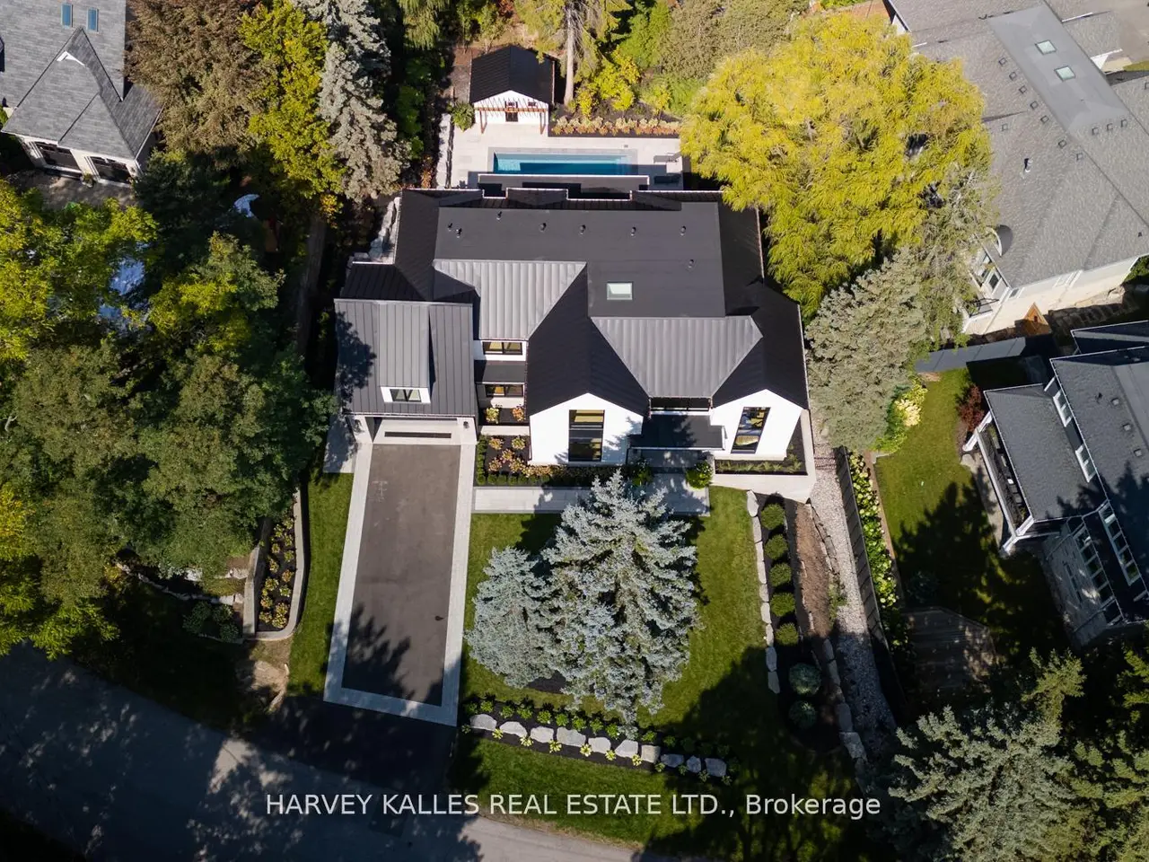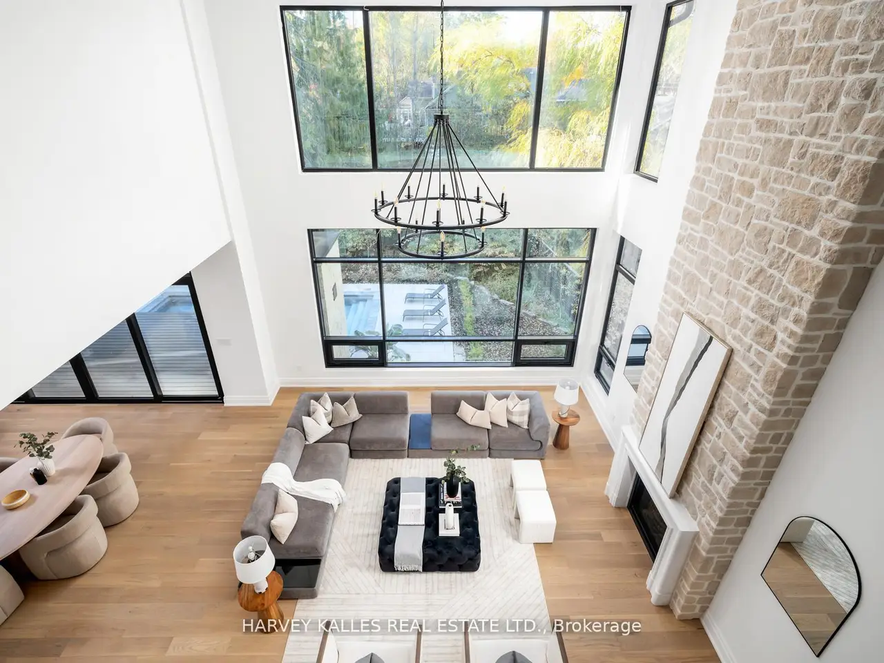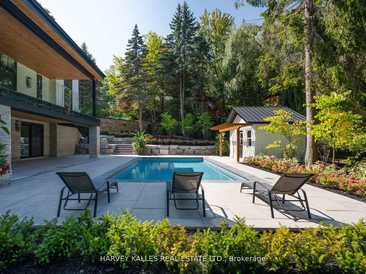 Tucked away on a coveted cul-de-sac in South Oakville, just steps from Lake Ontario, stands a residence that feels as much a work of art as it is a home. Designed by architect David Smalls, this 6,500sq.ft. haven is a study in quiet luxury where proportions, textures, and natural light compose an atmosphere of effortless refinement. From the moment you enter, the foyer reveals the homes narrative: a seamless dialogue between architecture and nature. Towering windows in the living room frame a canopy of mature trees, dissolving the boundaries between indoors and out. The kitchen is a chefs sanctuary, anchored by an oak island, marble countertops, and integrated appliances. A discreet, well-appointed servery hides just beyond, while the adjacent formal dining room invites candlelit evenings and intimate gatherings. A covered deck, complete with outdoor fireplace, extends the living space, while the organized mudroom and powder room round out the main levels composition. Upstairs, the primary suite is a private retreat of understated opulence, offering dual walk-in closets and a spa-like ensuite swathed in natural stone. Down the hall, three additional bedrooms each boast their own walk-in closets and ensuite or Jack-and-Jill bathrooms. The walk-out lower level is conceived for whole-home living: a gym, office, guest bedroom, and entertaining area with gas fireplace and wet bar open directly to the outdoors. Here, a covered terrace spills onto the backyards crown jewela heated saltwater pool framed by lush landscaping for ultimate privacy. Every detail has been considered: 10ft. ceilings on the main floor, 9ft. ceilings above and below, heated tile floors, three fireplaces, a three-car tandem garage, central vacuum, irrigation, and a smart-home lighting system. Set within walking distance to Downtown Oakville, moments from top public and private schools, this home is a sanctuary for those who value architecture that whispers its luxury rather than shouts it.