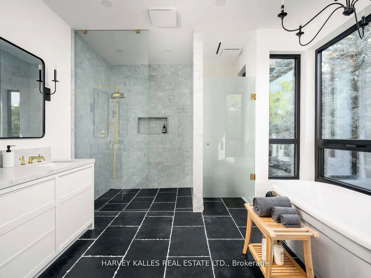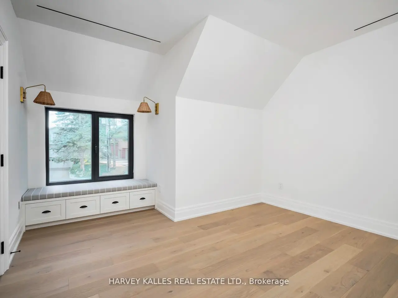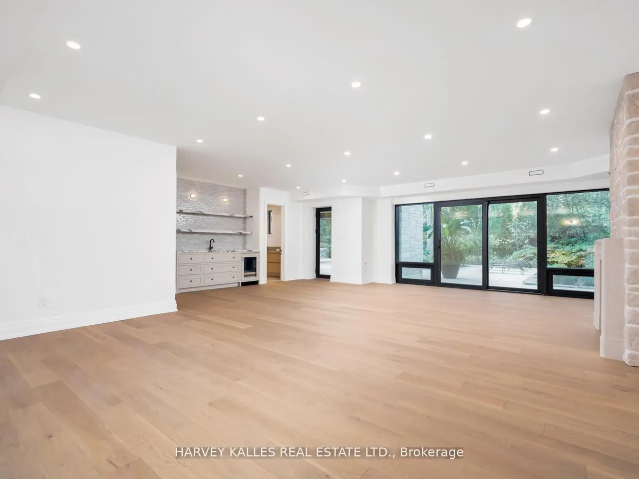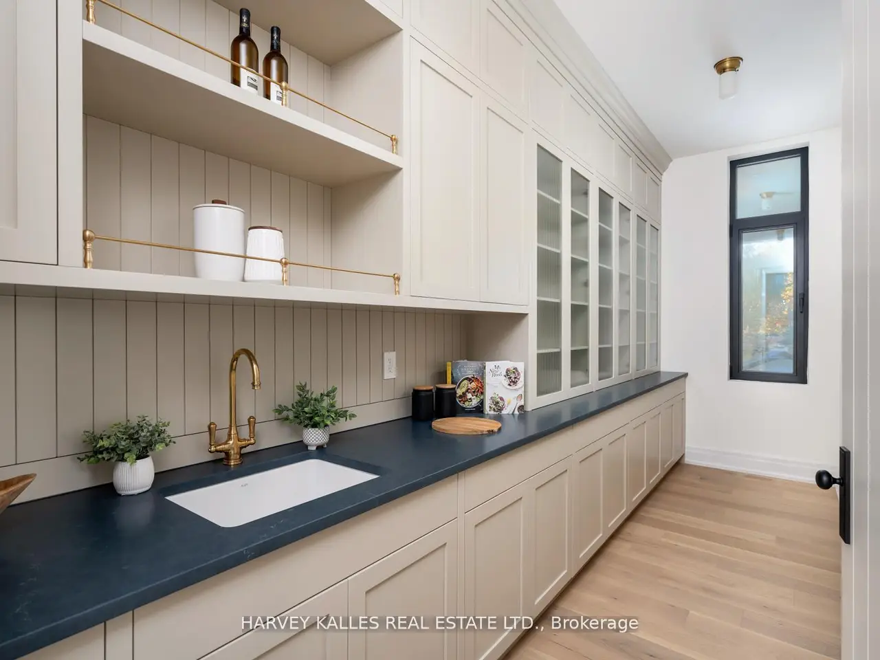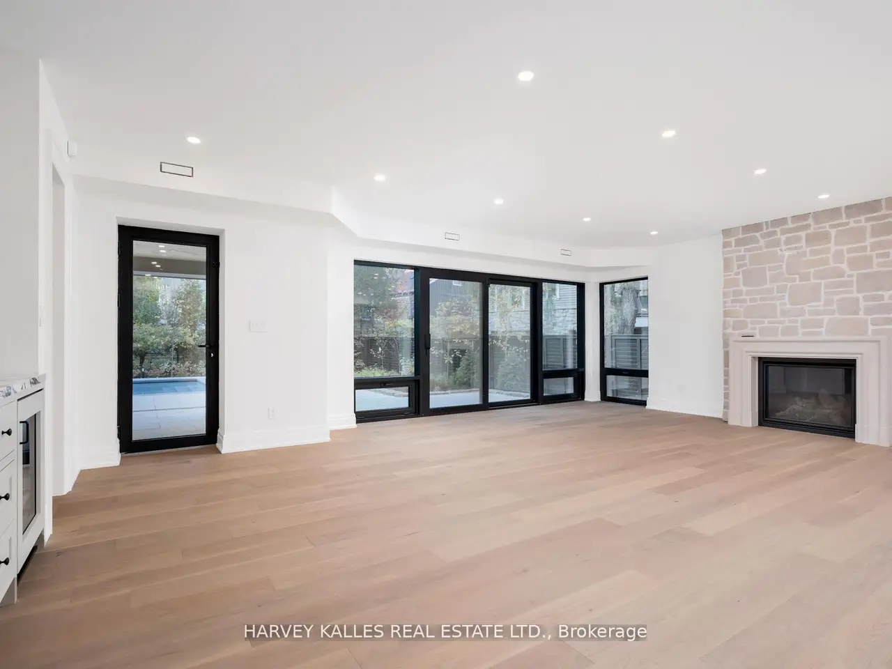 Tucked away on a coveted cul-de-sac in South Oakville, just steps from Lake Ontario, stands a residence that feels as much a work of art as it is a home. Designed by architect David Smalls, this 6,500sq.ft. haven is a study in quiet luxury where proportions, textures, and natural light compose an atmosphere of effortless refinement. From the moment you enter, the foyer reveals the homes narrative: a seamless dialogue between architecture and nature. Towering windows in the living room frame a canopy of mature trees, dissolving the boundaries between indoors and out. The kitchen is a chefs sanctuary, anchored by an oak island, marble countertops, and integrated appliances. A discreet, well-appointed servery hides just beyond, while the adjacent formal dining room invites candlelit evenings and intimate gatherings. A covered deck, complete with outdoor fireplace, extends the living space, while the organized mudroom and powder room round out the main levels composition. Upstairs, the primary suite is a private retreat of understated opulence, offering dual walk-in closets and a spa-like ensuite swathed in natural stone. Down the hall, three additional bedrooms each boast their own walk-in closets and ensuite or Jack-and-Jill bathrooms. The walk-out lower level is conceived for whole-home living: a gym, office, guest bedroom, and entertaining area with gas fireplace and wet bar open directly to the outdoors. Here, a covered terrace spills onto the backyards crown jewela heated saltwater pool framed by lush landscaping for ultimate privacy. Every detail has been considered: 10ft. ceilings on the main floor, 9ft. ceilings above and below, heated tile floors, three fireplaces, a three-car tandem garage, central vacuum, irrigation, and a smart-home lighting system. Set within walking distance to Downtown Oakville, moments from top public and private schools, this home is a sanctuary for those who value architecture that whispers its luxury rather than shouts it.