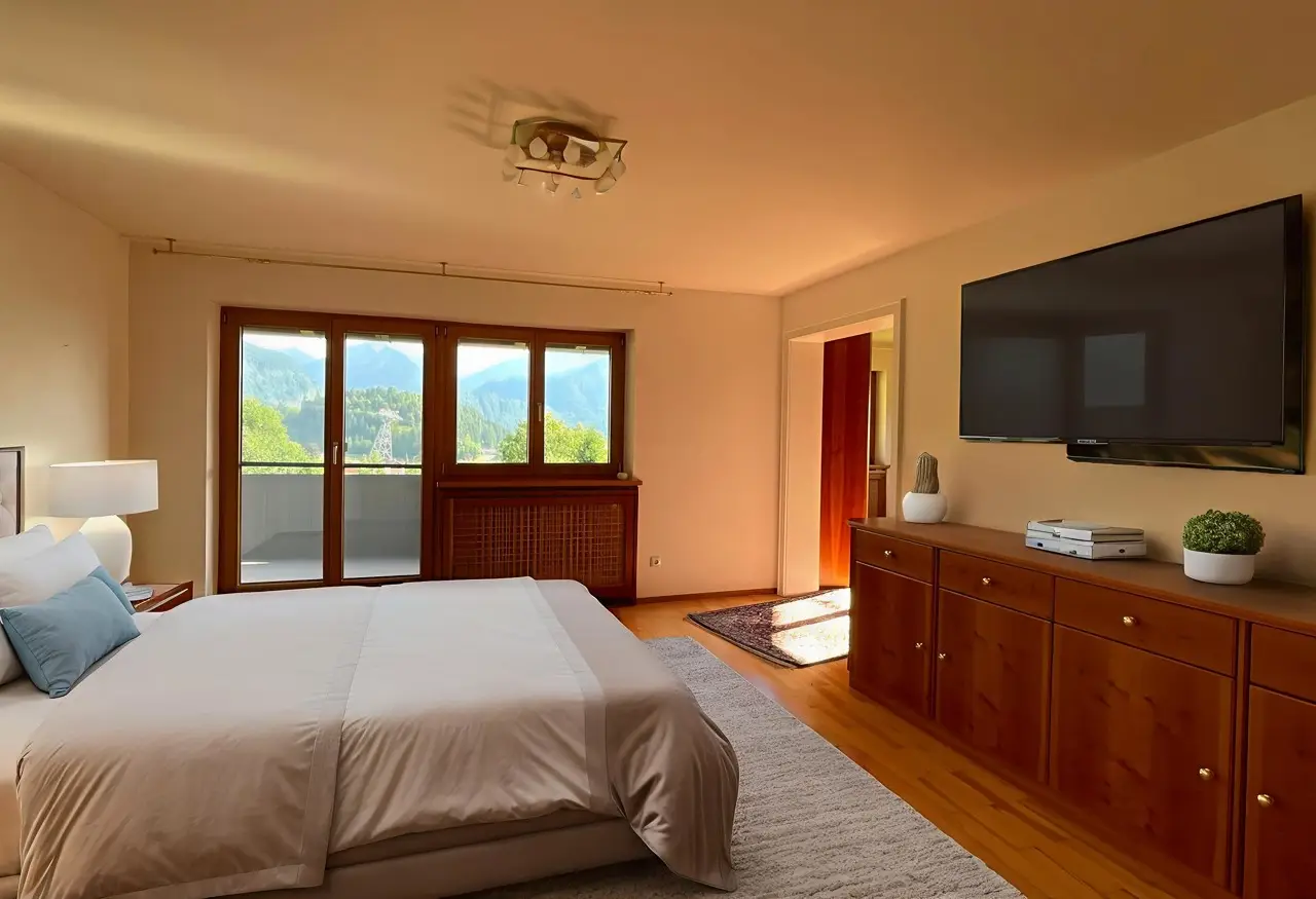 In one of the most sought-after and at the same time rarest locations that Oberstdorf has to offer, this detached house presents itself as a real gem - a property that only comes on the market once in a generation. The address "Am First" is already one of the village's premium locations per se, but this property occupies an absolute top position among them. In the middle of the exclusive residential areas "Plattenbichl" and "Am First", this property stands out as a top location - with an unobstructable panorama, absolute tranquillity and a plot size that is hard to find today. The special atmosphere greets you as soon as you enter: stylish architecture, lovingly preserved elements from the 1959 construction year and a condition that impresses with continuous maintenance and high-quality modernization. The exterior is characterized by mature structures and an elegance that is never loud, but always present. The property offers breathtaking views of the surrounding mountains - including unobstructed views of the ski jump - while at the same time offering absolute privacy. The spacious outdoor seating areas on both floors have been designed with a keen sense of orientation and panorama and invite you to linger at any time of day. The interior of the house is characterized by fine materials, extraordinary details and furnishings that are above average even for the year of construction. High-quality parquet flooring (partly in a herringbone pattern), elaborate solid wood ceilings, coffered ceilings and well thought-out fixtures run through the entire house. Windows and shutters have been continuously modernized - the stylish folding shutters on the upper floor in particular underline the charming overall appearance. With three bedrooms and three bathrooms on two floors, the room layout offers an ideal setting for families, guests or retreats. Particularly noteworthy is the integrated wellness area with sauna, large shower and relaxation zone - an oasis of relaxation with direct access to the outdoor seating area. The technical infrastructure has been extensively renovated and future-proofed: a modern pellet heating system was installed just last year - a reliable and efficient heating system with generous buffer storage. In addition, the basement area was professionally protected and structurally upgraded to ensure a dry, stable indoor climate - discreetly and sustainably implemented without visibly interfering with the fabric of the building. The garage is directly connected to the house, heated and accessible via a garage forecourt, which is also suitable as an additional parking space. This property is not just a house - it is a rare piece of Oberstdorf living culture that offers its new owners much more than just a home: a retreat, a center of life, a place for lasting memories. Such properties are not usually sold - they are inherited. The fact that it is now coming onto the market is a unique opportunity for lovers of exclusive properties in exceptional locations. An offer of exceptional quality - for people who are looking for something special and appreciate the rare.