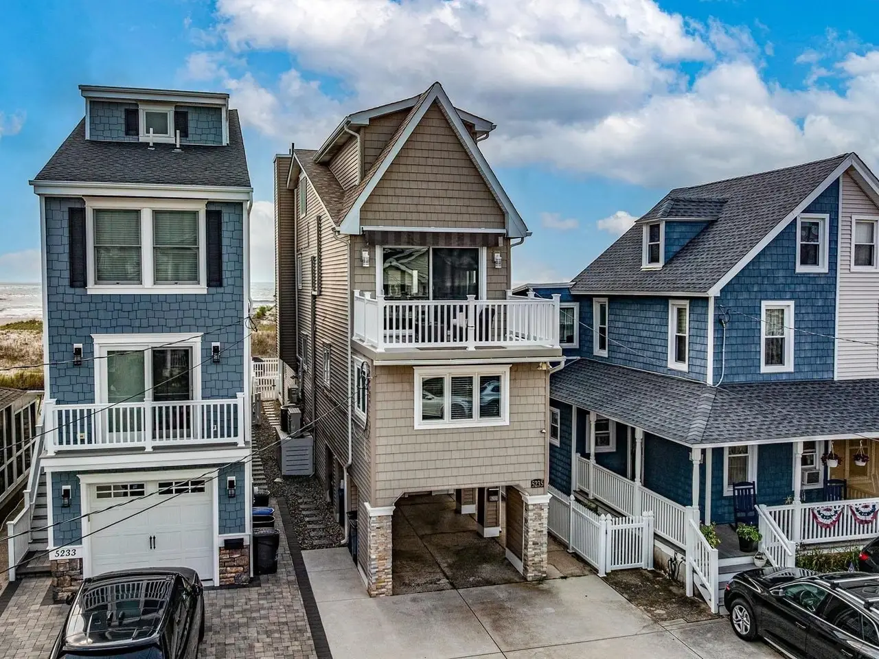 BEACHFRONT BEST BUY! From Brigantine to Cape May you will NOT find a more affordable single-family beachfront home along the South Jersey Shore coastline. Built on a unique 20 x 100-foot lot, this 2,200 square foot home is larger than most four bedroom, three bath condos and captures ocean views from multiple vantage points. Entering in the front door, you're greeted with the option of going up the steps or making a right into the ground floor bedroom complete with a full bath, that can be used as the primary bedroom if desired. Just off that bedroom is a covered deck. A few short steps up take you to another full bath that also services two more spacious bedrooms and some hall storage. Going up the stairs to the next level is the well-appointed kitchen with a cathedral ceiling, counter seating and an eat-in dining area. Step out onto the sweeping rear deck for panoramic ocean views during the day and star-gazing at night while enjoying the lights of the coastline. Up to the left is the sizable Living Room large enough to fit the whole family; featuring a big flat screen TV with Sonos Audio Technology, enough space to also include a sitting area with ocean views and complete with an expansive front deck great for happy hour as the sun sets, and covered by a retractable awning. The entire top floor hosts the Master Bedroom with an ensuite bathroom and multiple closets, including a walk-in closet. The split-level design utilizes all the space and gives this Beach House a comfortable flow while taking advantage of all the views and outdoor spaces that make Shore Living your Peace of Paradise. The ground floor area boasts parking for three cars, an oversized storage room, enclosed outside shower, outdoor staircase leading up to rear deck, patio-paver area for sunbathing and an elevated deck over the bulkhead for additional outdoor space when entertaining. This is your chance to buy that Beachfront Oasis in the South-end of Ocean City NJ. Easy to show. Call today for your private showing.