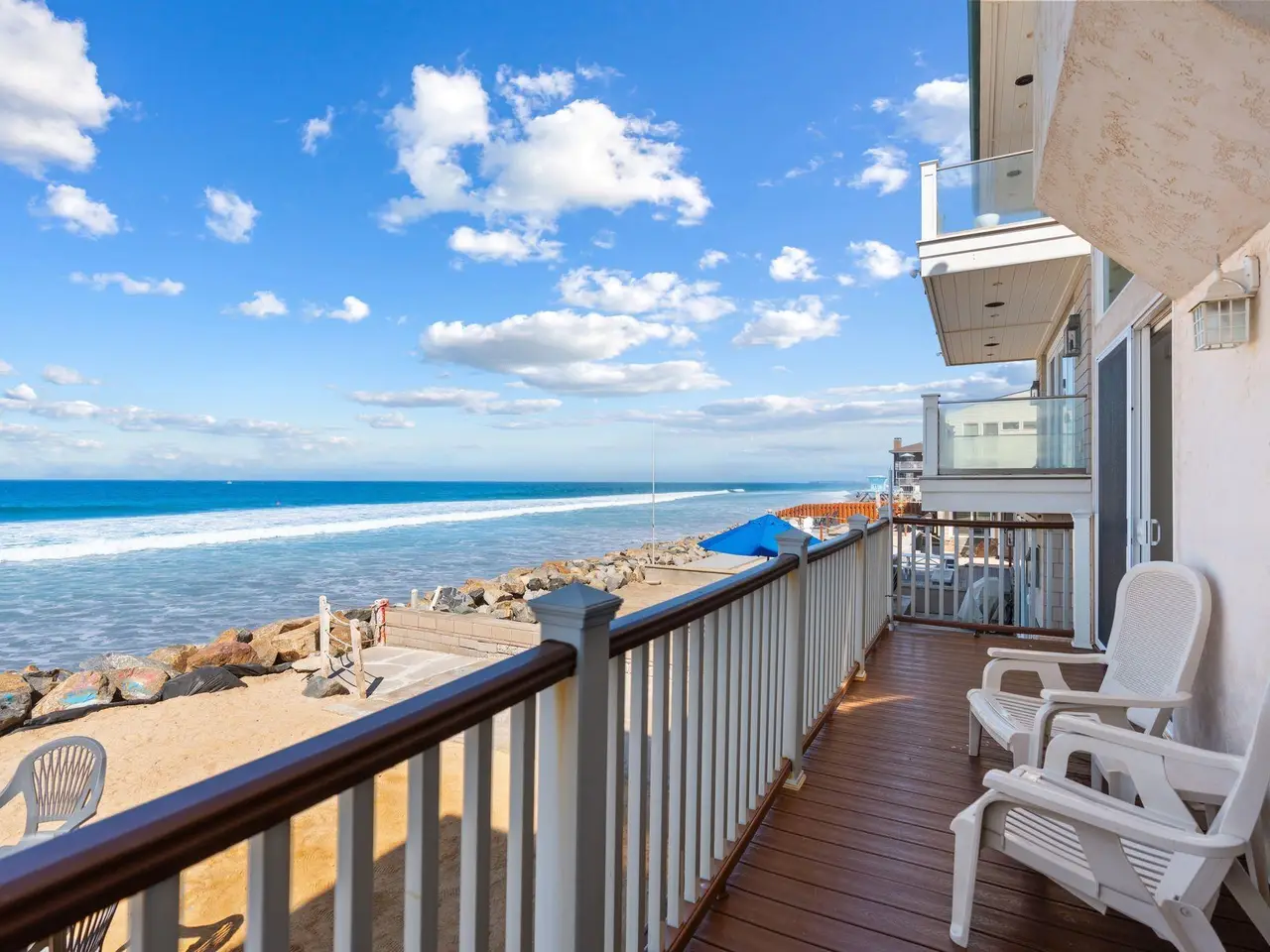 Oceanfront Townhome with Unrivaled White Water Views! Perfectly positioned in a quaint 13-unit oceanfront community, this 3 bed, 2.5 bath townhome offers panoramic, uninterrupted white water views and the rare luxury of the complex’s private sandy beach with firepit just steps from your door. At 1,860 square feet, this end-unit feels like a standalone home, with no one above or below and direct access into a private two-car garage. The home was thoughtfully remodeled in 2020 with a clean, coastal esthetic featuring ceramic plank flooring, refreshed bathrooms, an updated kitchen with new appliances and gas cooking, all-new windows, and fully redone plumbing. Enjoy ocean views from nearly every angle, whether you're gathered around the fireplace in the soaring living room, entertaining from the elevated kitchen and dining area, or relaxing on your private oceanfront deck. The primary suite offers space and privacy, while two additional ocean-view bedrooms make hosting a breeze. The home is offered fully furnished and turnkey ready for you to move in and enjoy the beach life from day one. Located in a highly walkable pocket of Oceanside, you're just steps to Buccaneer Cafe and minutes to downtown’s newest restaurants, trendy coffee shops, and the iconic Oceanside pier. Whether you're looking for a refined second home or the perfect year-round beach escape, this is a rare opportunity to own oceanfront in one of North County's most coveted locations.