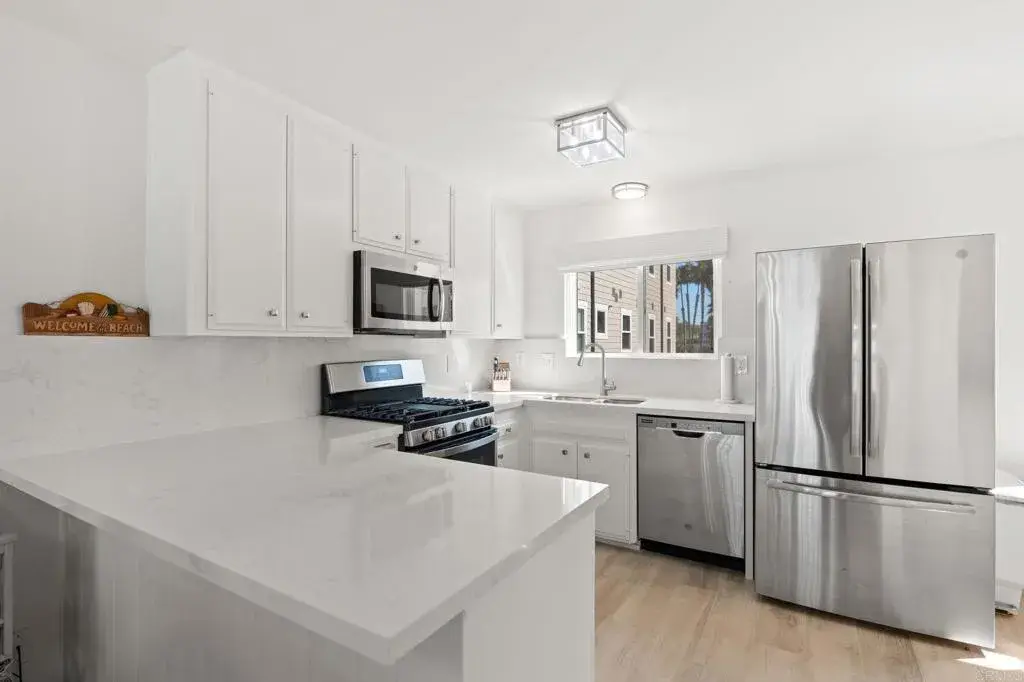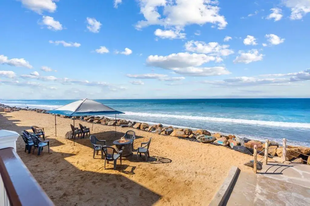 Oceanfront Townhome with Unrivaled White Water Views! Perfectly positioned in a quaint 13-unit oceanfront community, this 3 bed, 2.5 bath townhome offers panoramic, uninterrupted white water views and the rare luxury of the complex's private sandy beach with firepit--just steps from your door. At 1,860 square feet, this end-unit feels like a standalone home, with no one above or below and direct access into a private two-car garage. The home was thoughtfully remodeled in 2020 with a clean, coastal esthetic -- featuring ceramic plank flooring, refreshed bathrooms, an updated kitchen with new appliances and gas cooking, all-new windows, and fully redone plumbing. Enjoy ocean views from nearly every angle -- whether you're gathered around the fireplace in the soaring living room, entertaining from the elevated kitchen and dining area, or relaxing on your private oceanfront deck. The primary suite offers space and privacy, while two additional ocean-view bedrooms make hosting a breeze. The home is offered fully furnished and turnkey--ready for you to move in and enjoy the beach life from day one. Located in a highly walkable pocket of Oceanside, you're just steps to Buccaneer Cafe and minutes to downtown's newest restaurants, trendy coffee shops, and the iconic Oceanside pier. Whether you're looking for a refined second home or the perfect year-round beach escape, this is a rare opportunity to own oceanfront in one of North County's most coveted locations.