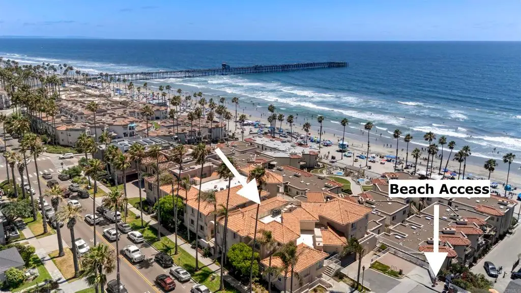 Start your mornings with blue ocean views and end your days with unforgettable sunsets over the Pacific. Perfectly positioned just north of the iconic Oceanside Pier, this stunning beach condo offers sweeping white-water views and effortless close by beach access--your personal front-row seat to coastal living. Step inside to an upgraded and move-in ready home where the Pacific Ocean is your backdrop. Catch ocean views from the open-concept kitchen and living room, or relax on your private balcony as the sun dips into the horizon. The primary bathroom has been tastefully updated with a large walk-in shower, adding to the refined coastal aesthetic. This two-bedroom, two-bath retreat is located in an intimate 15-unit gated community and features central A/C, in-unit laundry, two secure garage parking spaces, storage locker, and community bicycle storage room. Whether you're strolling to the beach, dining at nearby restaurants, sipping a coffee at a local cafe, or browsing boutiques and breweries, everything you love about Oceanside is just steps away. Community amenities include a shared BBQ and dining area perfect for summer evenings. Ideal as your primary residence or your personal getaway, this rare offering invites you to live the dream lifestyle--where every day feels like a vacation.