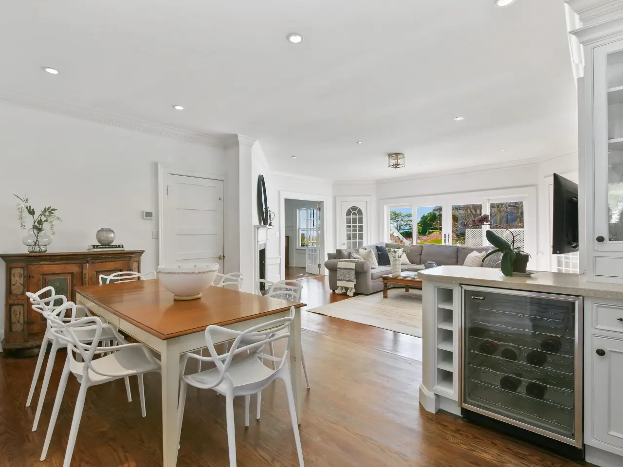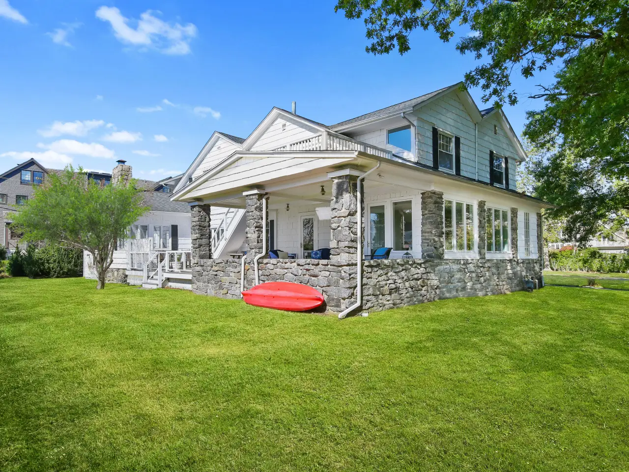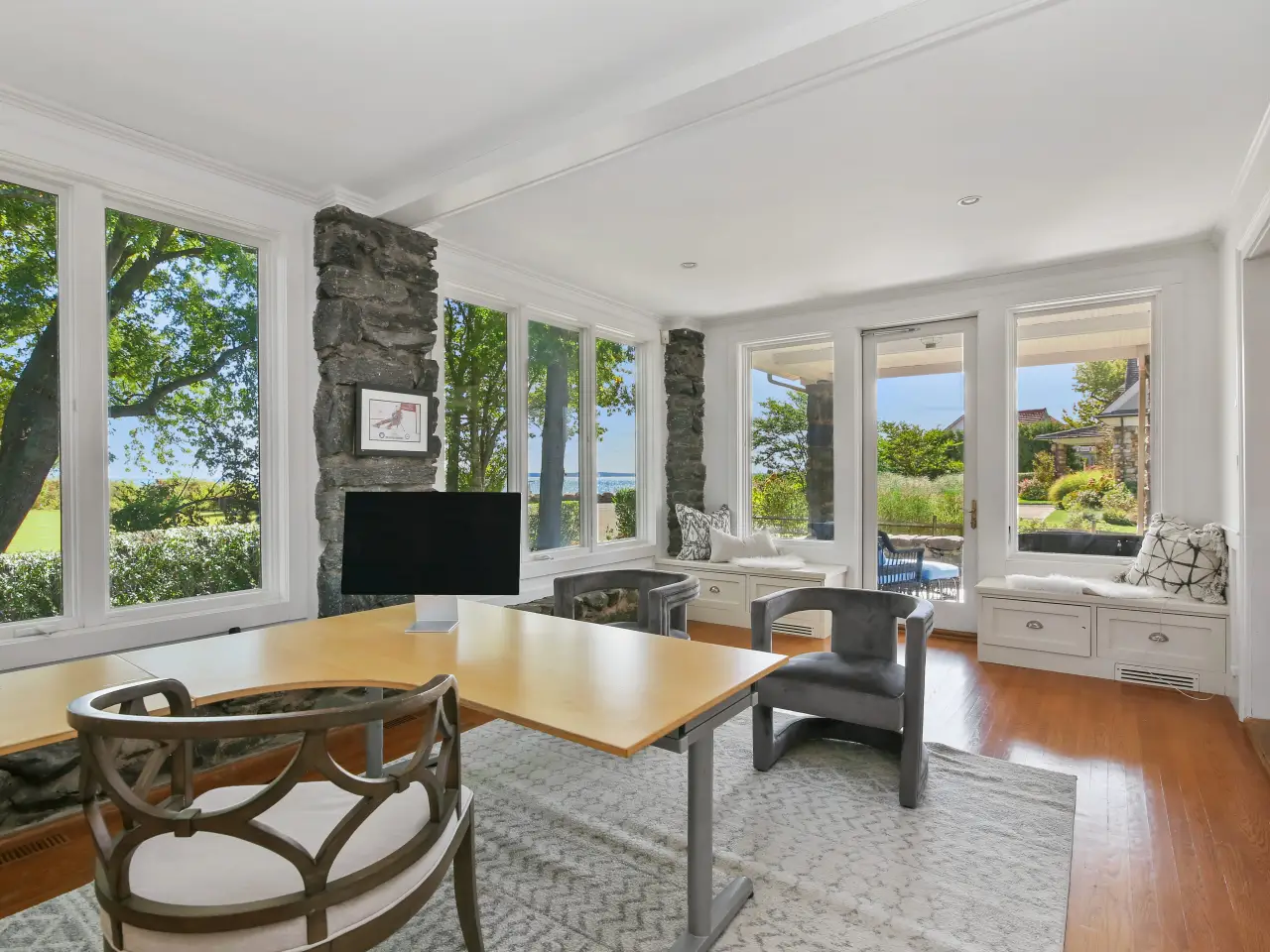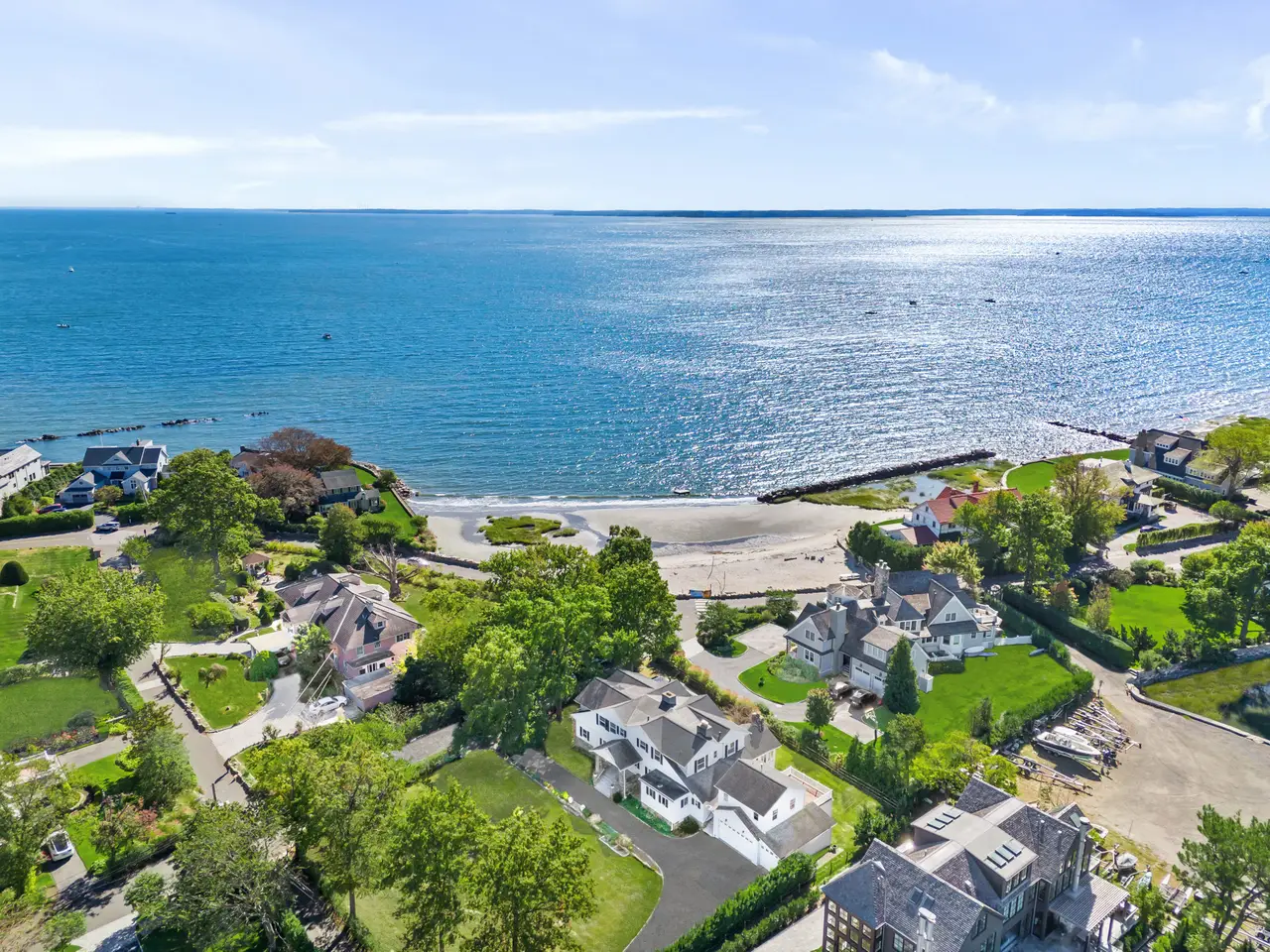 Three Cove Road is one of those properties that rarely comes to the market. This distinguished six-bedroom stone and shingle classic is situated in the coveted private association of Lucas Point and epitomizes timeless coastal New England architecture with exceptional water views from all levels. The residence enjoys panoramic east-to-west vistas, a treasured oversized level lot (.56 acres) and deeded access to a private beach, boatyard and dock just steps away. A charming porte-cochere and Dutch door welcome you into light-filled, open-plan interiors where formal and casual spaces flow seamlessly. High ceilings and expansive windows enhance the sense of space and natural light throughout. The first floor features a grand living room with three exposures and remarkable stone fireplace, expansive dining room with fireplace, study, wine room and eat-in kitchen opening to a family room with doors to covered and uncovered entertaining spaces to enjoy the beach views. Upstairs, six unique bedrooms each offer charm and comfort. The primary suite is a retreat in itself boasting a private balcony overlooking the Sound and Greenwich Cove. Additional finished bonus space with bathroom above three car garage for playroom or private office. This exceptional property allows for outdoor living at its best from kayaking/paddle boarding in open water as well as serene coves, to relaxing at the association's dock and private beach. Enjoy morning coffee or evening cocktails from the upstairs or downstairs decks, taking in spectacular sunrises and sunsets. Just moments from Tod's Point, the village of Old Greenwich, and everything this vibrant coastal community has to offer. The property has a large lawn and room for a pool and expansion too!