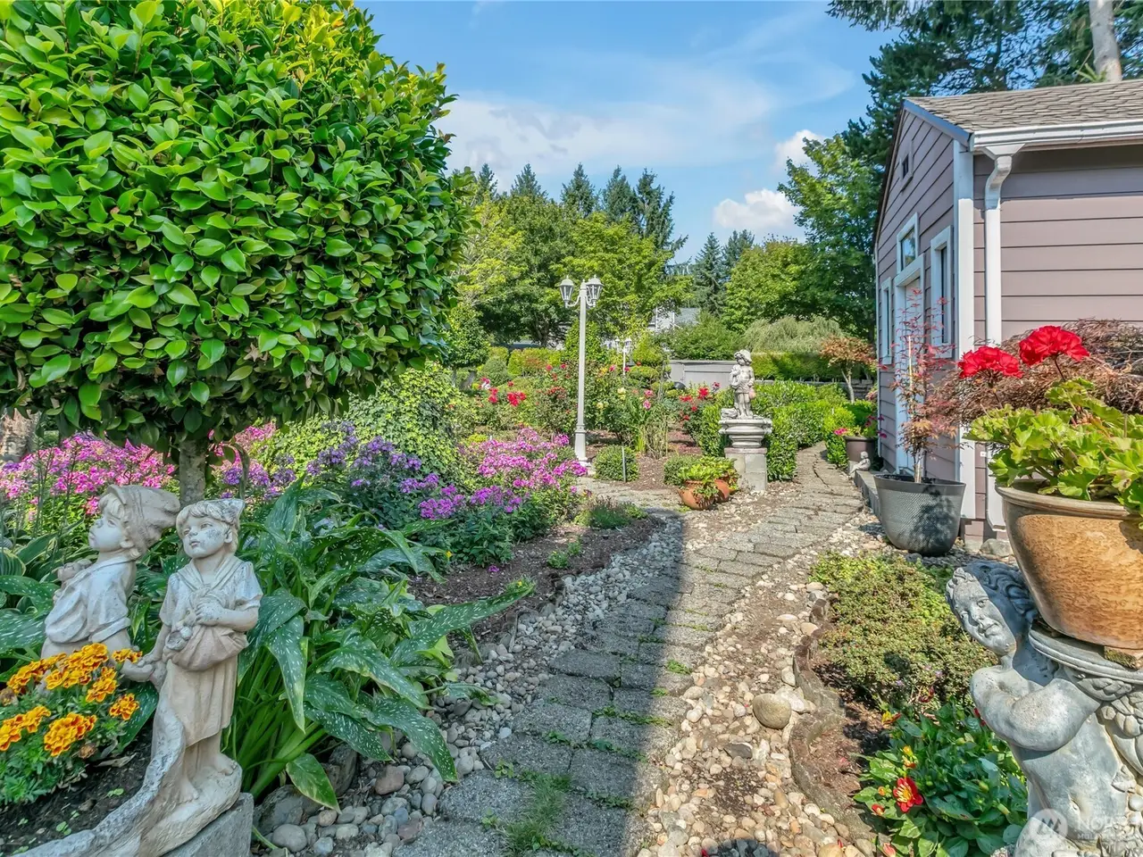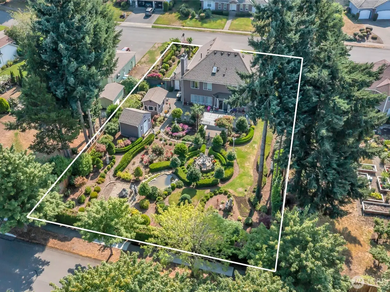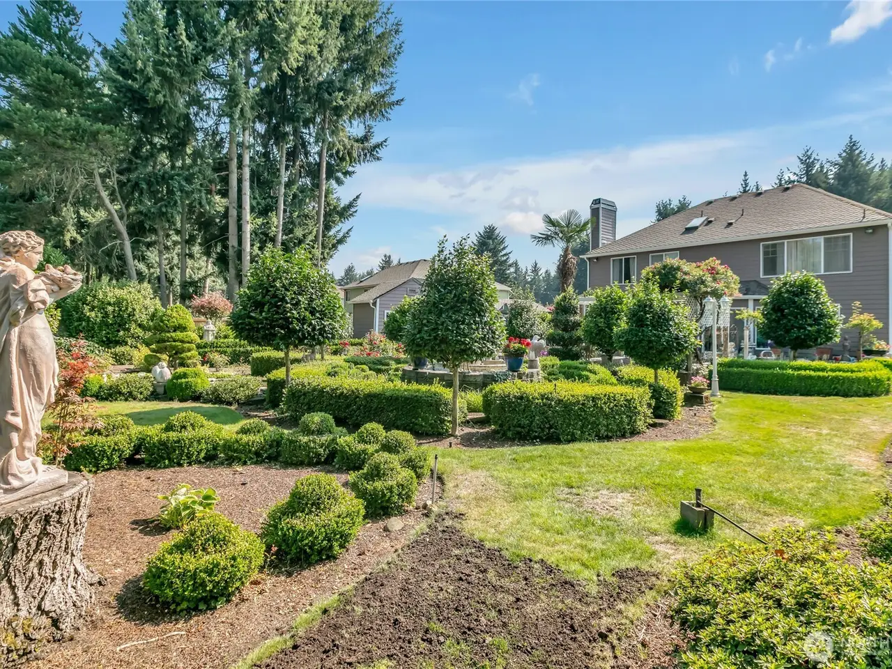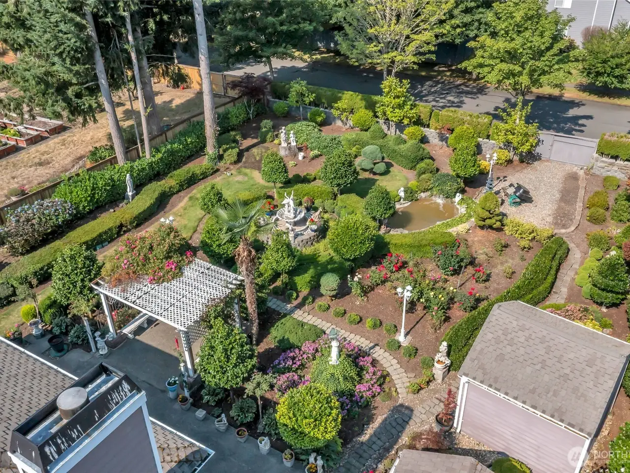 Discover a home where elegance meets lifestyle in this 4-bedroom residence with loft and bonus room. The inviting stone-accented exterior, arched entry, and covered porch with water feature welcome you inside to soaring ceilings, arched walls, & radiant Czech crystal chandeliers. The gourmet kitchen with island, gas cooktop, and double oven flows seamlessly to the dining area and family room with fireplace, perfect for gathering and entertaining in comfort. Retreat to the vaulted primary suite, unwind in the versatile living spaces, and enjoy year-round comfort with A/C. Outside, the private garden retreat enchants with stone paths, fountains, gazebo, pond, oversized patio, & relaxing hot tub. An entertainer's dream and gardener's paradise