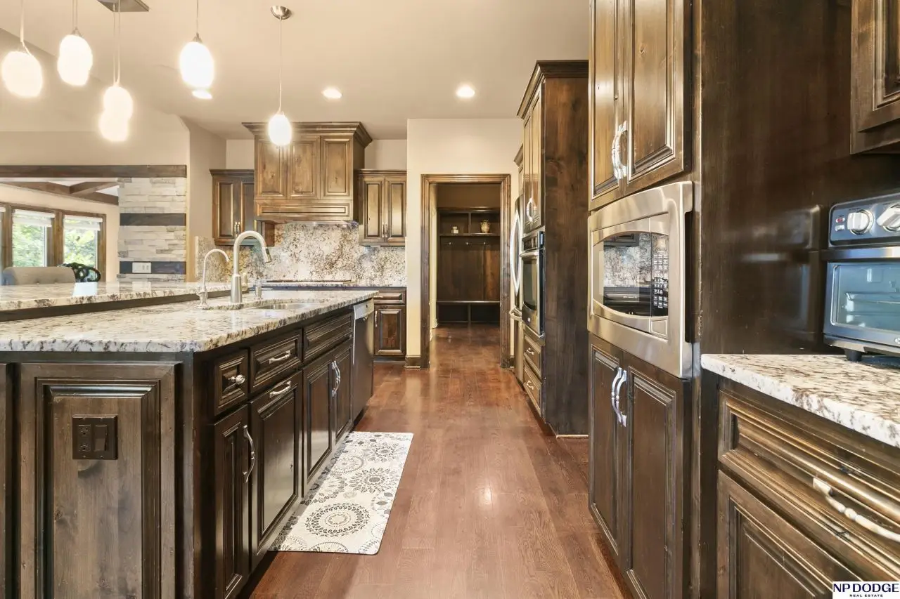Turn the key and move right in to one of Elkhorn's favorite neighborhoods. This special 2-story in West Bay Woods 2 has been meticulously maintained and is now available. Striking finishes, craftsman meets modern. Very warm, extremely inviting and the ideal floorplan to entertain or relax. Hardwood floors and a tasteful kitchen with large hearth room, great room, formal and informal dining spaces and so much more. All 2nd floor bedrooms have direct bath access. Lower level has 5th bedroom, large rec room with fireplace, office/flex room, theater room and hidden storage/utility spaces. Beautiful, mature landscaping. Walk to school. Minutes from Zorinsky Lake and countless shopping/dining options. Some of the best construction quality in the area. Pre-Inspected.