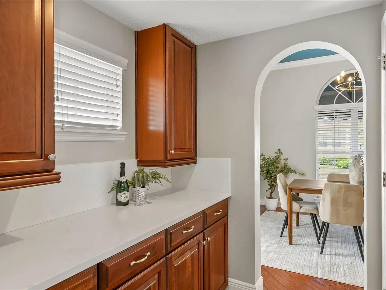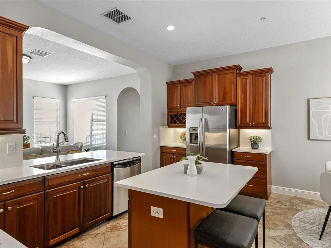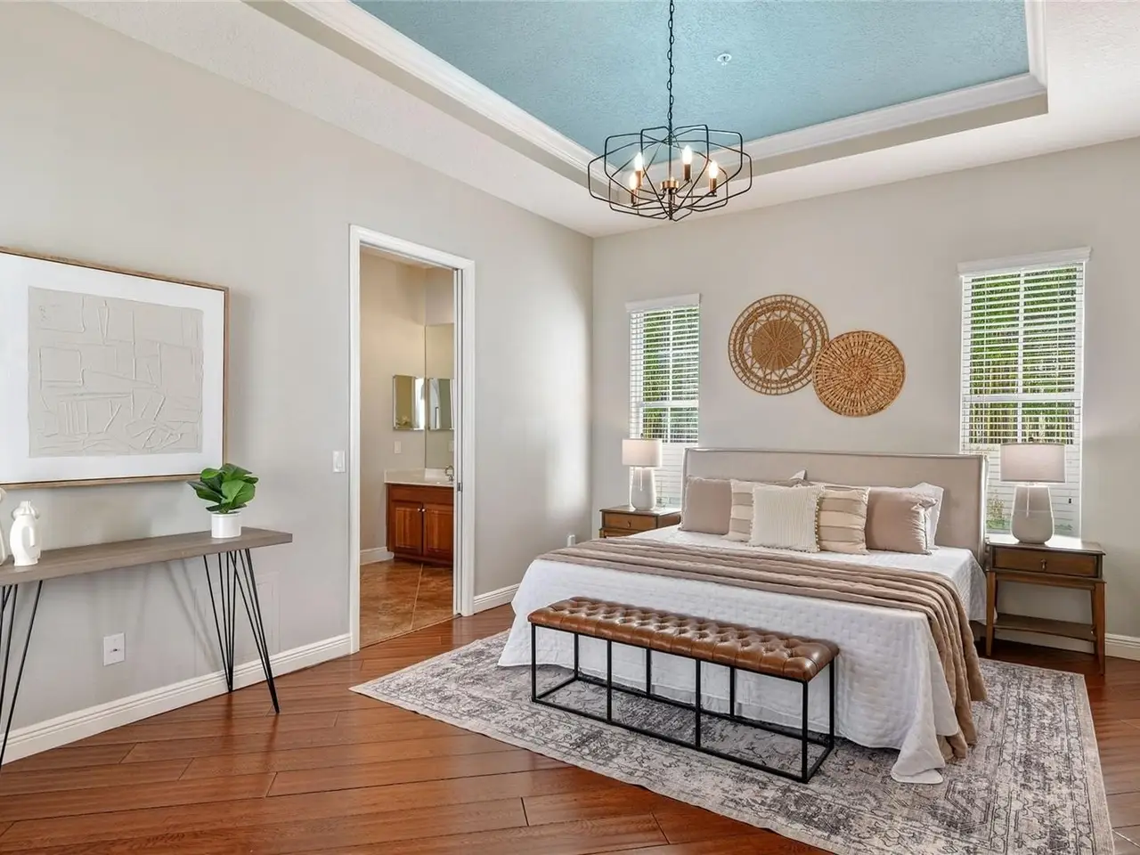 Prepare to be captivated by this stunning Mediterranean-style home in the heart of Baldwin Park—one of Orlando’s most desirable neighborhoods. This beautifully designed residence offers exceptional space, featuring a rare detached three-car garage with a full-size garage apartment—perfect for guests, in-laws, or generating rental income. Inside the main home, you’ll find three spacious bedrooms plus a large bonus room - providing plenty of room for everyone. Tons of natural light pours into every corner of the home. The formal dining and living rooms boast rich hardwood floors, with the living room offering an ideal space for a home office or sitting area. The open-concept family room and kitchen create a warm and inviting space, overlooking the freshly sodded backyard. The kitchen is equipped with solid wood cabinetry, quartz countertops with breakfast bar seating, stainless steel appliances, and a cozy eat-in nook. A convenient butler’s pantry between the kitchen and dining room makes entertaining a breeze. The first-floor primary suite offers both privacy and convenience, featuring hardwood floors, a luxurious en-suite bathroom with dual vanities, a walk-in shower, jetted tub, and a custom walk-in closet by Closets by Design. Upstairs, you’ll find two additional bedrooms, both with custom-built closets, as well as a spacious bonus room also with a custom designed closet that could easily be converted into a fourth bedroom if desired. Inside laundry room with custom storage. Outdoor living is just as impressive, with a covered lanai with pavers, a fenced backyard for added privacy, and plenty of room to relax or entertain. The detached garage apartment has its own private entrance and offers full-size living quarters with kitchen, bath, walk-in closet and washer and dryer—a rare and valuable addition. The rear-entry three-car garage has a private driveway and is already wired for an EV. Ample space for vehicles, storage, or even a workshop. This home is located just steps from the Cady Way Trail as well as a short walk to one of Baldwin Park’s pools and playgrounds. With three community pools, two fitness centers, plenty of parks and playgrounds and tons of shopping and dining- you really can’t beat the Baldwin Park lifestyle! Don’t miss your opportunity to own this exceptional Baldwin Park home that perfectly blends timeless Mediterranean charm with modern convenience. Welcome home!