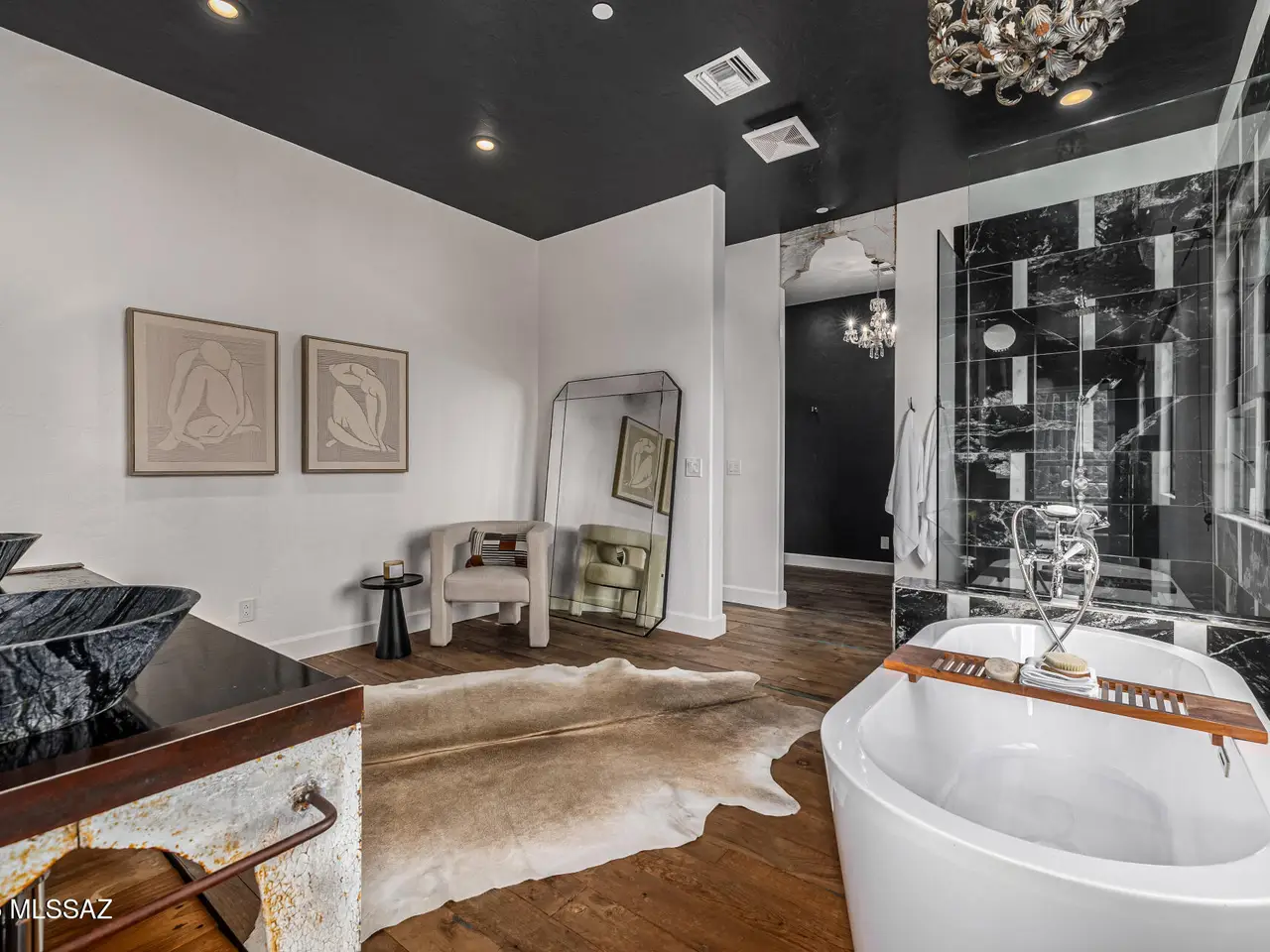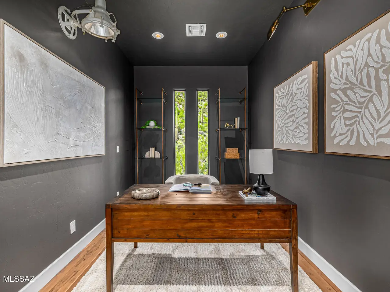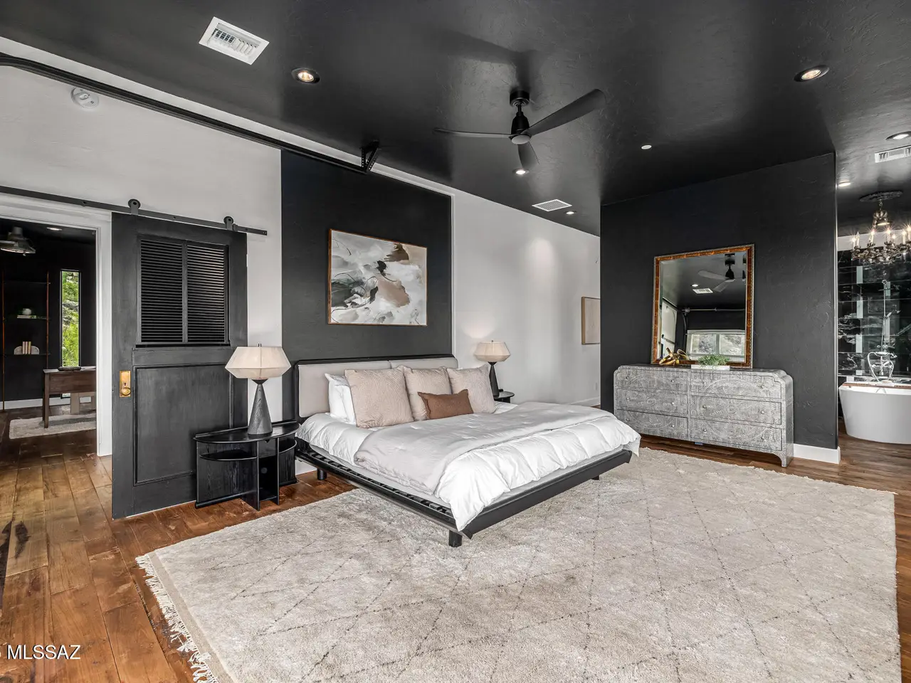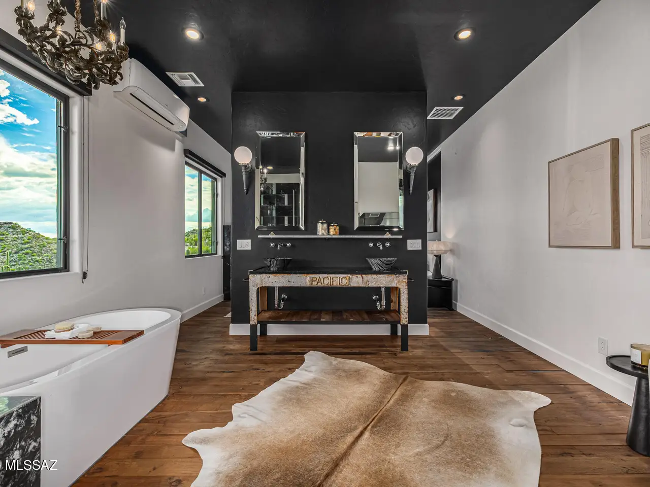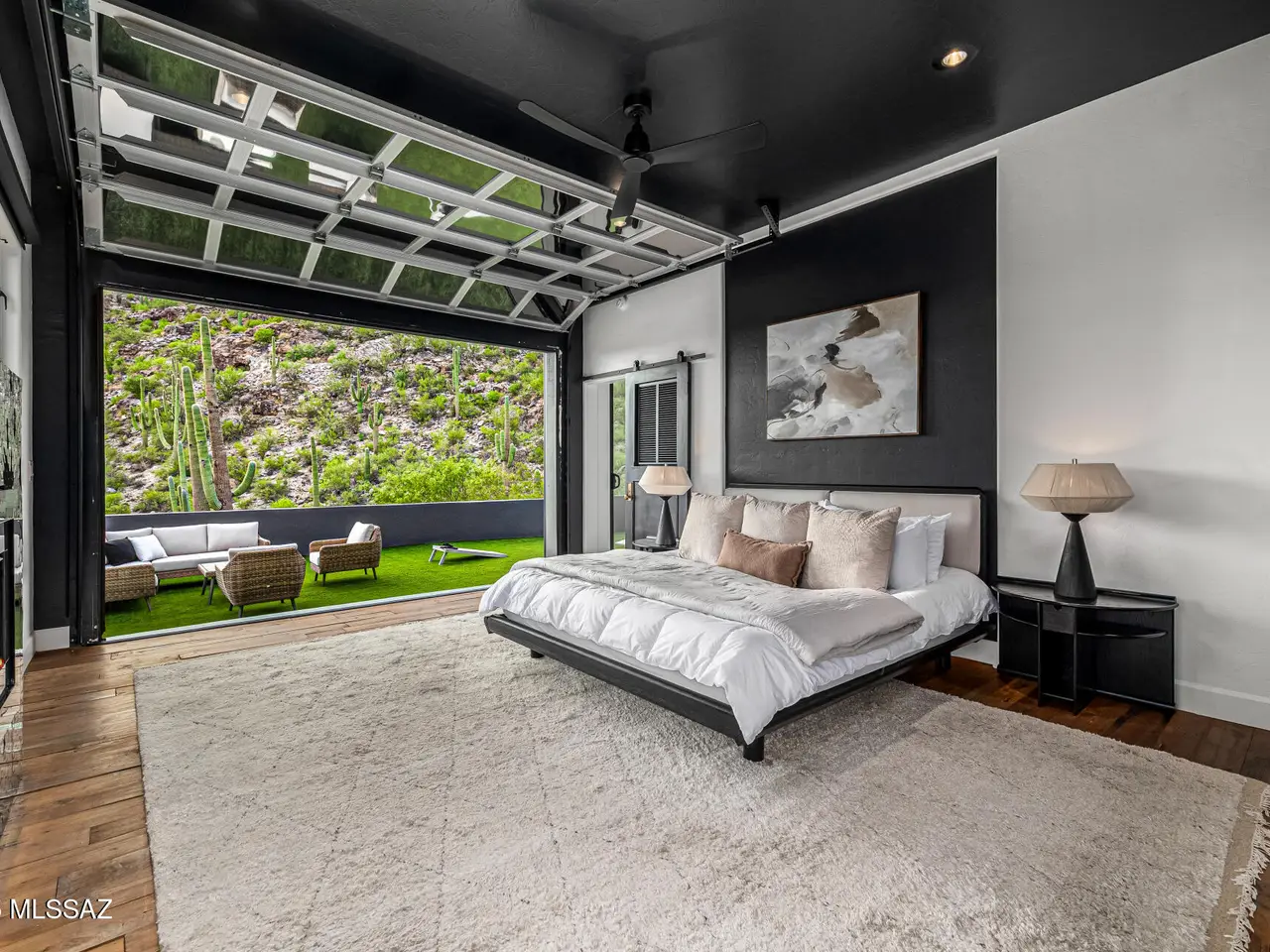 Nestled deep in the scenic Tortolita Mountains, this fully custom-built 2018 estate combines refined design with extensive upgrades inside and out. The property welcomes you with an asphalt driveway, elegant paver accents, and professionally landscaped grounds featuring outdoor lighting, solar lamps, a decorative fountain, and a custom-finished front entry. All the doors used in the home were from the historic Hotel Hidalgo! The roof has been resealed and the exteriors freshly repainted. Enjoy resort-style outdoor living with a sparkling pool (new heater), a mesquite-mantle fireplace with a custom screen, propane starter, built-in barbecue mechanics, and decorative fencing. Set against a backdrop of untouched desert beauty, the estate offers breathtaking 360-degree panoramic views of Tortolita Mountains. Expansive windows and outdoor living spaces capture glowing sunrises, dramatic sunsets, and sparkling city lights after dark. Natural desert wildlife surrounds the property, creating a private sanctuary with a front-row seat to the beauty of the Sonoran Desert. Inside, the upgrades continue with quartz kitchen countertops, a waterfall island, refinished cabinetry and hutch, and updated hardware and lighting. The great room showcases a propane fireplace setup with custom logs, while electrical dimmers and halogen bulbs create ambiance throughout. Additional features include refinished teak entry doors with glass panels, repainted interior doors and ceilings, ceiling fans in all bedrooms, a staircase runner, and polished concrete floors. Comfort is maximized with mini-splits in the master and first-floor bedrooms, as well as Tucson rolling shutter blinds in every bedroom plus electronic rolling shutter for the master suite's large glass doors and the second-floor landing. Perfectly designed for entertaining, the home is wired for interior and exterior sound, blending luxury, function, and style at every turn. This is a true desert sanctuary, offering both sophistication and serenity.