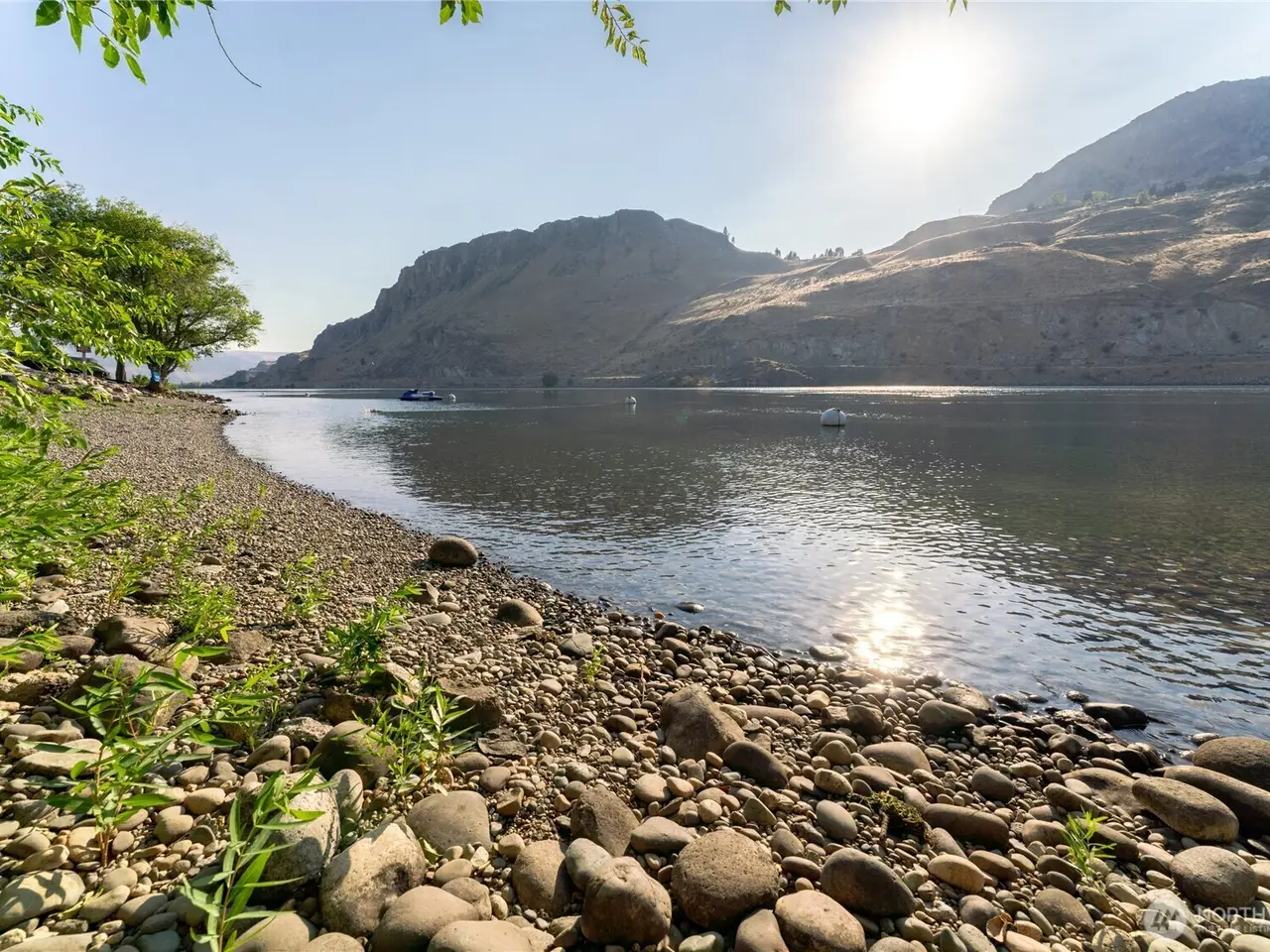 Stunning 6,884sf, 5bd/6.75bth low bank waterfront home w/ permitted buoy overlooking the Columbia River w/ unparalleled views, high-end luxury finishes & expansive outdoor living areas. The spacious home features high ceilings, hardwood floors, granite countertops, 2 primary bedroom suites w/ fireplaces, walk-in closets, baths w/ marble flooring & radiant heated floors. Great room w/ vaulted ceilings, sliding glass doors & gracious entertainer's kitchen w/ Viking appliances. 4 additional bedrooms, large media room w/ bunks & wet bar & attached garage w/ oversized doors that doubles as a yoga/exercise studio complete the home. Outdoor dining & lounge area w/ private spa. Fully furnished, turn-key Vacation Rental Home, 10 minutes from Chelan.