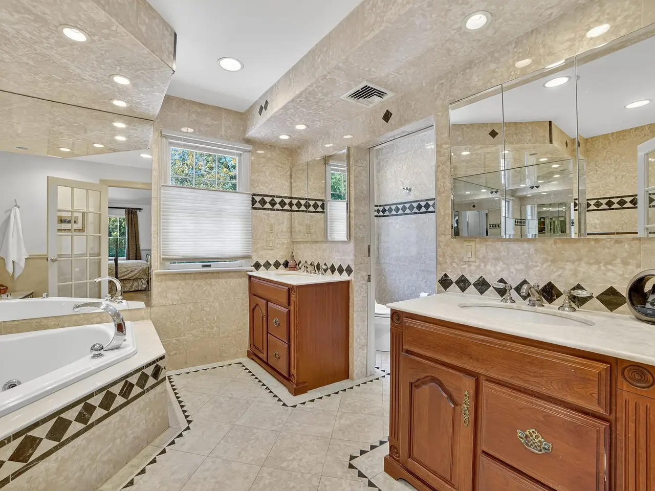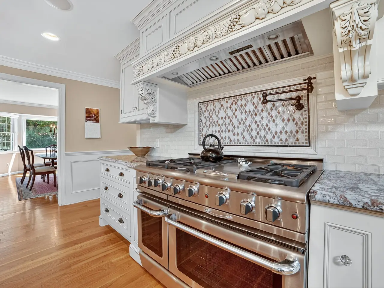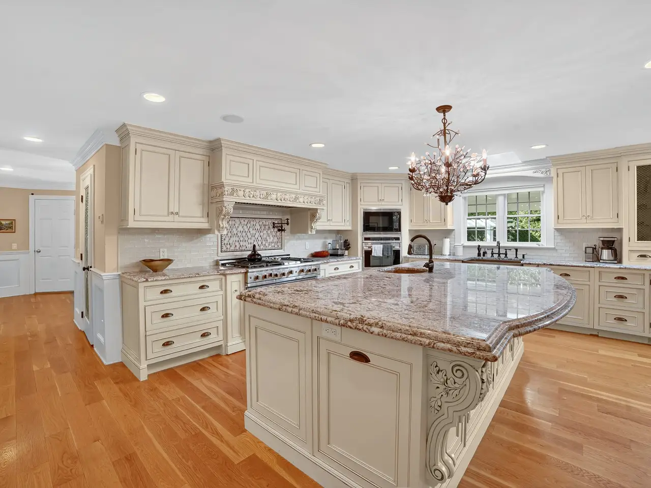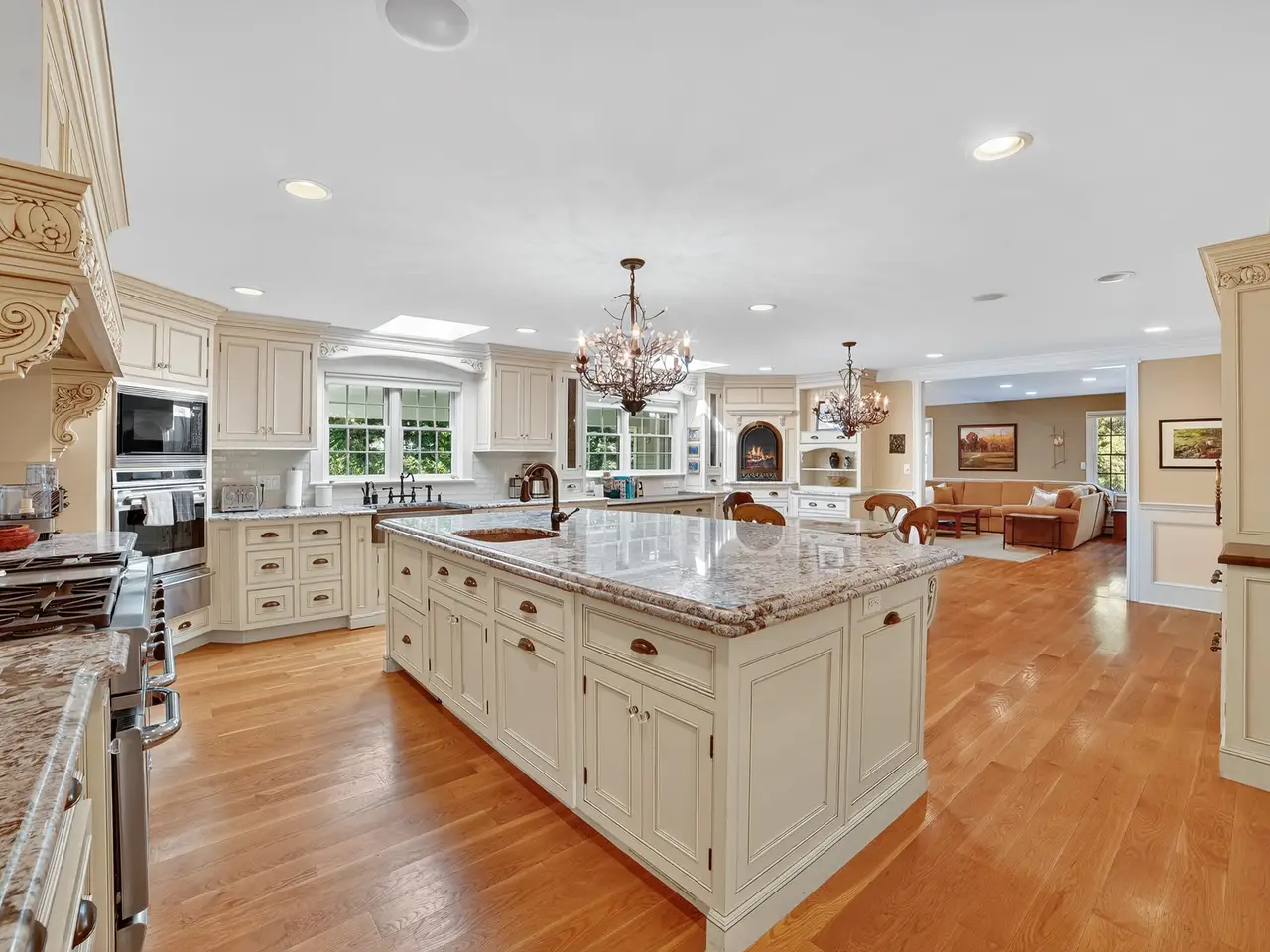 Enter through stately stone pillars and wrought iron gates to this exquisite Center Hall Colonial, perfectly set on nearly one acre of stunning, level, and fully fenced property. Every inch of this residence has been thoughtfully designed to offer an extraordinary combination of elegance, comfort, and functionality. The magnificent gourmet kitchen is a chefs dream, featuring an 11-foot center island, Wolf range, dual dishwashers, wine refrigerator, warming drawer, and double sinksan entertainers paradise with every amenity imaginable. The kitchen flows seamlessly into an oversized family room, a grand yet inviting space anchored by a beautiful fireplace and framed by serene wooded viewsperfect for relaxing or gathering with family and friends. Upstairs, retreat to the luxurious primary suite with a spa-inspired bath and spacious walk-in closets. The home also features a generous bonus room above the garage, accessible from both the main level and the primary suiteideal for a private home office, gym, or creative studio. Additional bedrooms on the second level provide comfort and style for family and guests alike. Step outside to your own private oasis, where the beautifully landscaped grounds include a charming gardening area, an in-ground pool, and a built-in grill and dining areaperfect for alfresco entertaining and summer gatherings. Expansive lawns provide plenty of space for play or relaxation, while an additional driveway offers ample parking for hosting large events or special occasions. The expansive lower level offers exceptional space for recreation, fitness, or media enjoyment, along with abundant storage. Additional highlights include a new five-zone Buderus furnace and an attached two-car garage. From the grand entry to the manicured grounds, this remarkable property embodies timeless sophistication, resort-style amenities, and the perfect balance of privacy and luxury living.