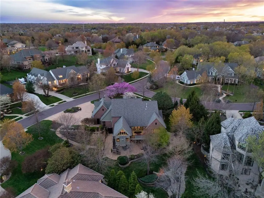 $100,000 PRICE REDUCTION! Estimated reproduction value near $4,000,000. Welcome to this ultra high quality estate designed by Scott Bickford and masterfully constructed by Rick Forner in The Estates of GlenEagles. Greeting you is an oversized circle drive with plush landscaping and sprawling all-brick front sitting porch. The home is constructed with an all brick and stone exterior, iron windows, and copper guttering with multiple outdoor areas including an indoor/outdoor sun room and grand elevated veranda with full outdoor kitchen. The walkout lower level leads to a newly refinished all-brick sprawling patio and stained under deck ceiling with expansive space for entertaining. Sound system throughout. All oversized rooms with 14 foot ceilings in main level and vaulted ceilings in the kitchen, primary bedroom, and sun room. Primary suite features expansive closet and island for even more storage. Kitchen with beautifully constructed floor-to-ceiling custom cabinetry, butlers pantry, and new appliances. The upper floor includes three bedroom suites, each with walk-in closets and private baths. The completely redone lower level includes an extra bedroom/office, full bath, theater/living area, game area, and full oversized kitchen with all appliances. Plus, heated floors throughout entire lower level! Plethora of storage space and separate double door entrance with side pathway for garden tool/mower storage. Low energy costs with the entire home running on GEOTHERMAL! Welcome to unrivaled quality and craftsmanship - no expense has been spared. This is an extraordinary opportunity to own one of Overland Park's finest estates.