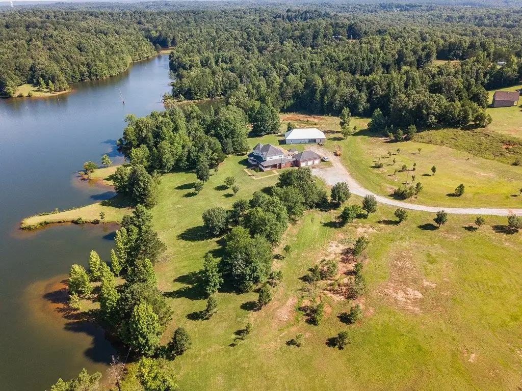 Waterviews everywhere!! NEW ROOF!! This 16 acre property with lakefront from one side to the other has so much to offer, a swimming pool, 3 car garage, additional workshop with heated and cooled living quarters, and a 4000 sq ft 4 BR house. Come experience how this waterfront property feels with the lake breeze as you relax by the pool and how much fun you can have with all of the room for your toys. There are so many potential options for this property. It is not restricted by neighborhood covenants. A very rare find with this much waterfront.