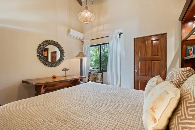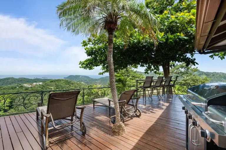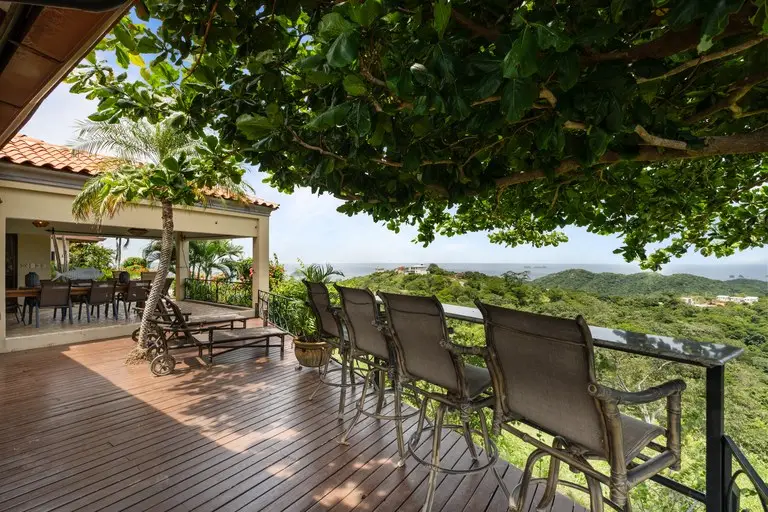 Welcome to Casa Miramar, a 4-bedroom, 4.5-bath Mediterranean-style villa located in the hills of Pacific Heights. The home's interior showcases soaring vaulted ceilings with exposed wood beams, expansive windows, and elegant finishes that highlight the stunning ocean views. The gourmet kitchen is fully equipped with high-end appliances, a breakfast bar for three, and opens to a formal dining area that seats six. The adjacent living room is spacious and inviting—ideal for entertaining or quiet evenings at home. Each of the four bedrooms features a king-size bed, en-suite bathroom, air conditioning, and generous closet space. The primary suite offers direct access to the pool terrace, a cozy seating area, and a private jacuzzi surrounded by lush greenery. Step outside to your private oasis. The infinity-edge pool overlooks the Pacific Ocean and is complemented by a fully equipped outdoor kitchen, bar, BBQ grill, and ample dining and lounging spaces—perfect for enjoying Costa Rica’s year-round tropical climate. Casa Miramar is just five minutes from some of Guanacaste’s most beautiful and secluded beaches, including Playa La Penca, Playa Prieta, and Playa Pan de Azúcar. Playa Potrero, known for its calm waters and family-friendly vibe, is also nearby. The town of Potrero offers a variety of restaurants, grocery stores, cafes, and essential services like medical clinics and pharmacies. Whether you’re looking for a serene retreat or a luxurious base for beach adventures, Casa Miramar blends elegance, comfort, and location in one unforgettable property.